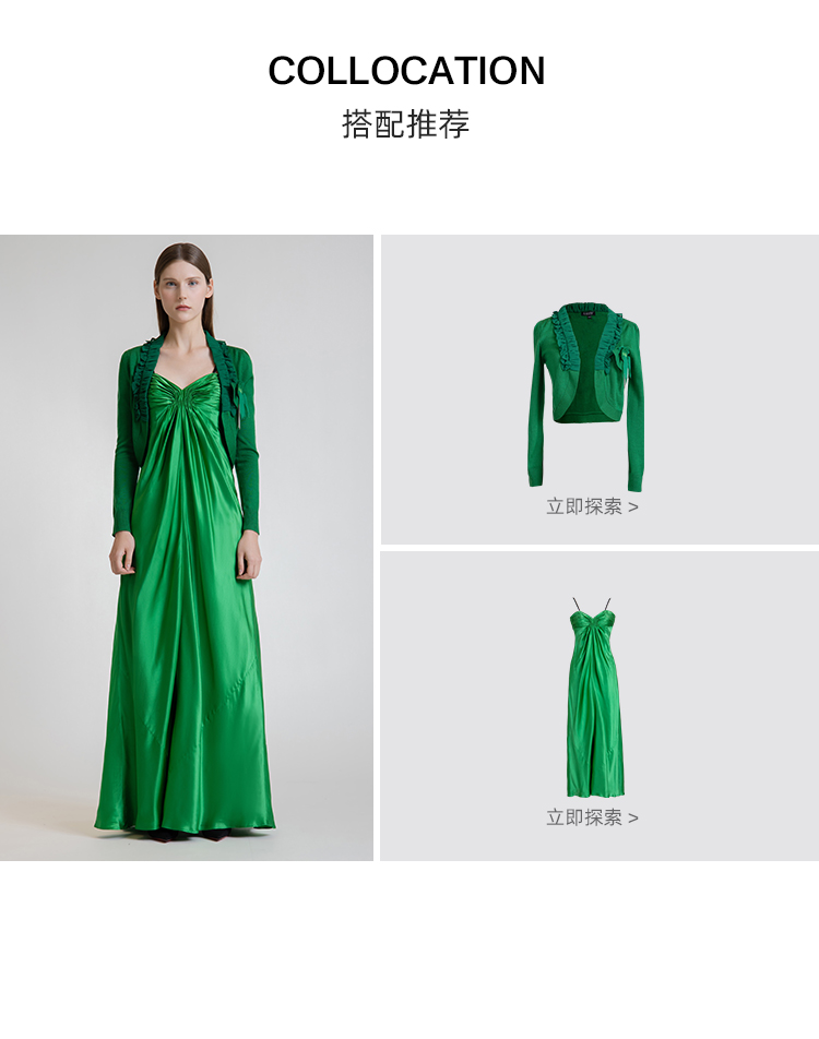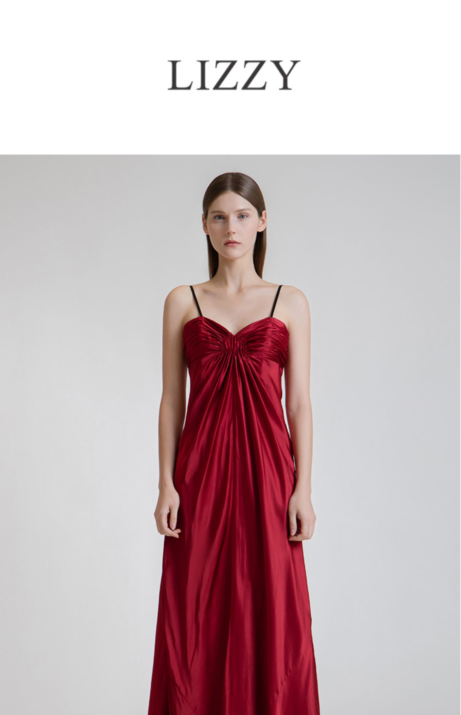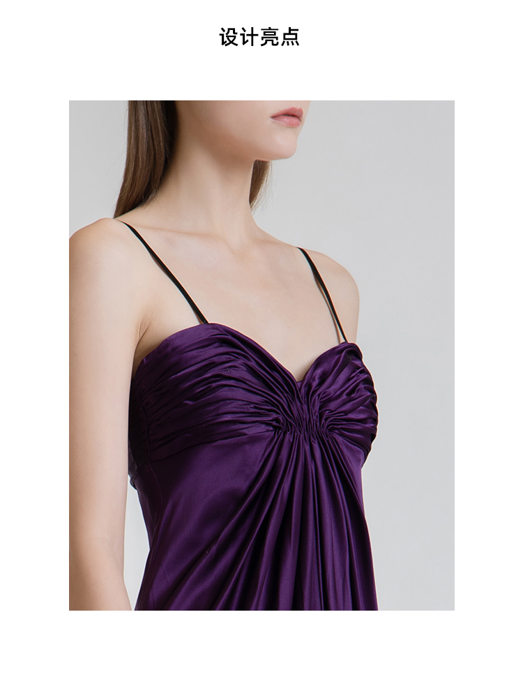 LIZZY 简约名媛风桑蚕丝吊带拖地宴会礼服连衣裙3662