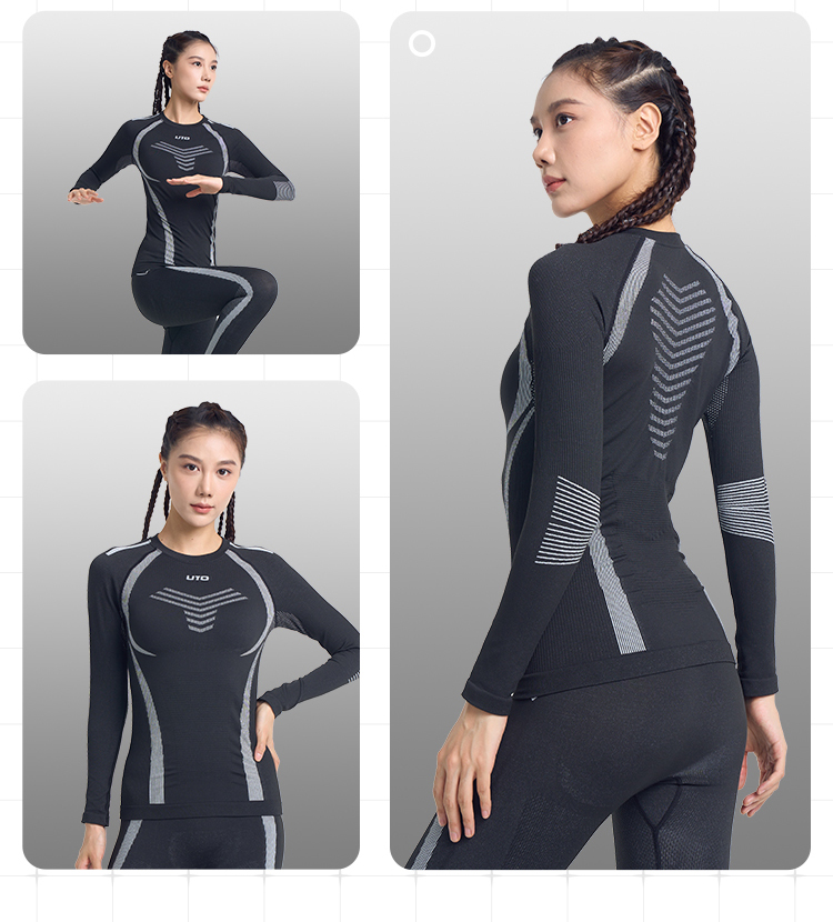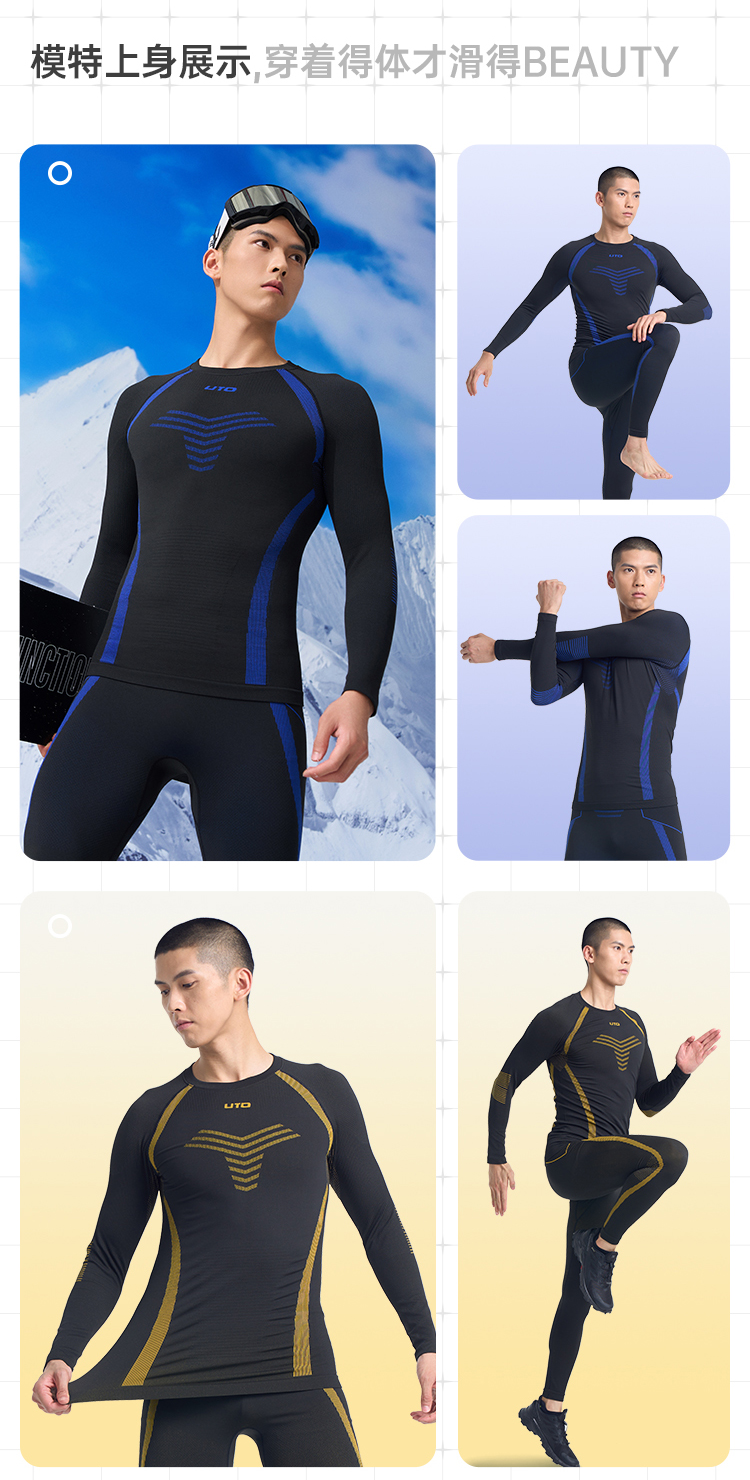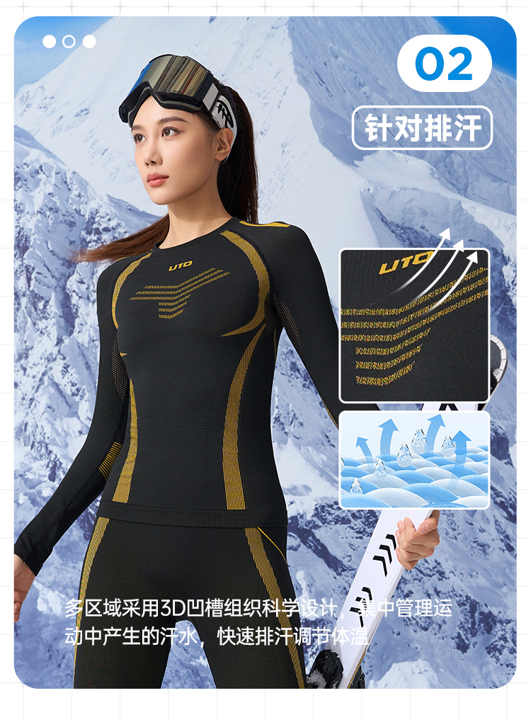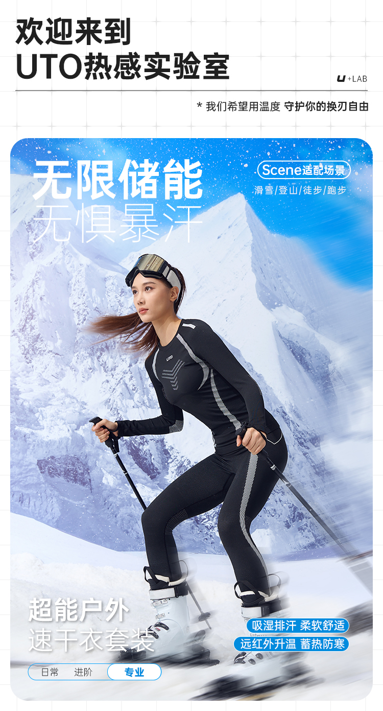 UTO/悠途碳芯款户外运动保暖速干衣套装男女弹力紧身长袖秋冬季