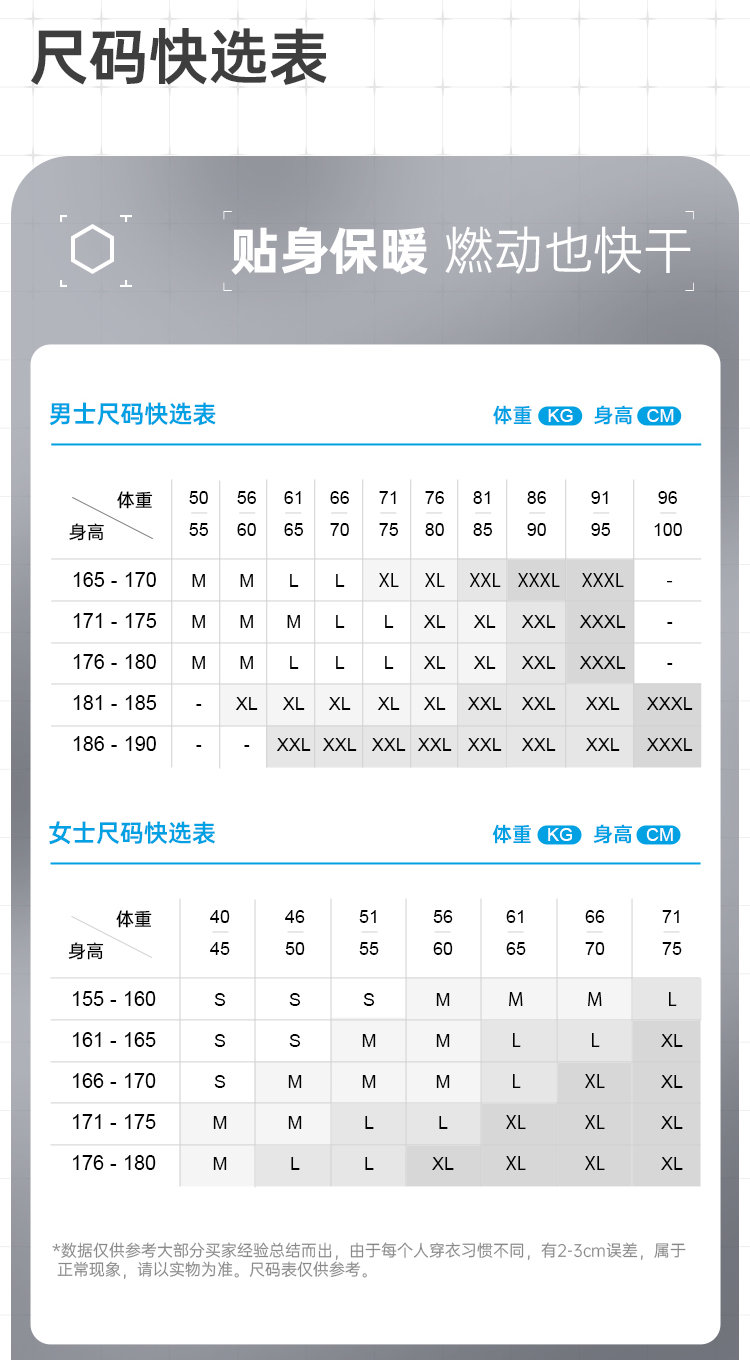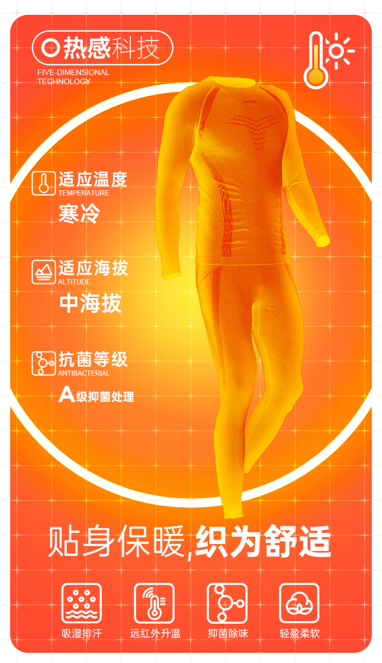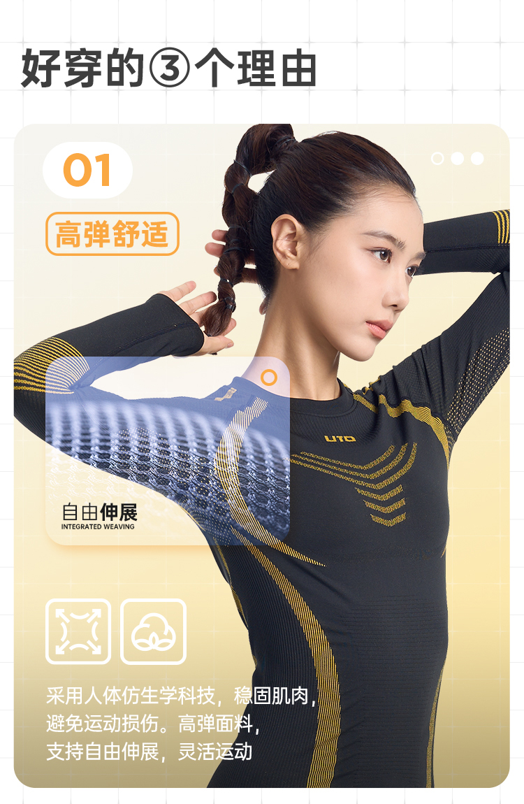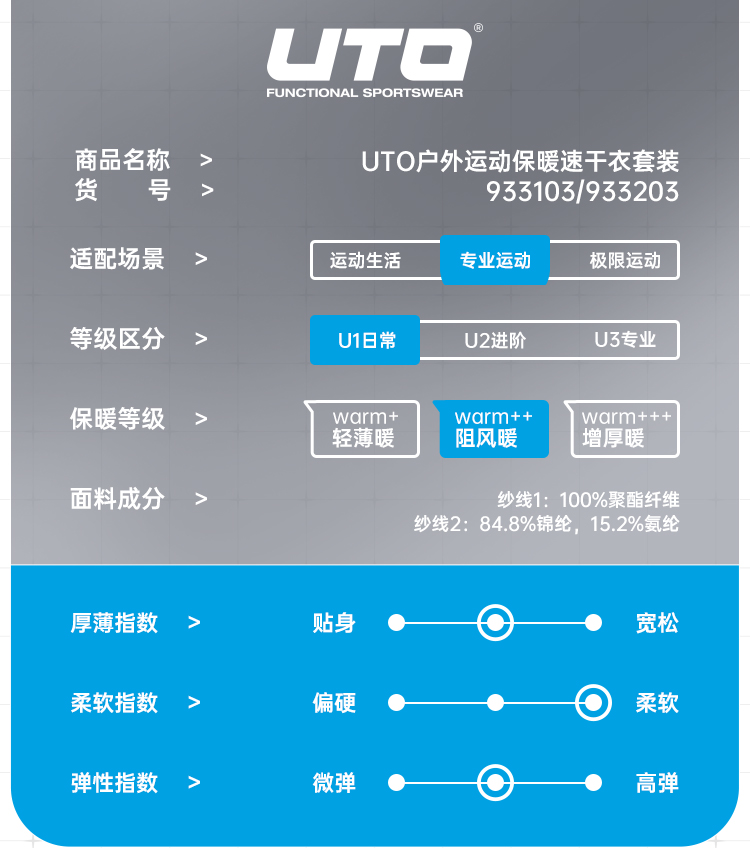 UTO/悠途碳芯款户外运动保暖速干衣套装男女弹力紧身长袖秋冬季