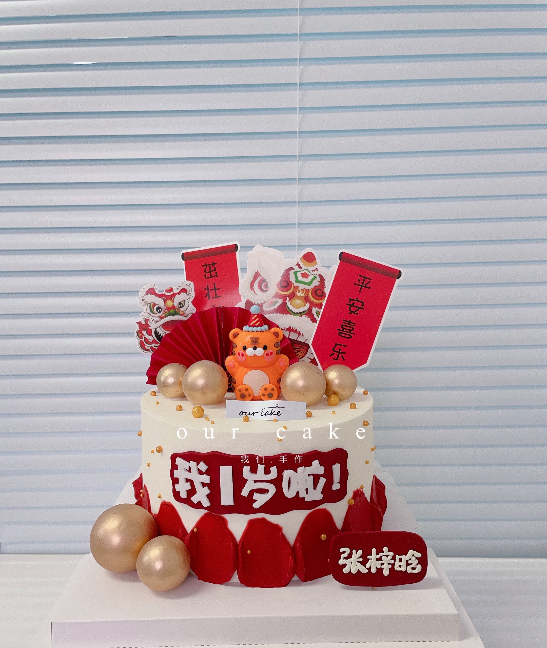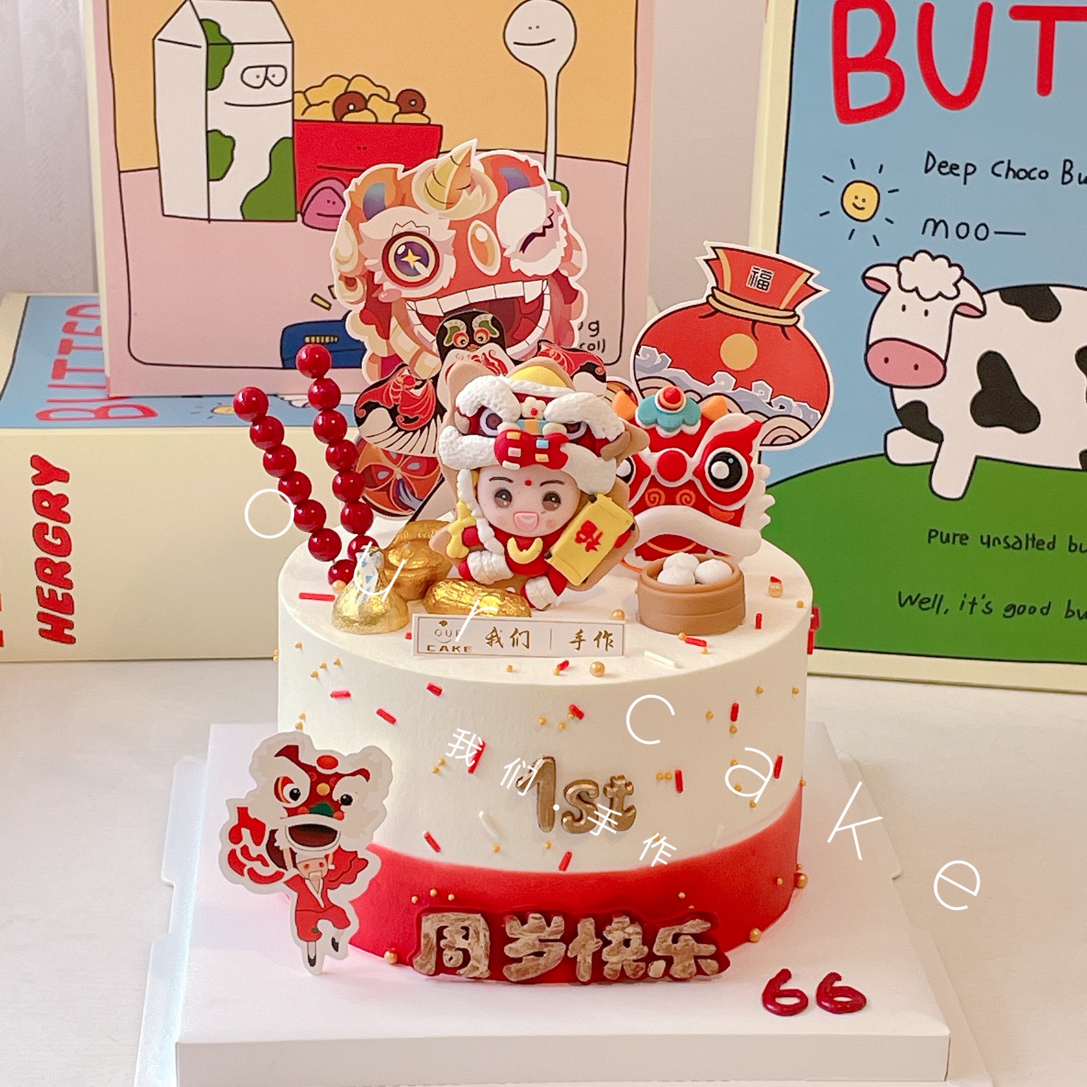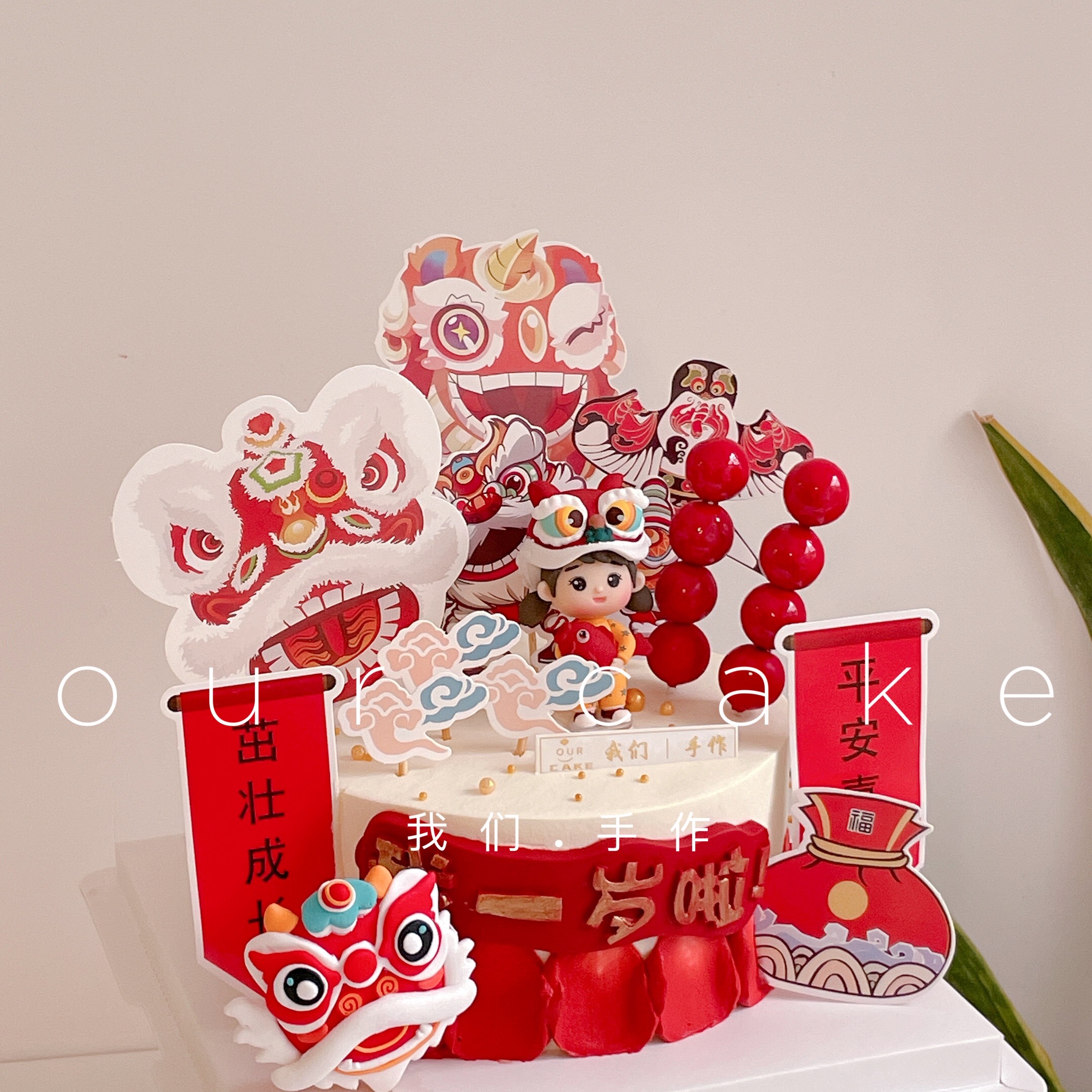 喜庆中国风周岁蛋糕(红色素重!)-低糖处理无添加