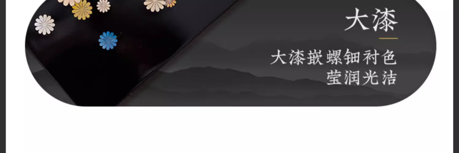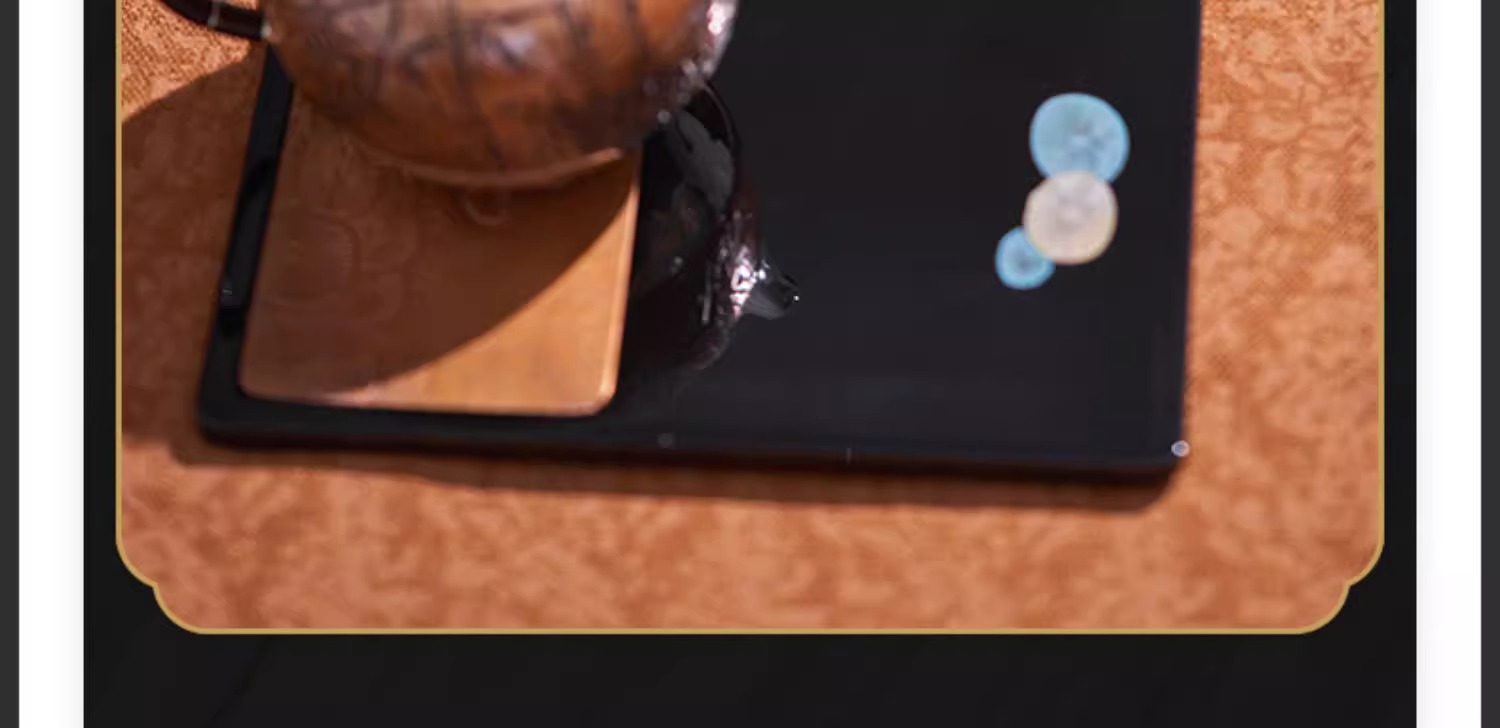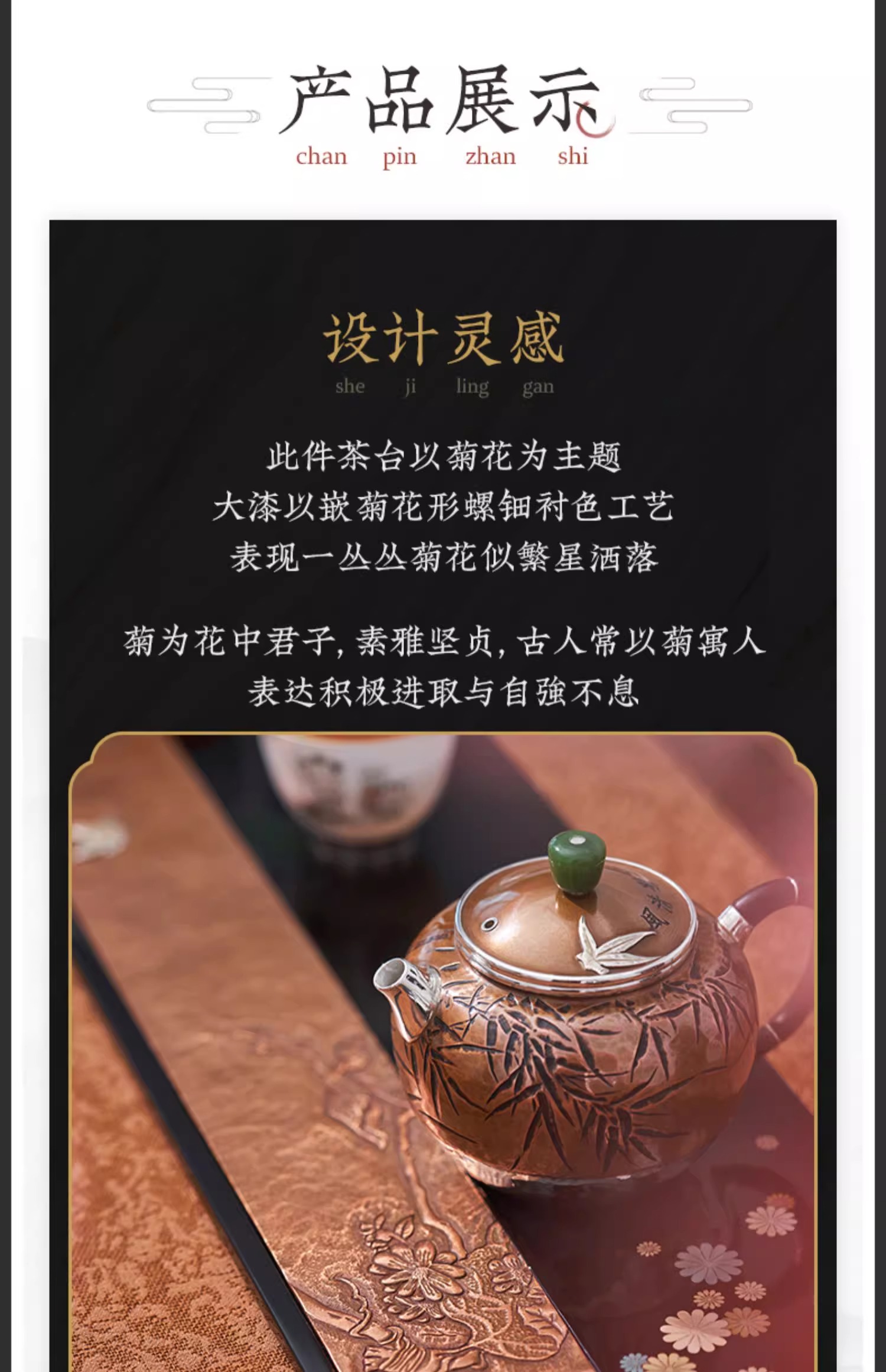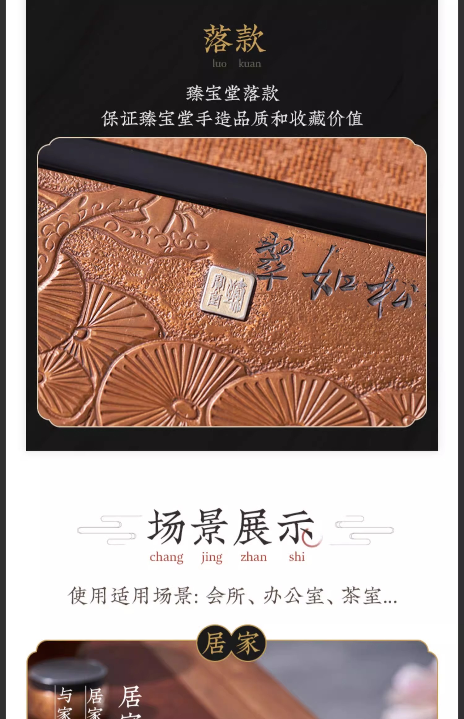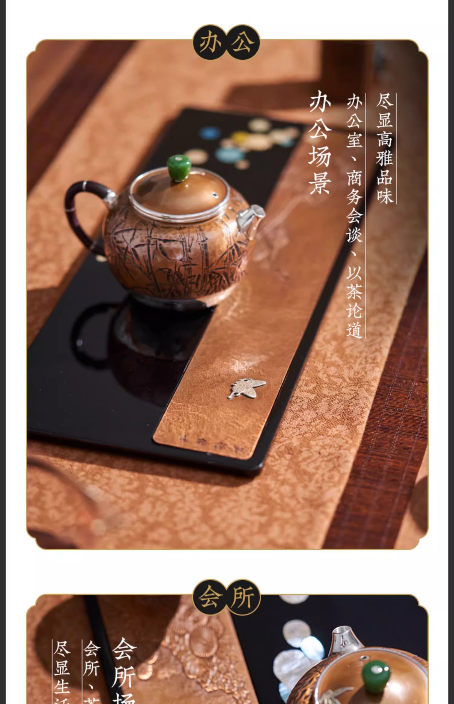 臻宝堂大漆茶盘纯手工镶铜雕刻干泡茶台中式壶承原创小型漆器茶具傲世345*140*10mm