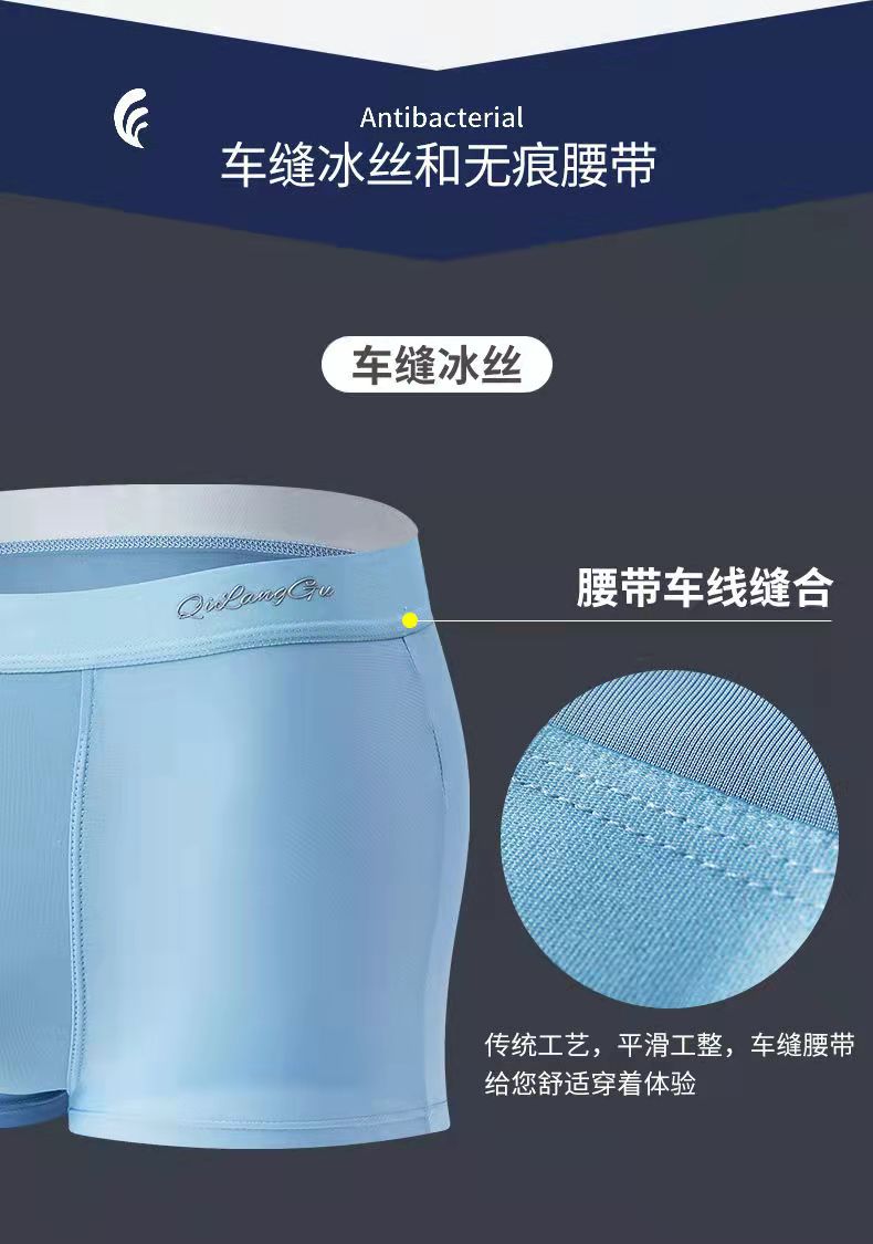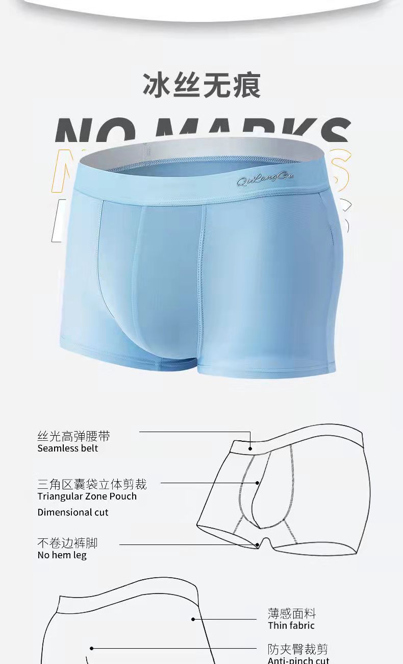 【冰感一“夏” 上身秒降5℃】新品冰丝男士内裤 男生平角裤头纯色透气抑Jun 呵护男性健康 无痕内裤