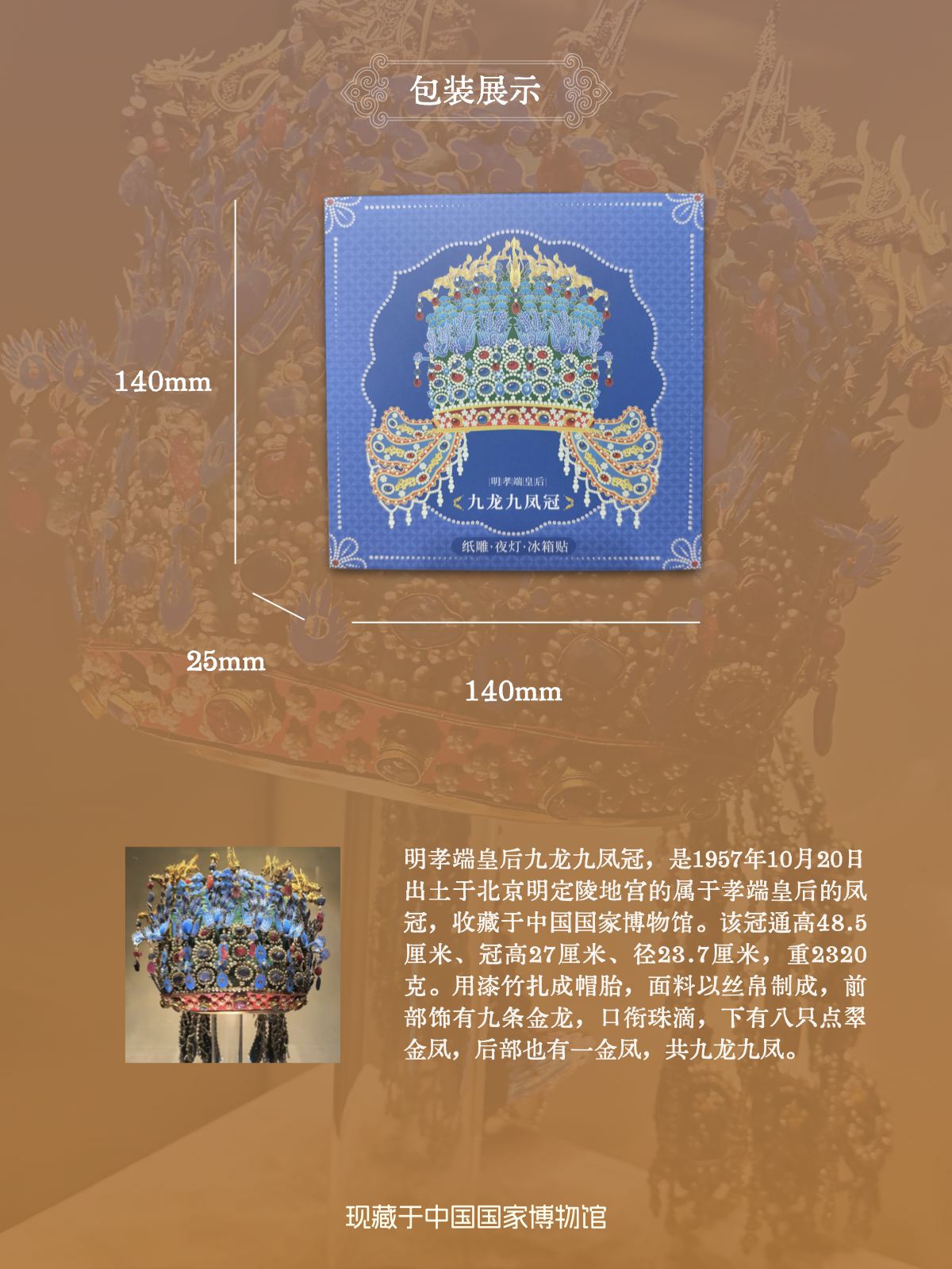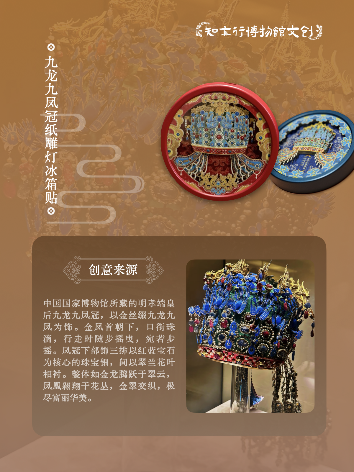 国博九龙九凤冠夜灯冰箱贴纸雕工艺国风文创礼品教师节礼物
