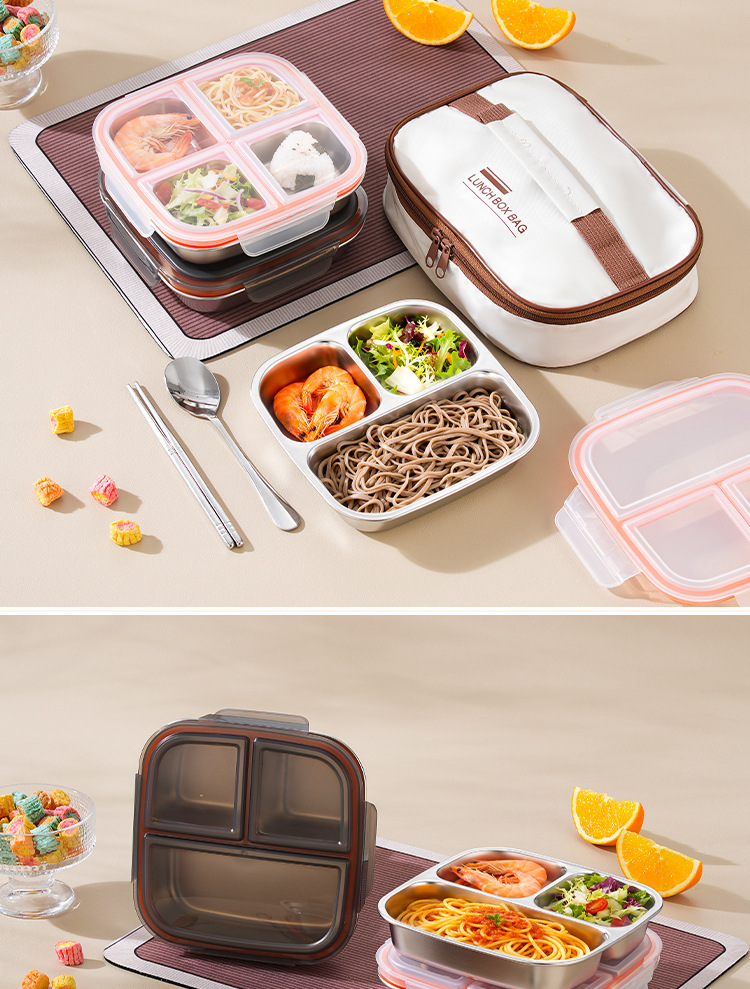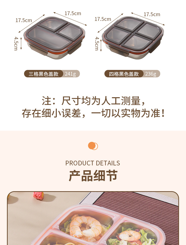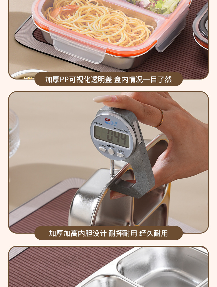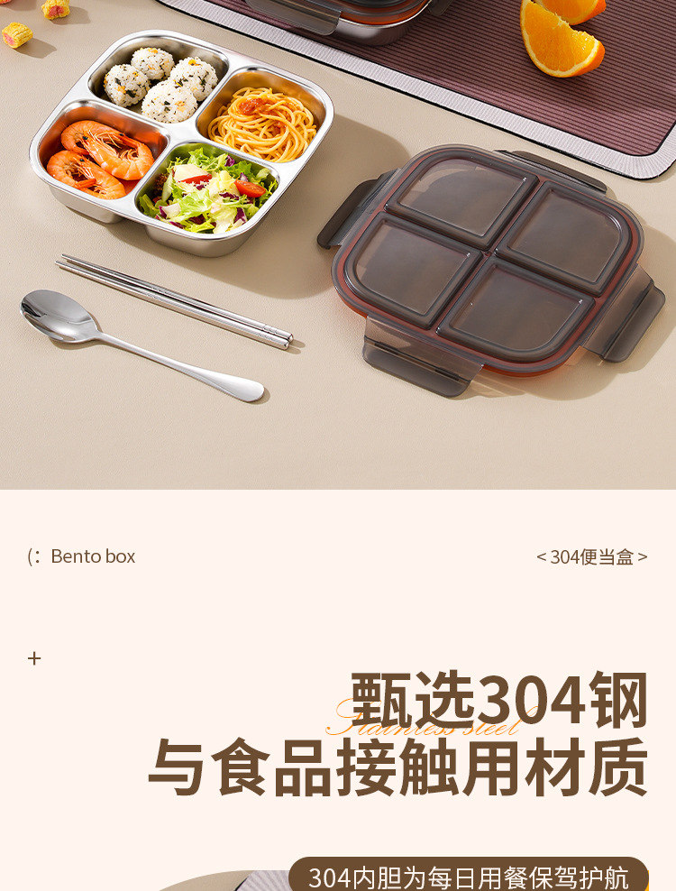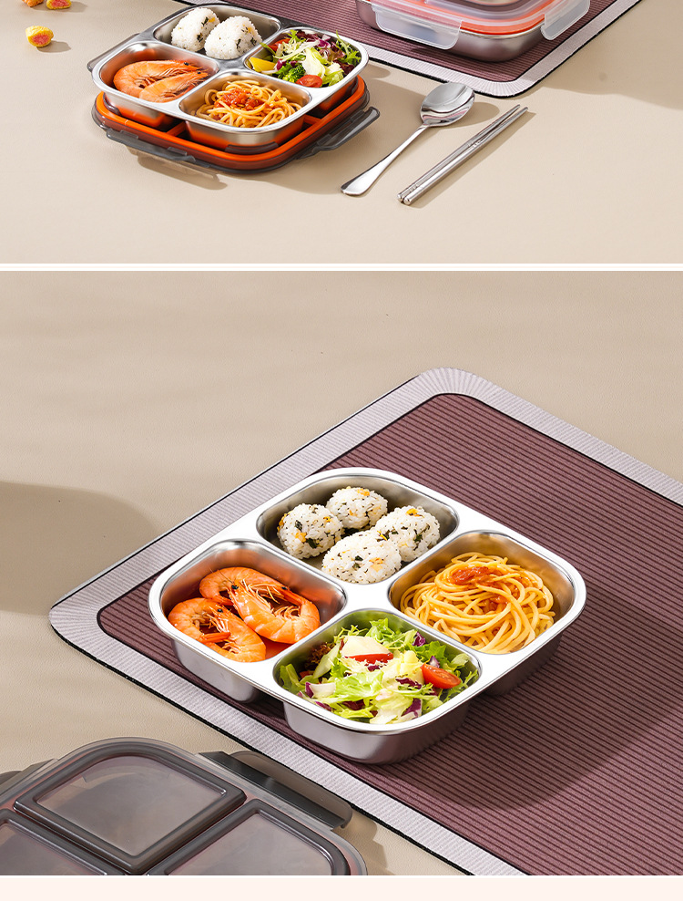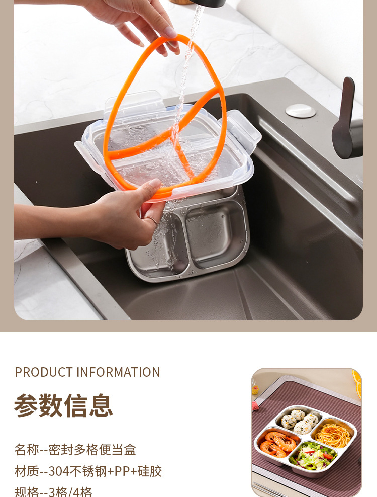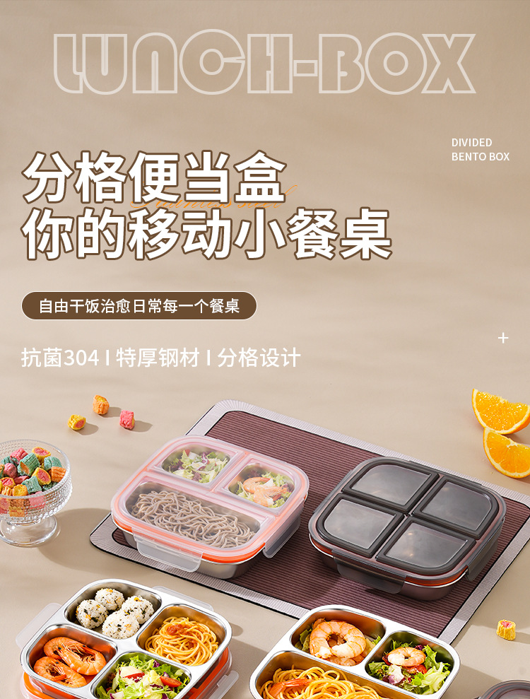 【特厚抗菌!三餐四季便当盒】304不锈钢密封便当盒 防串味三格四格保鲜盒 定量分装减脂餐盒