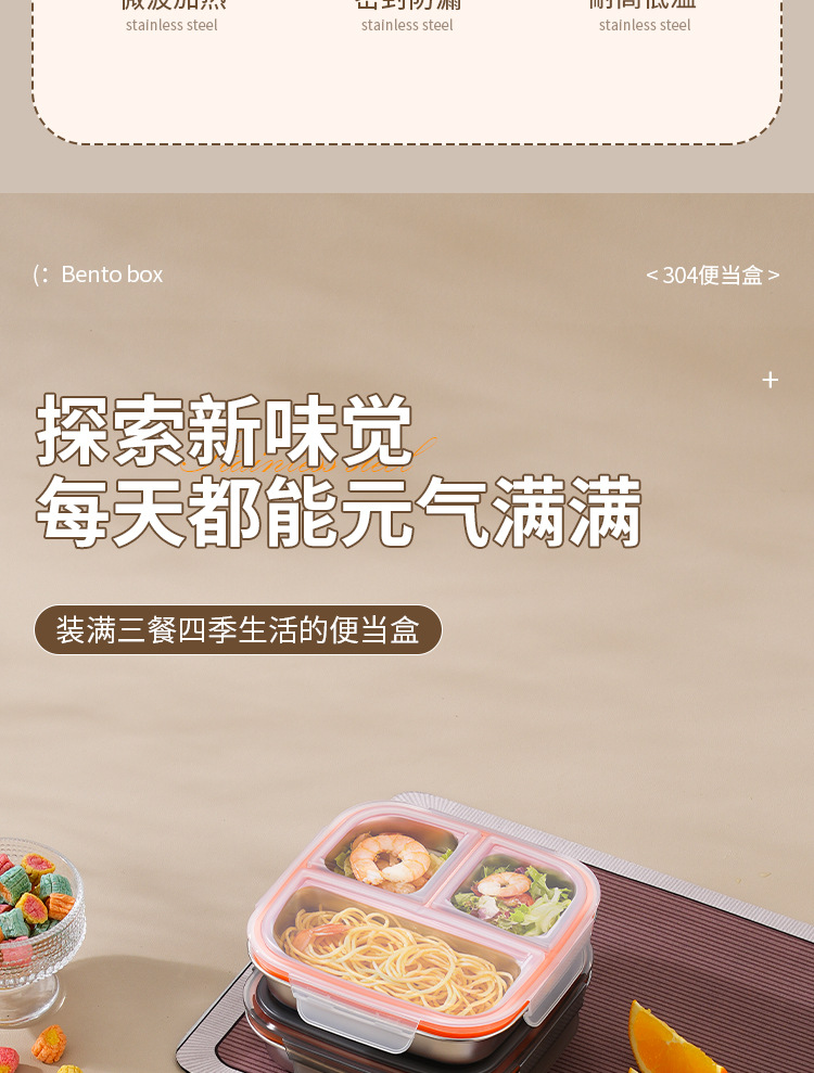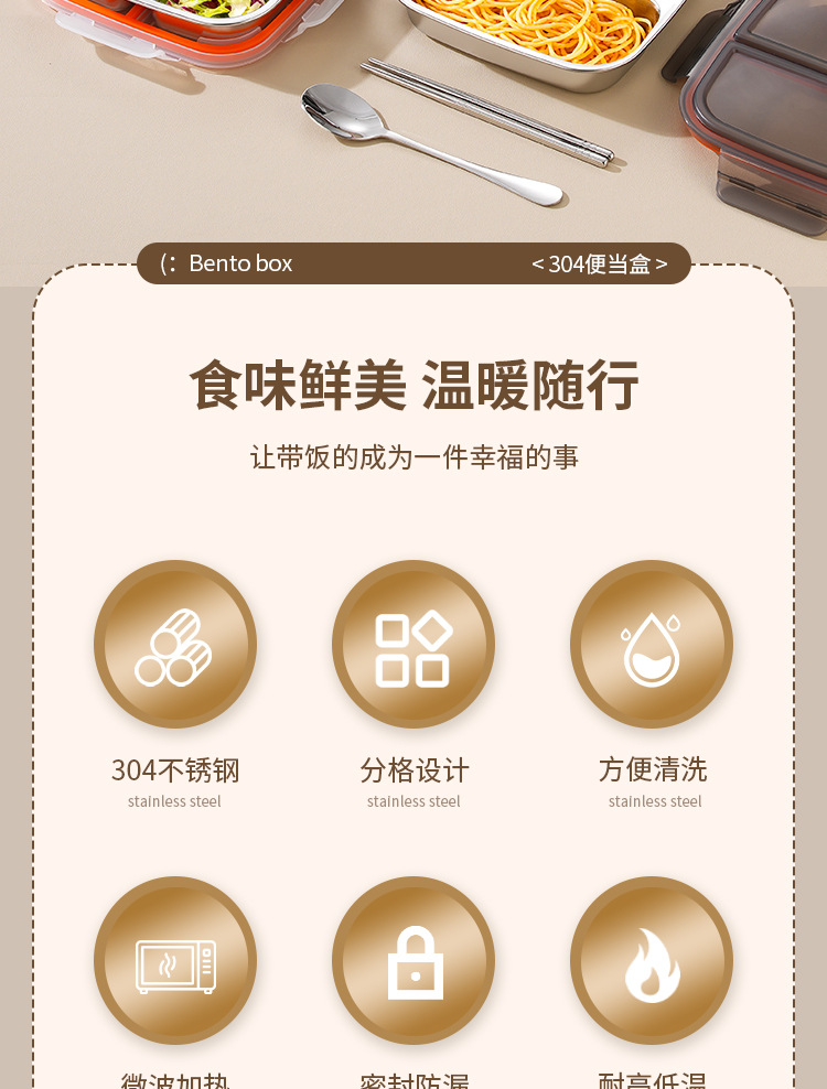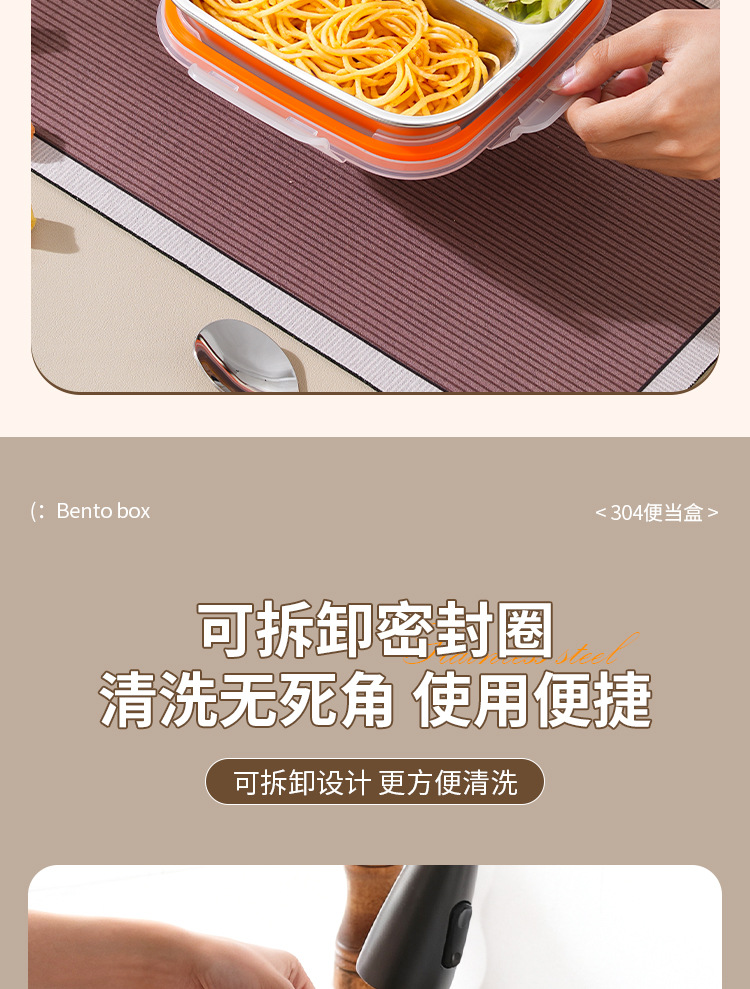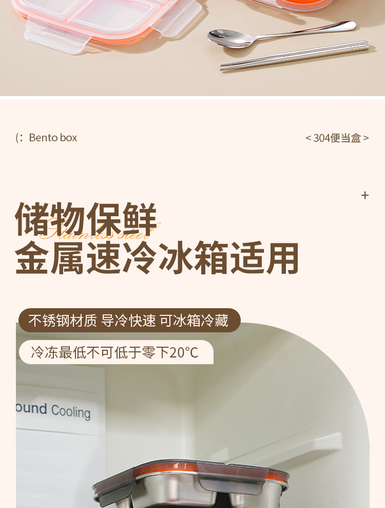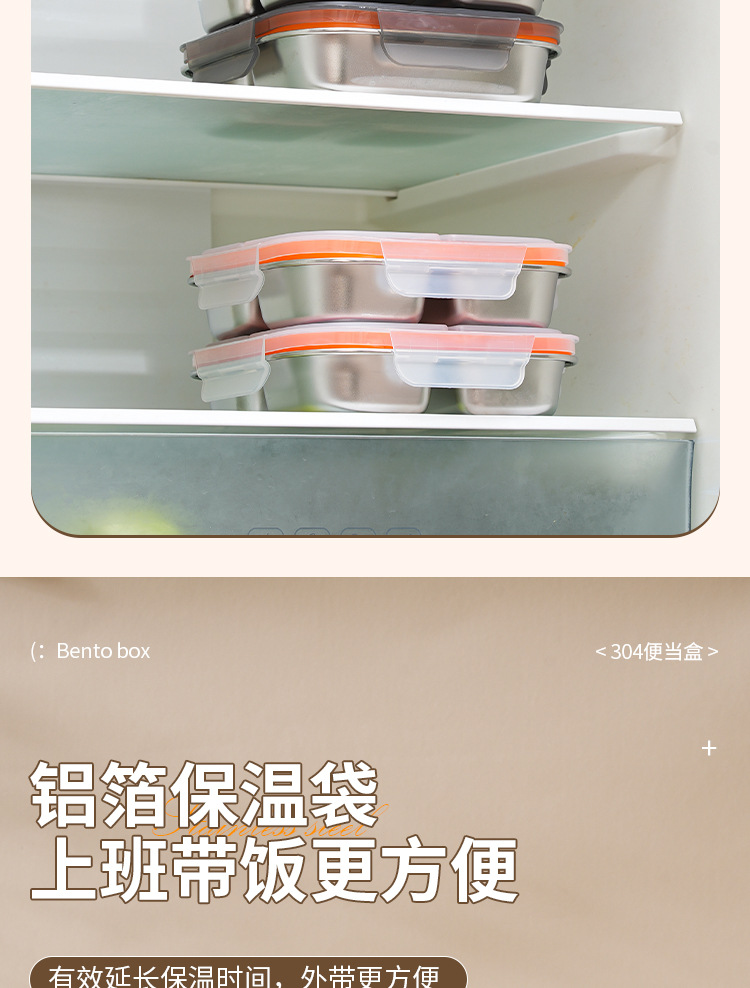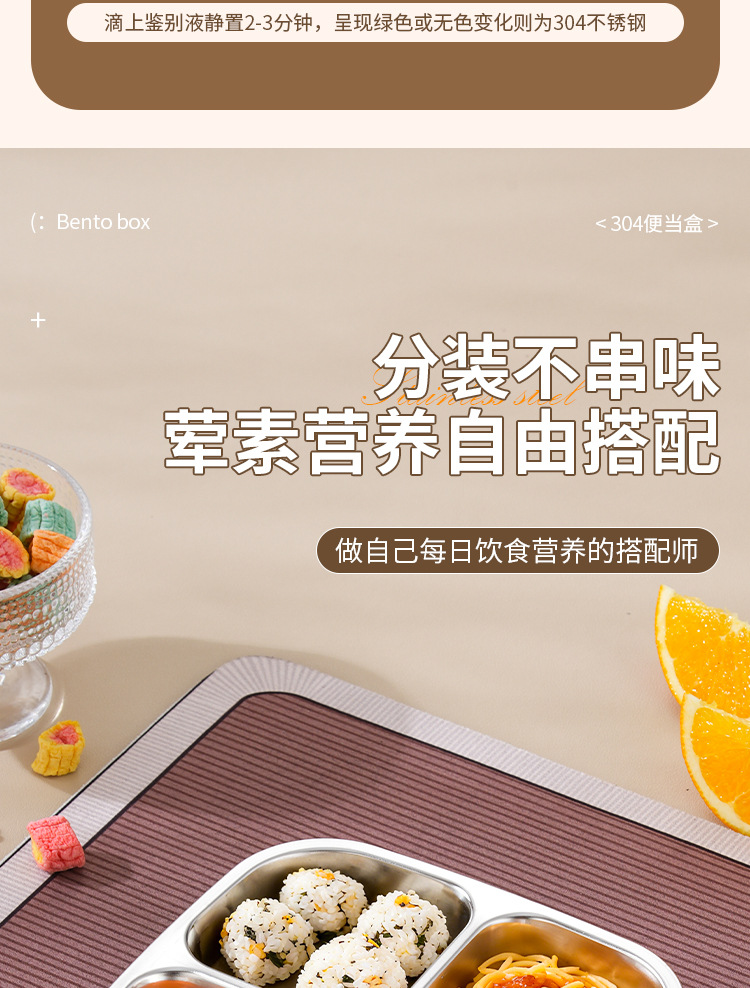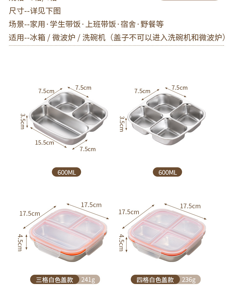 【特厚抗菌!三餐四季便当盒】304不锈钢密封便当盒 防串味三格四格保鲜盒 定量分装减脂餐盒