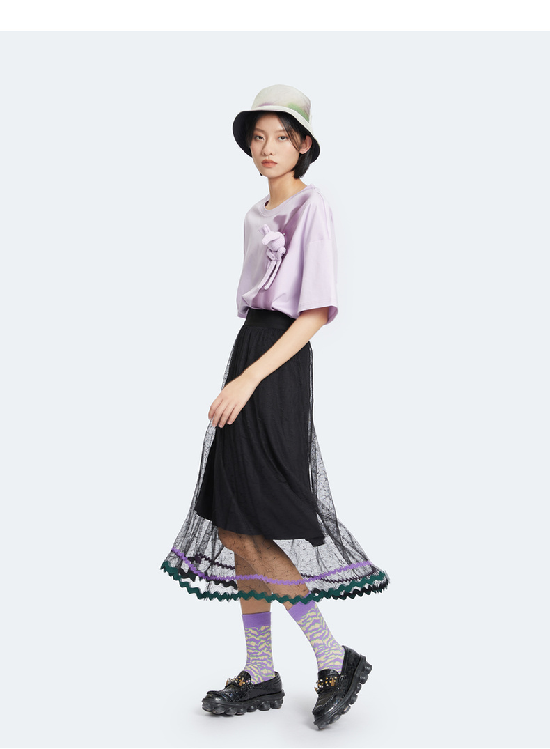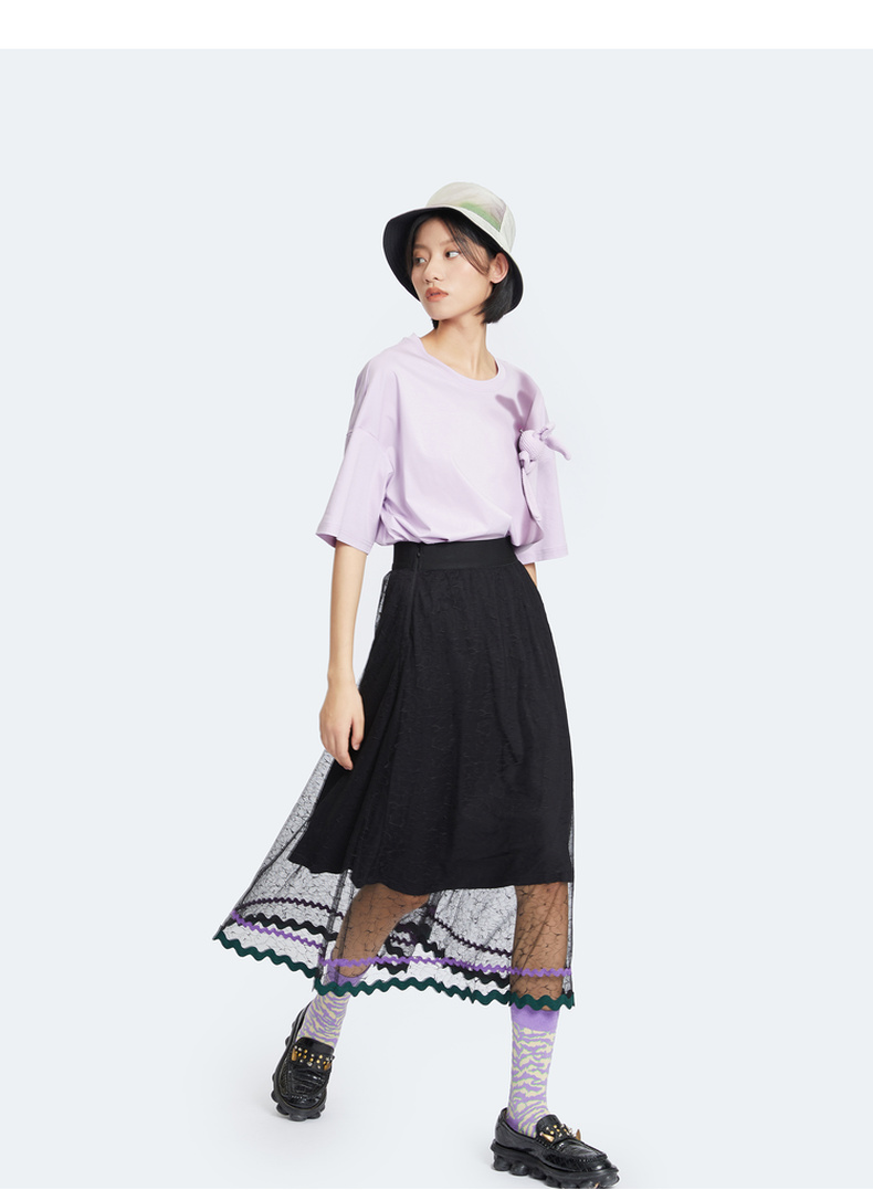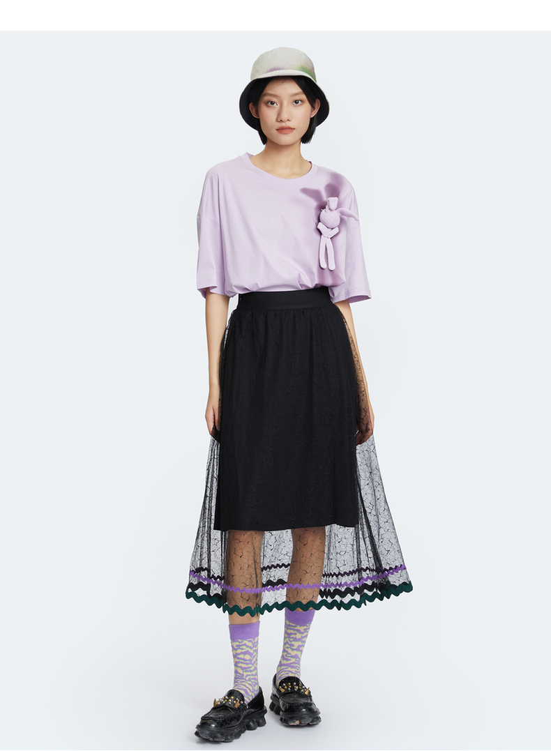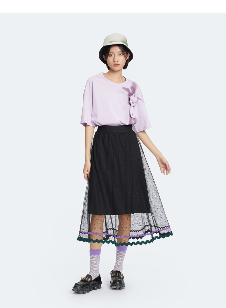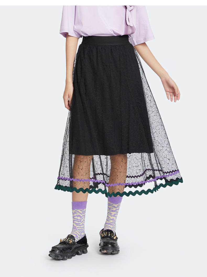 MIIDII谜底2022春新款复古浪漫A型网纱裙蕾丝长半身裙221MB0092