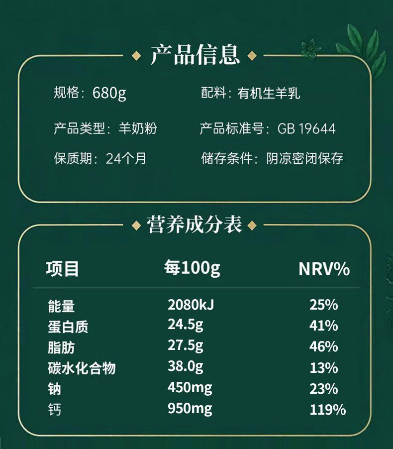 牧北鲜 中老年高钙有机奶粉 200g袋装(25g*8条)中老年奶粉有机食品