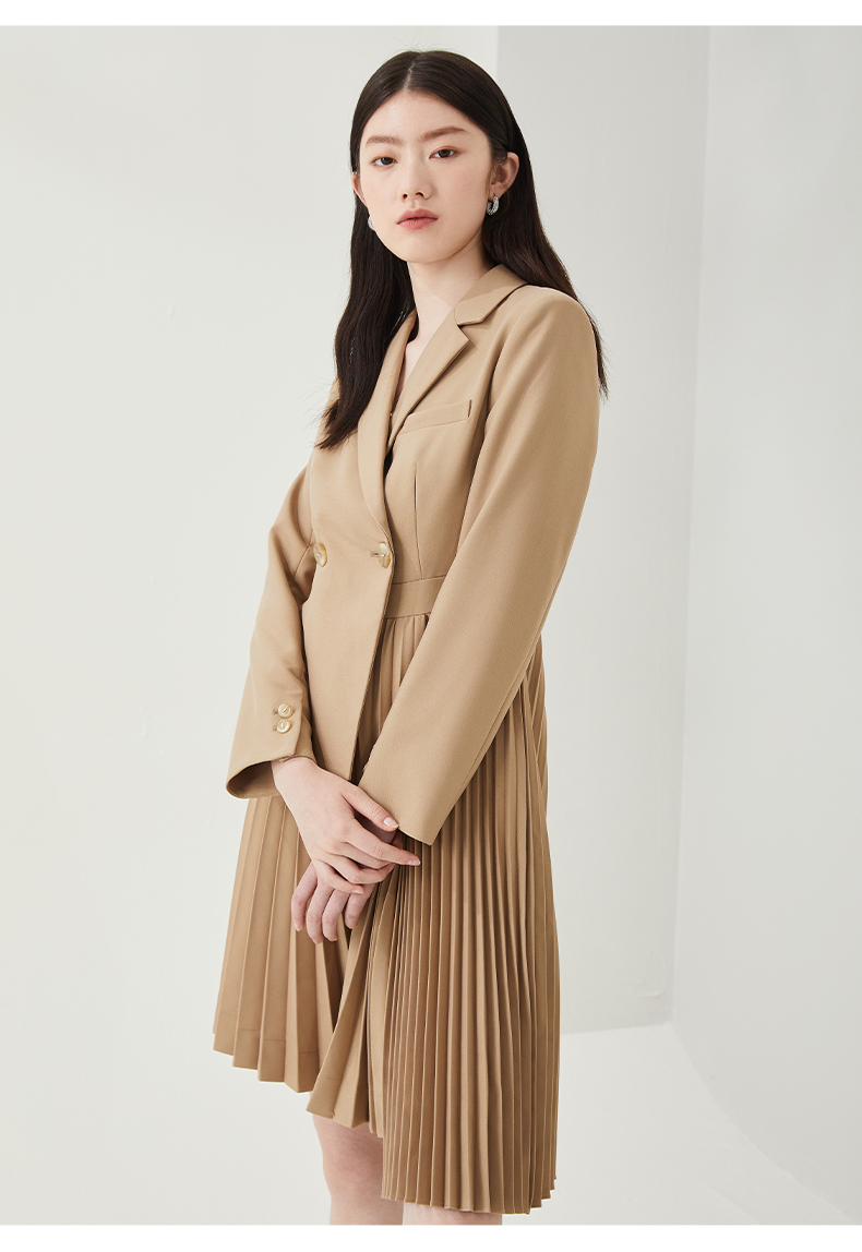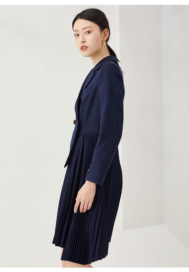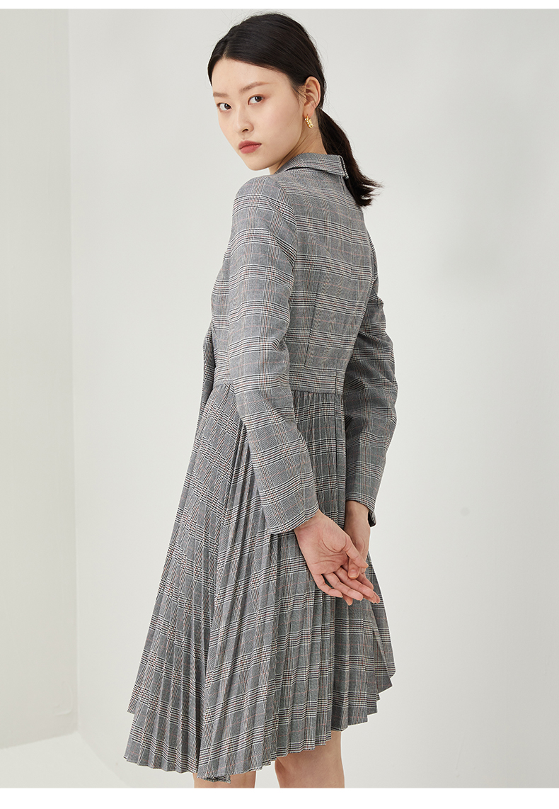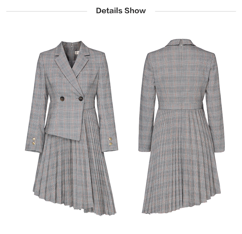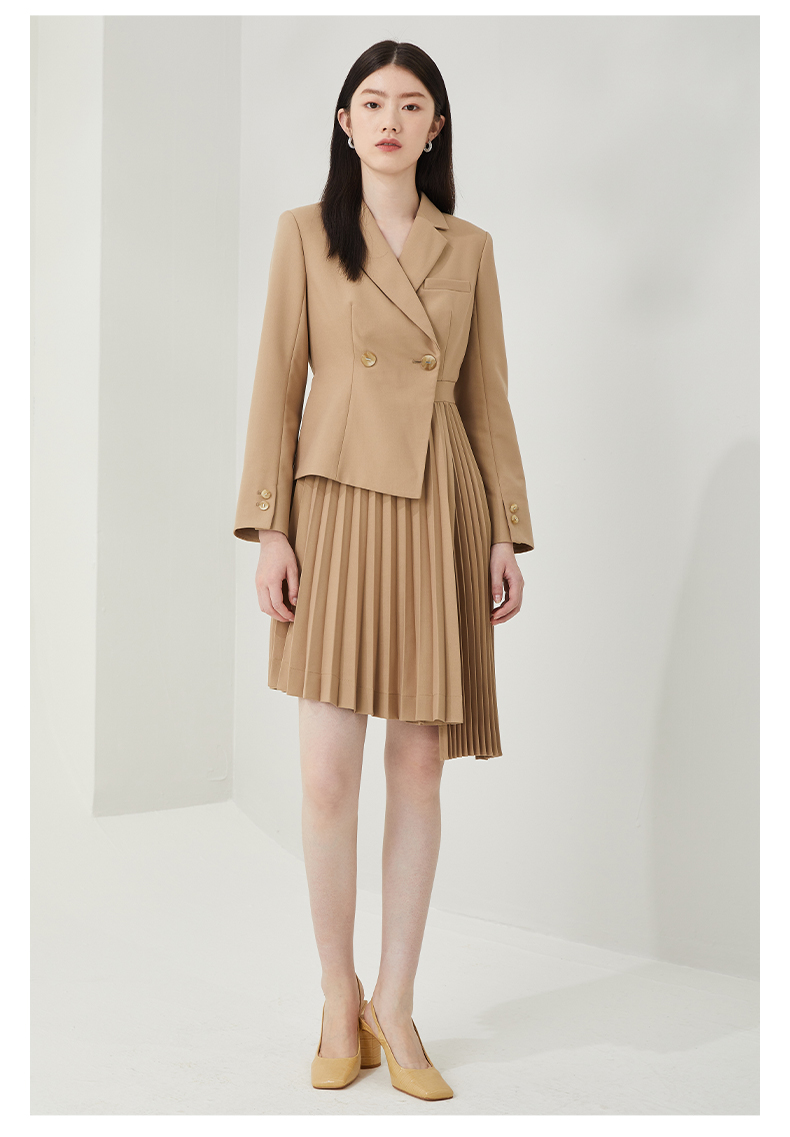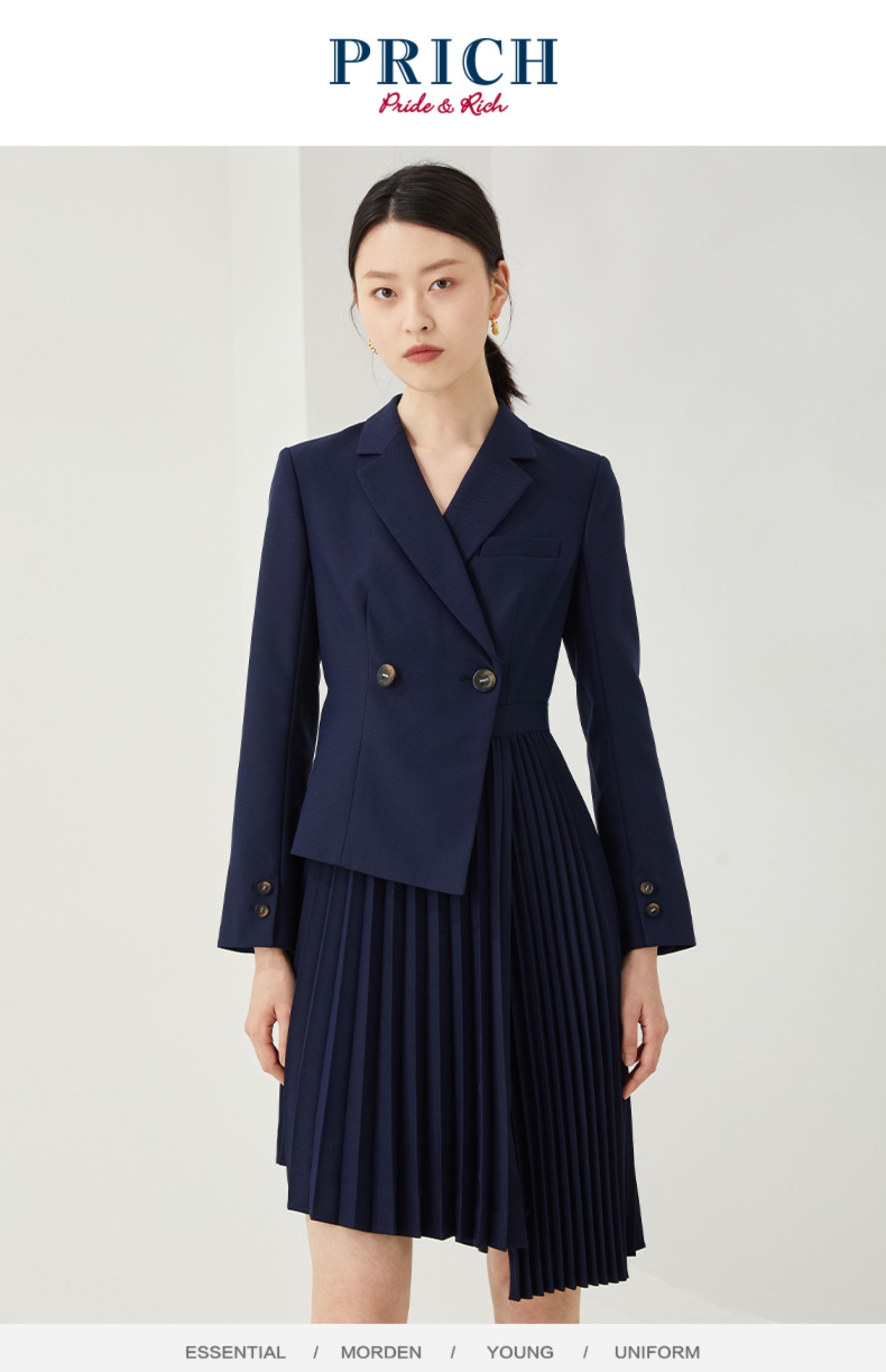 PIRCH2021年秋季新款气质V领不规则设计百褶连衣裙PROWB7814N