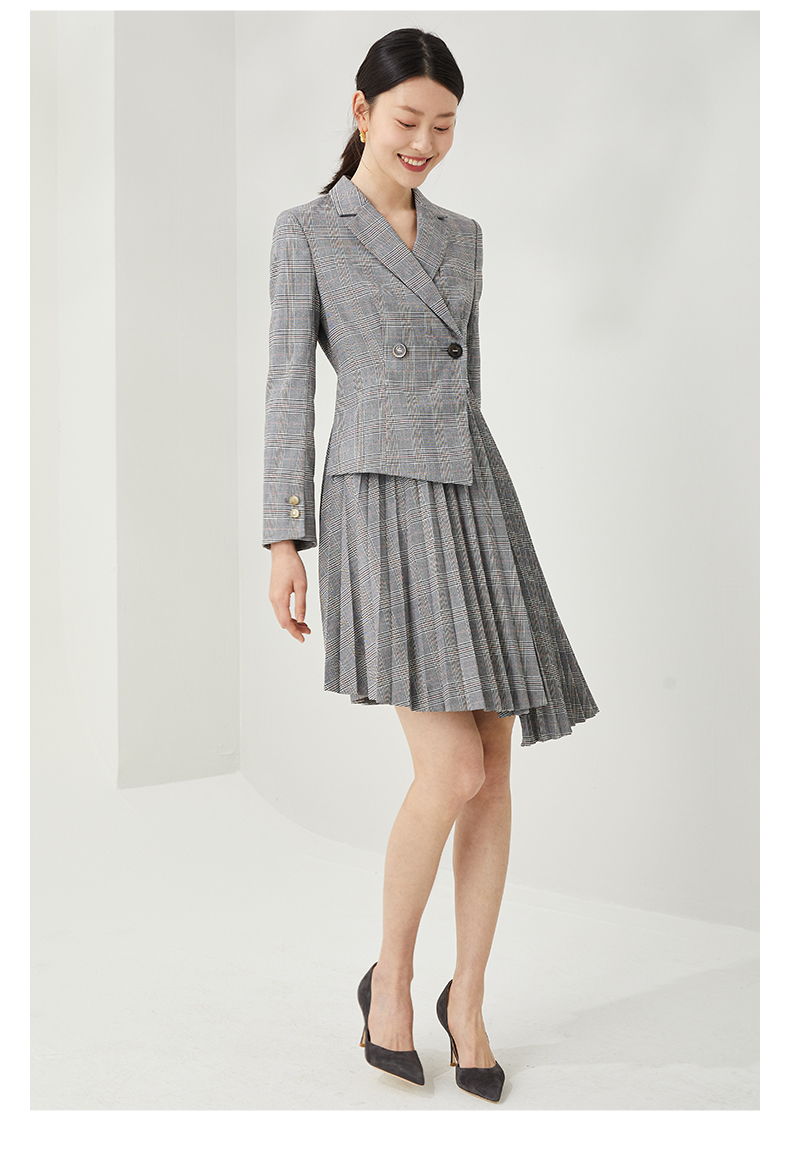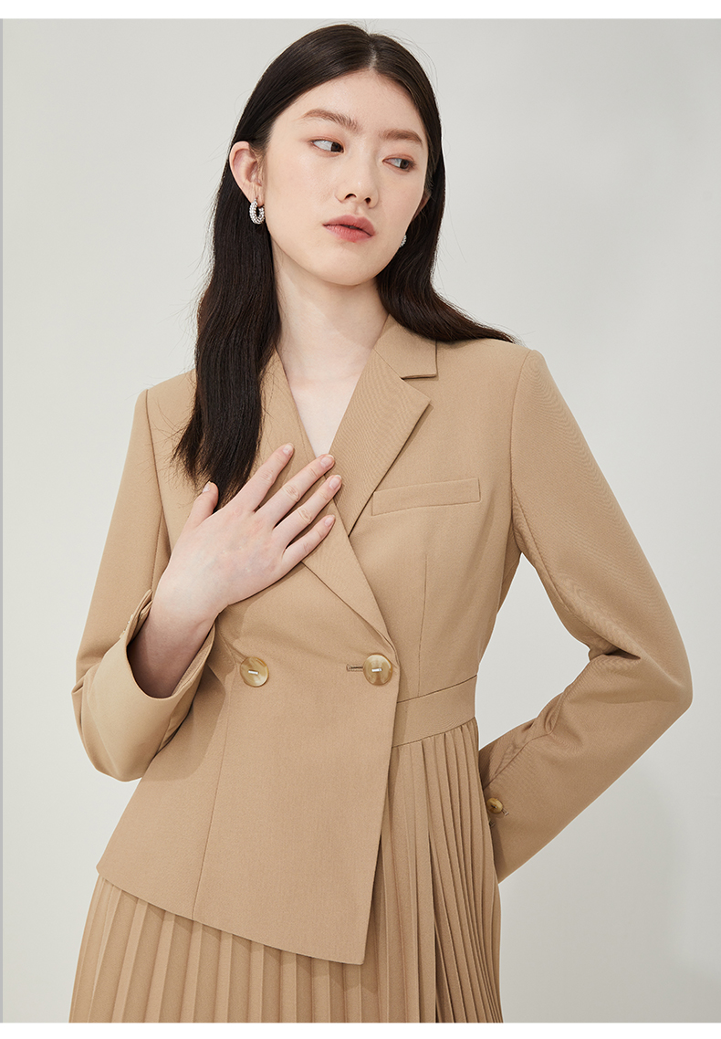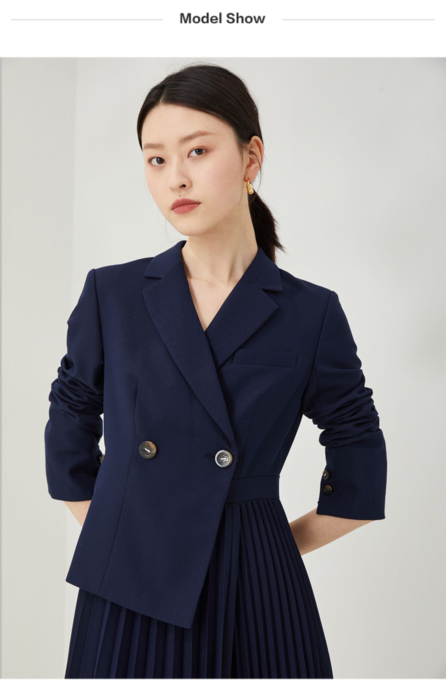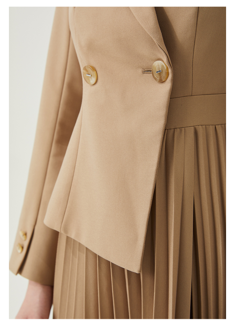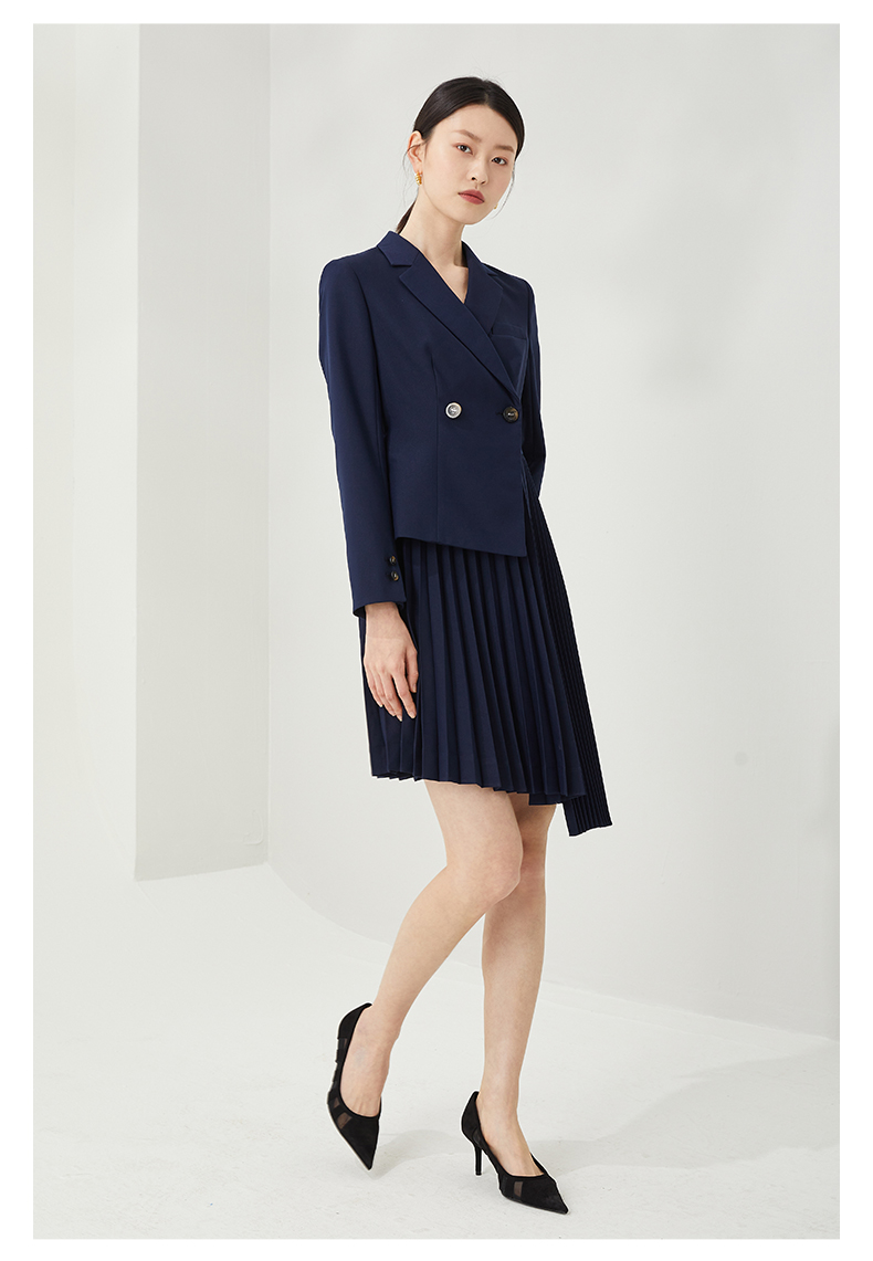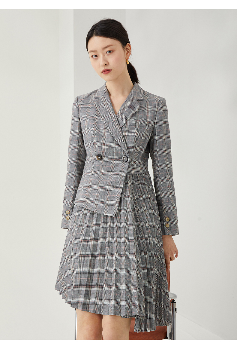 PIRCH2021年秋季新款气质V领不规则设计百褶连衣裙PROWB7814N