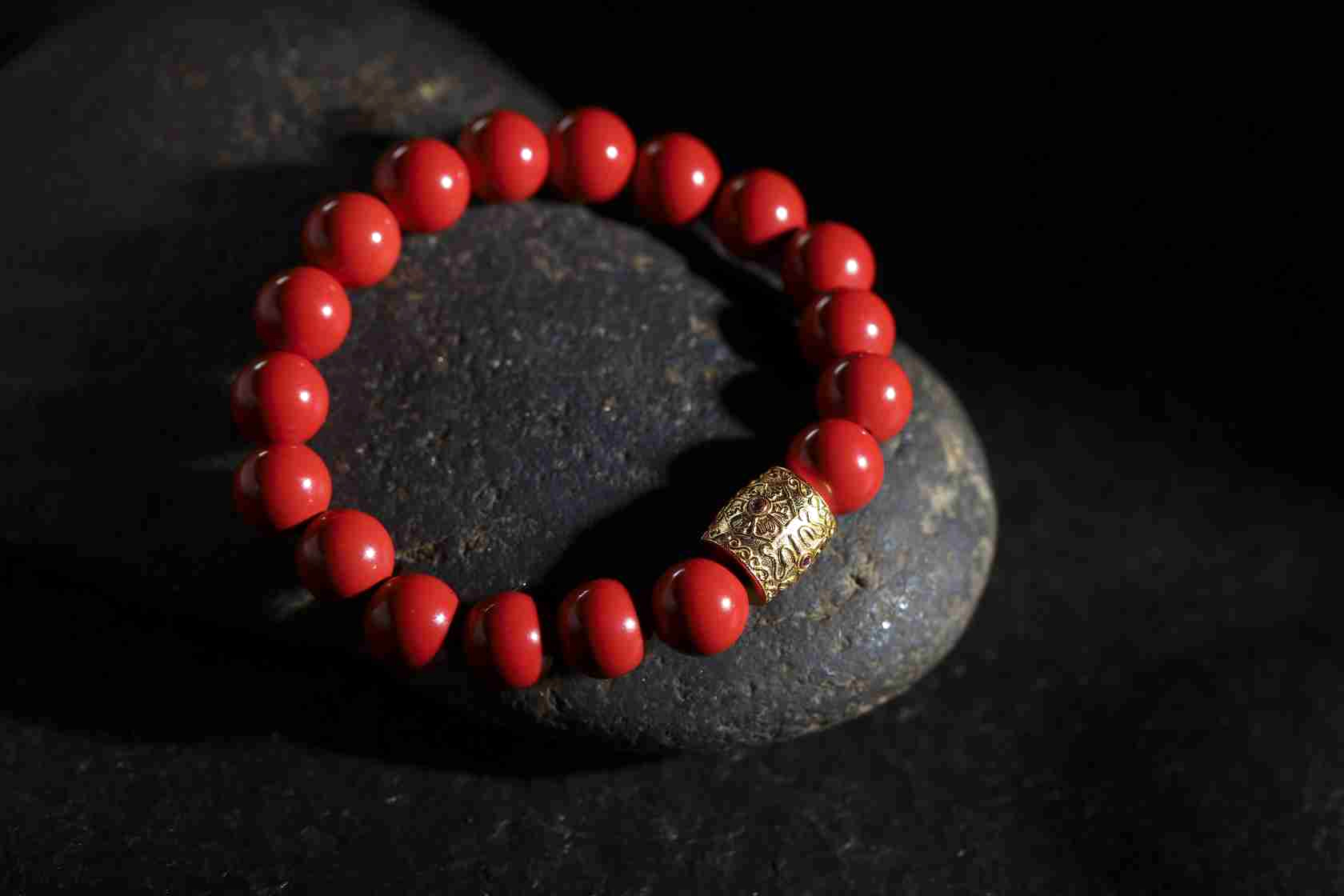 YHZS0021°朱砂+古法素银六字真言路路通手串1.0*18
