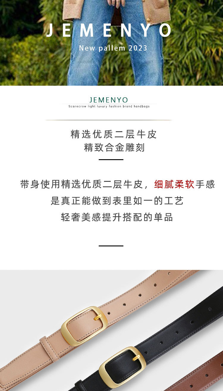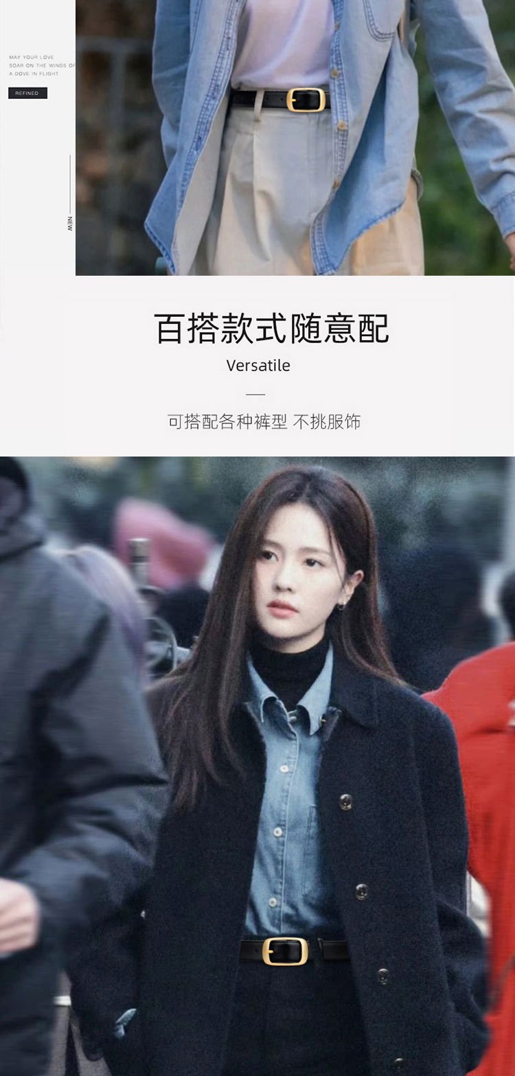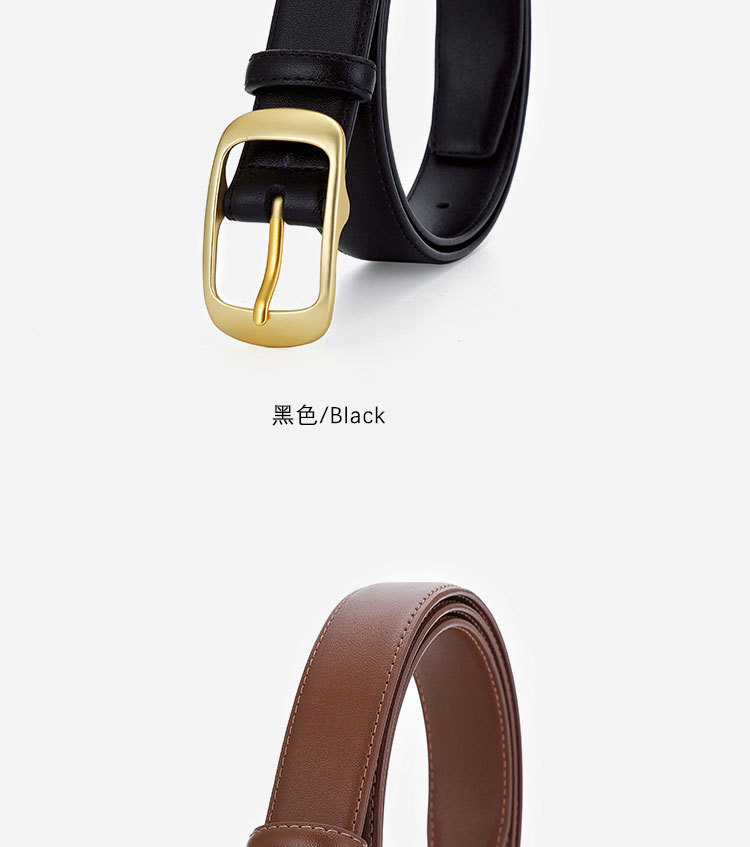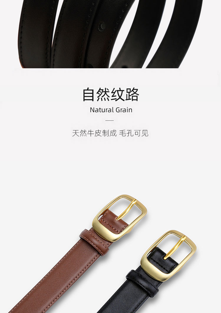 皮带女士真皮百搭高级感腰带纯牛皮简约针扣时尚装饰黑色牛仔裤带