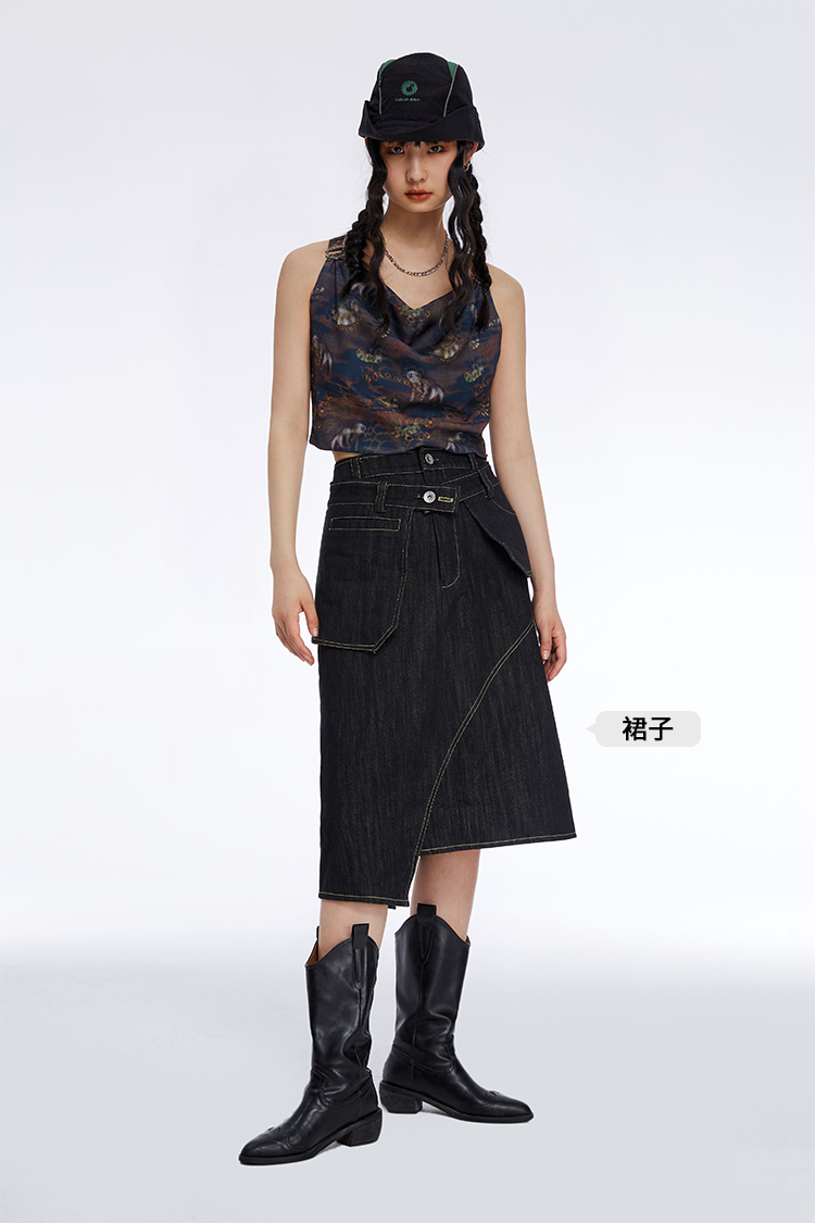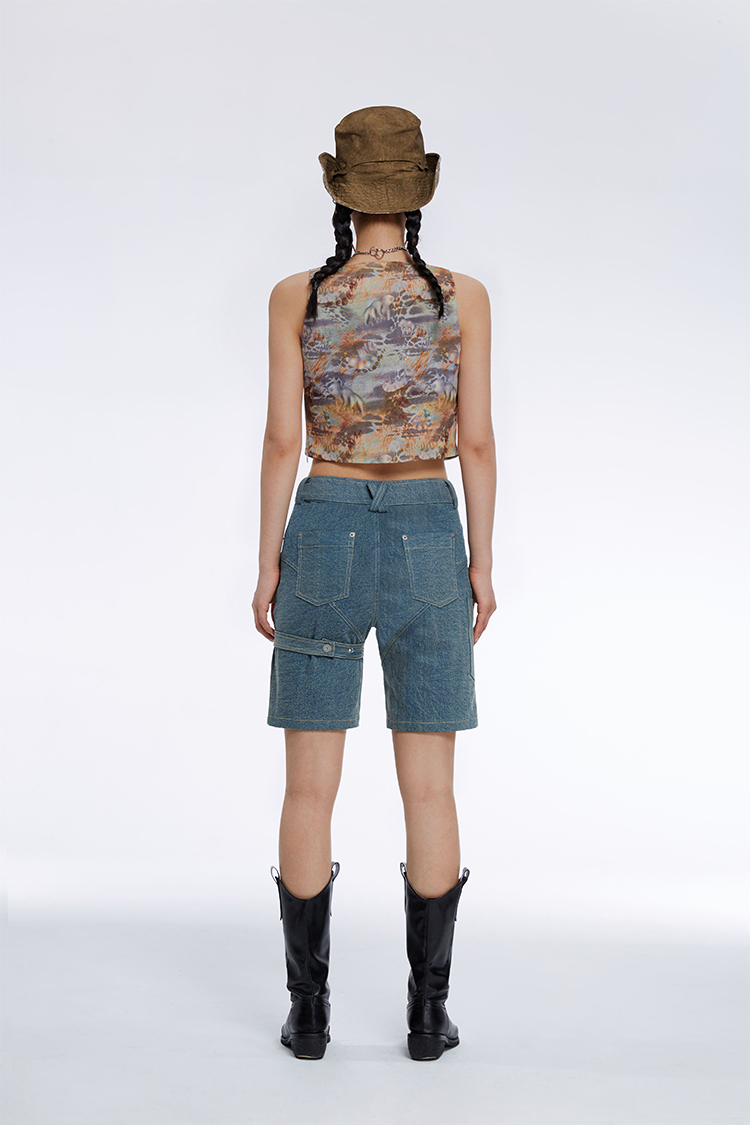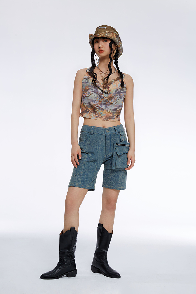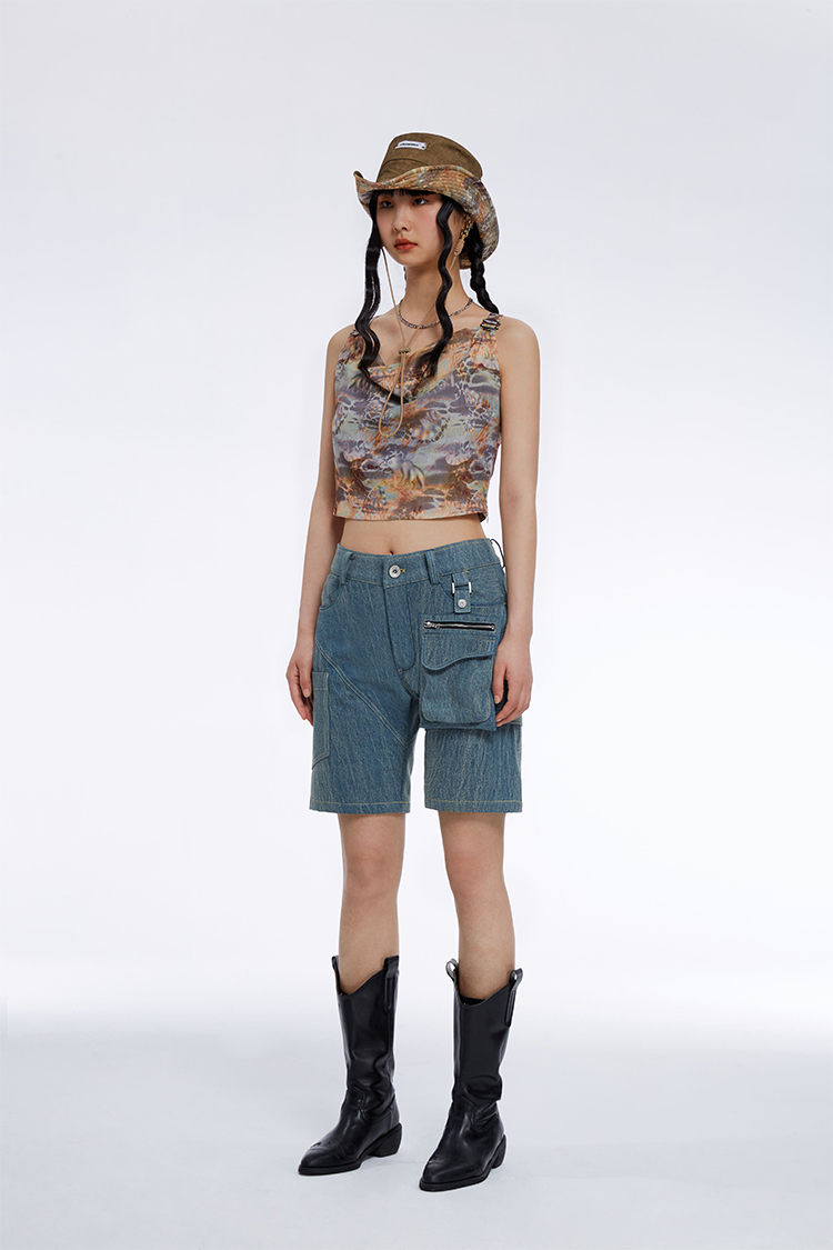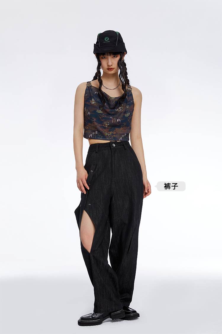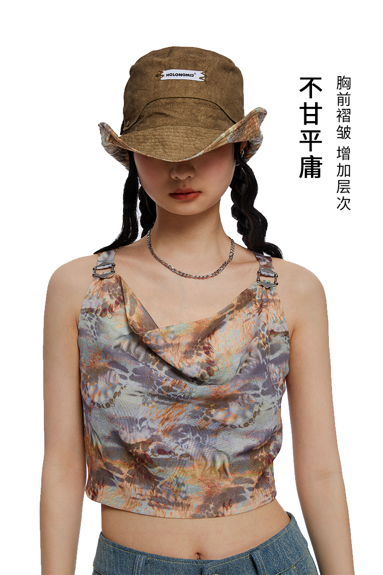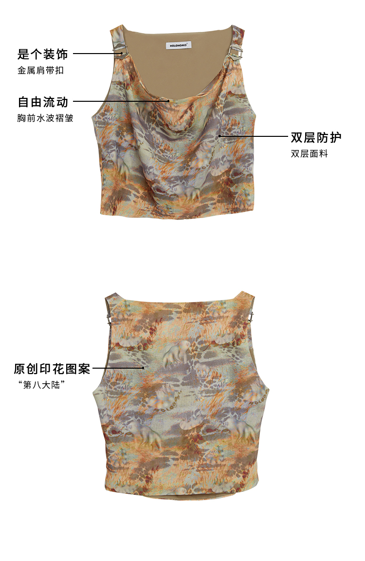 HOLONOMIC「第八大陆」原创荡领短款印花设计感小众外穿吊带背心