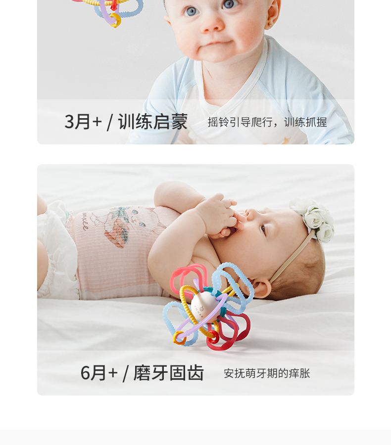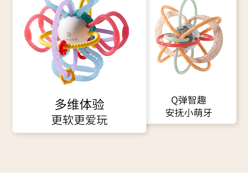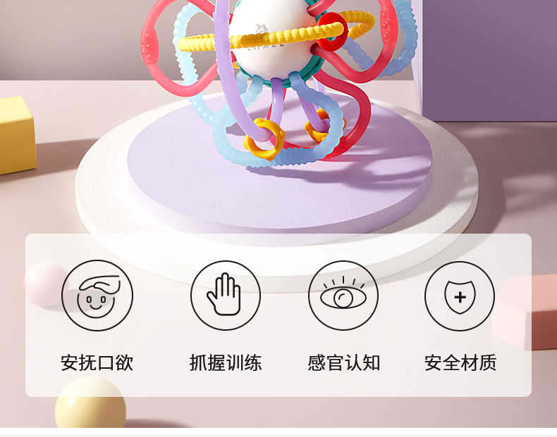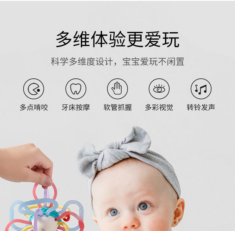 【安抚玩乐】嫚熙曼哈顿球牙胶婴儿磨牙棒可水煮食品级硅胶防吃手神器