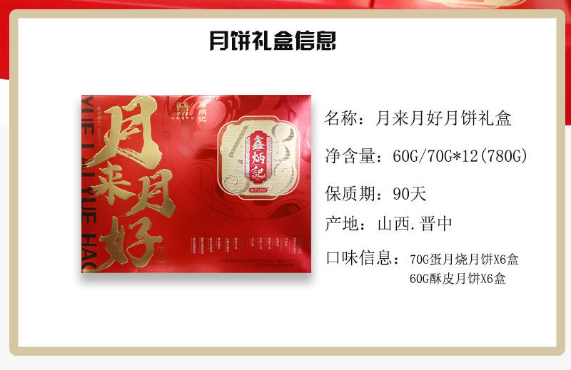 鑫炳记月来月好月饼礼盒780g山西特产中秋晋式糕点礼品送人团购