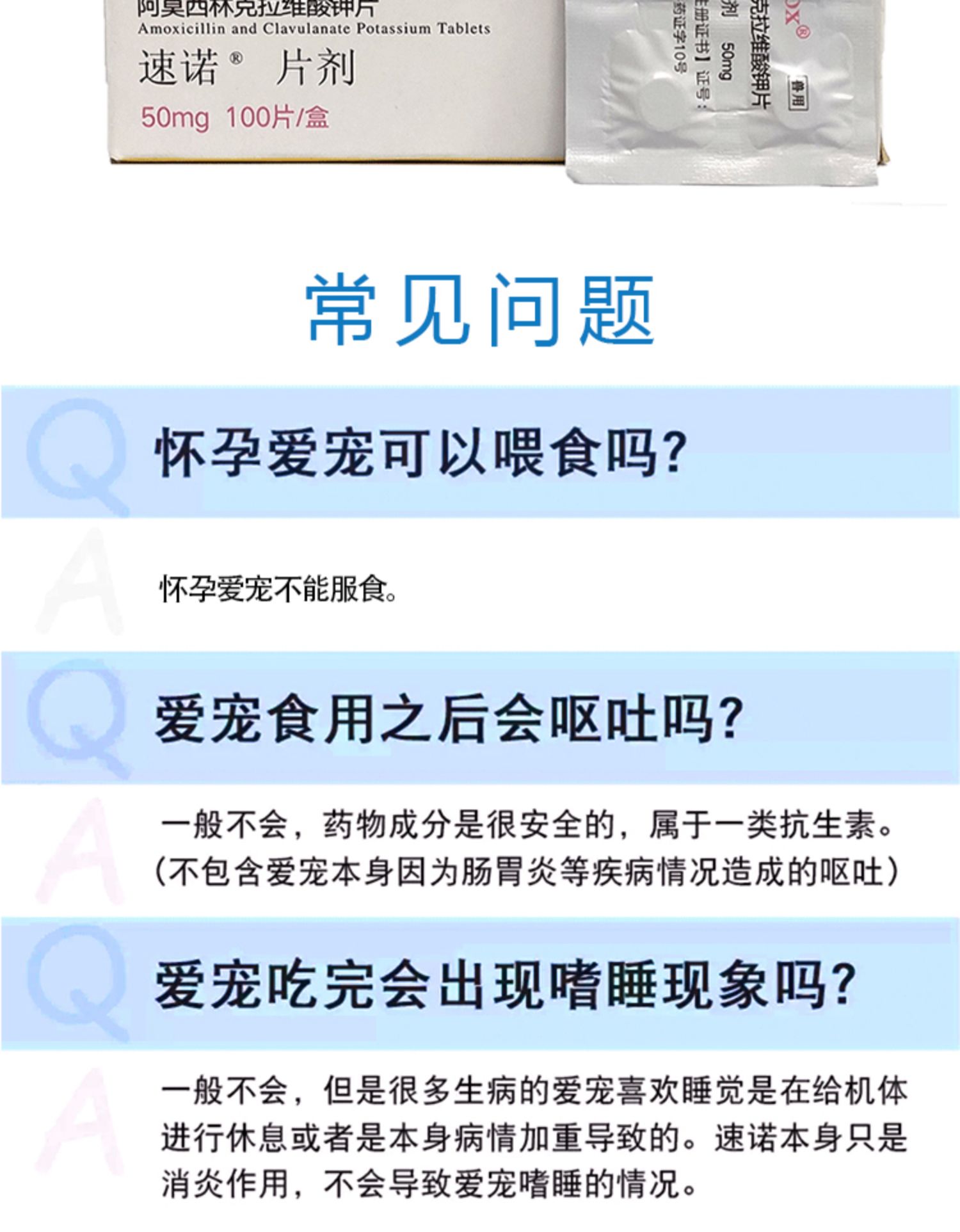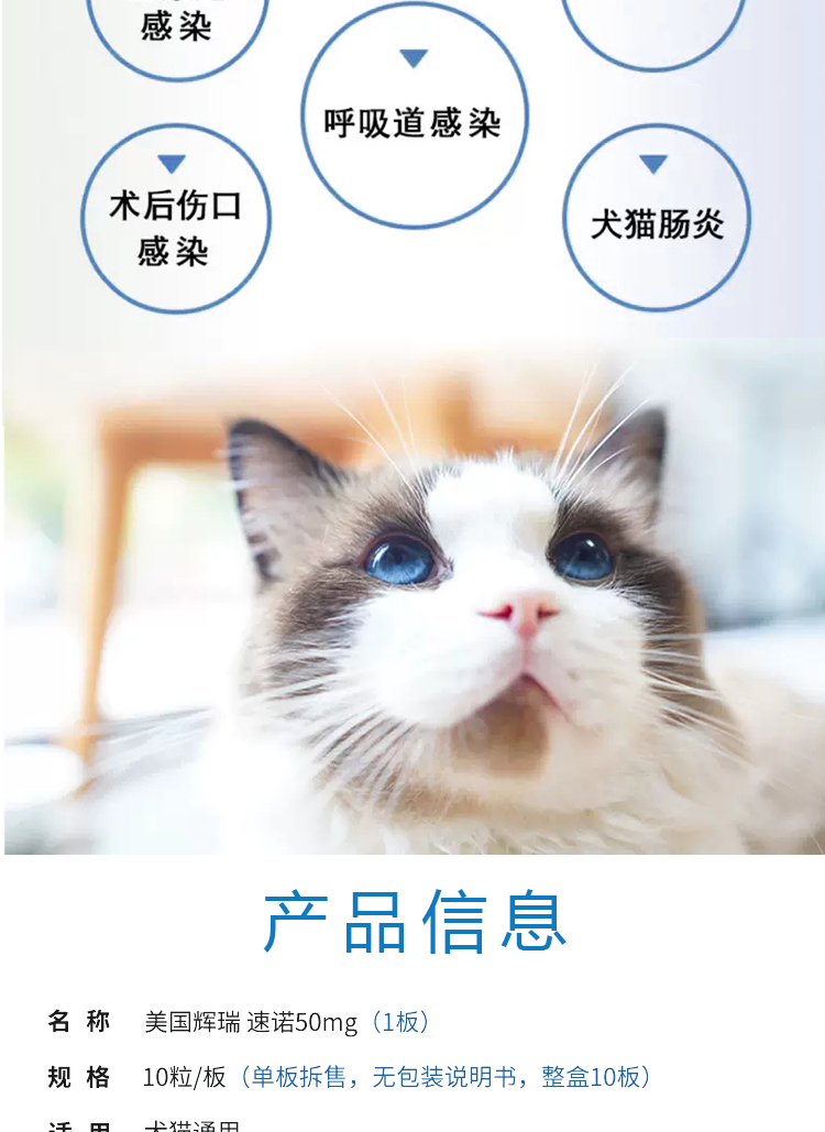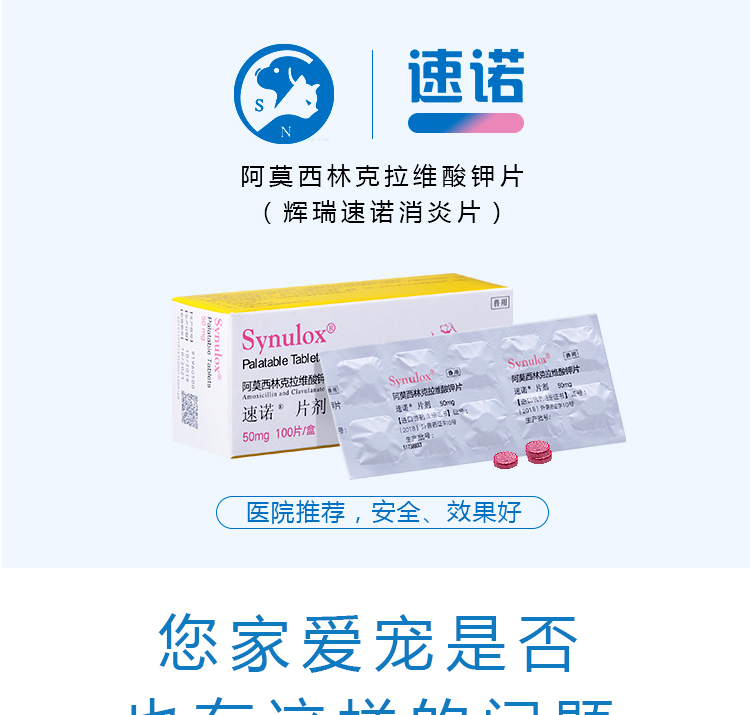 速诺猫鼻支感冒喷嚏咳嗽消yan药片克拉维酸钾猫狗通用50mg