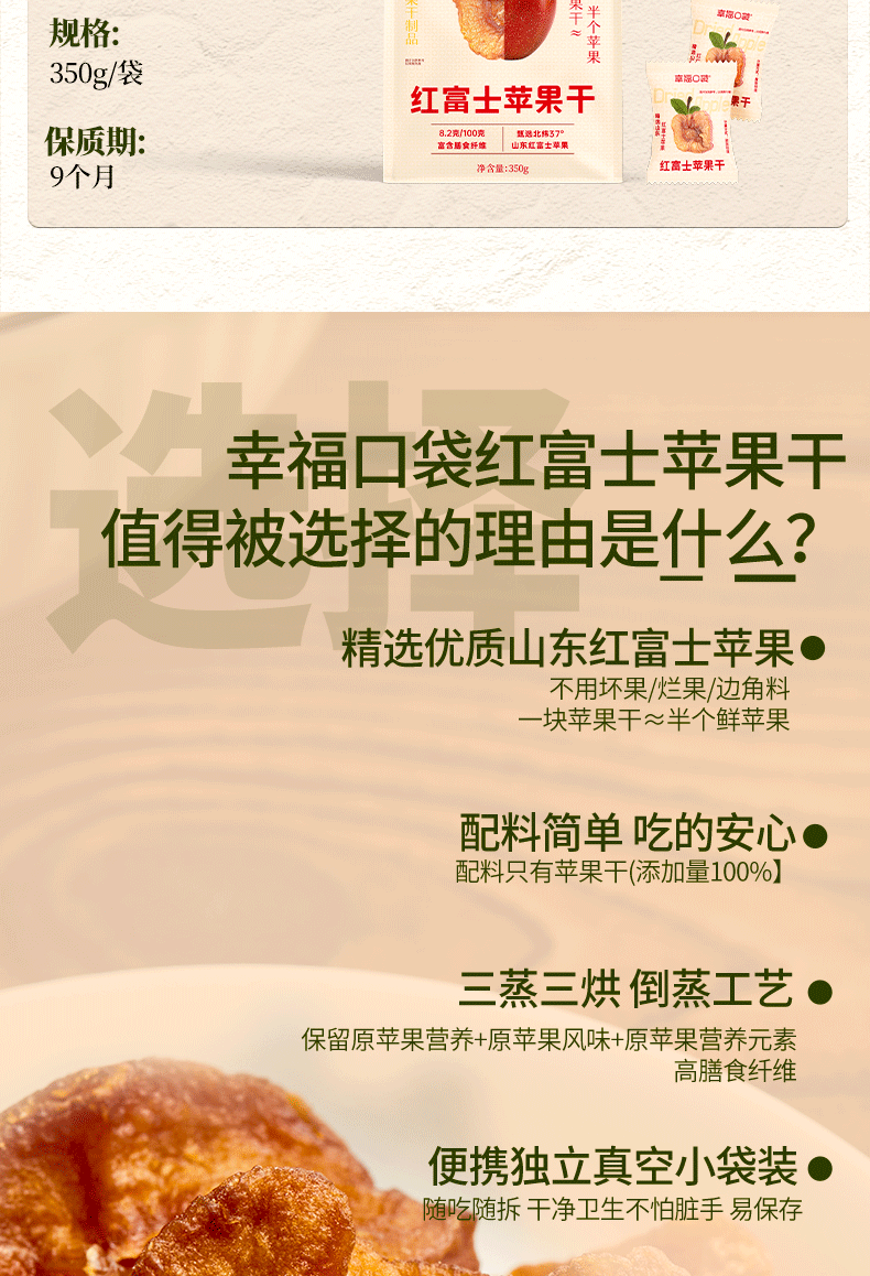 幸福口袋苹果干350g