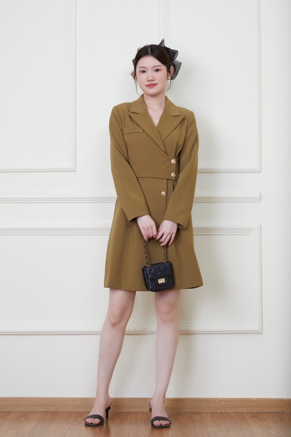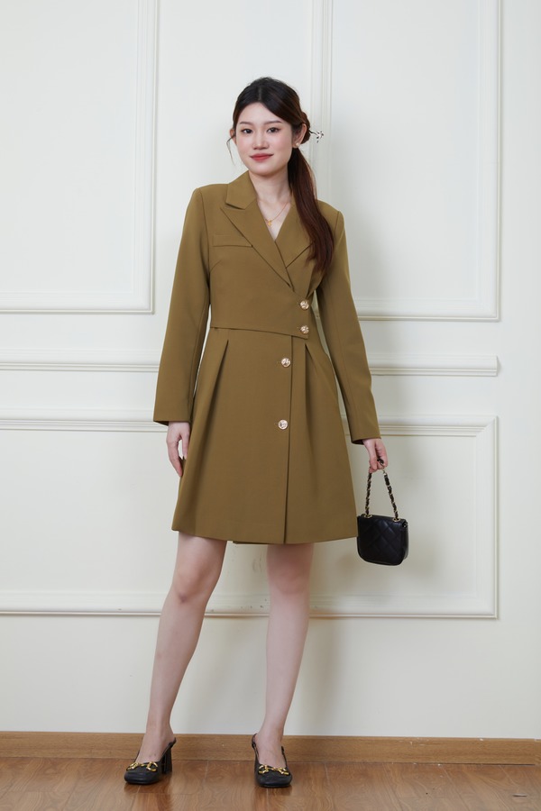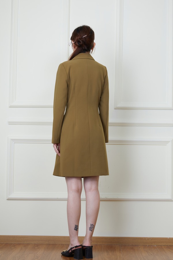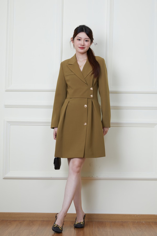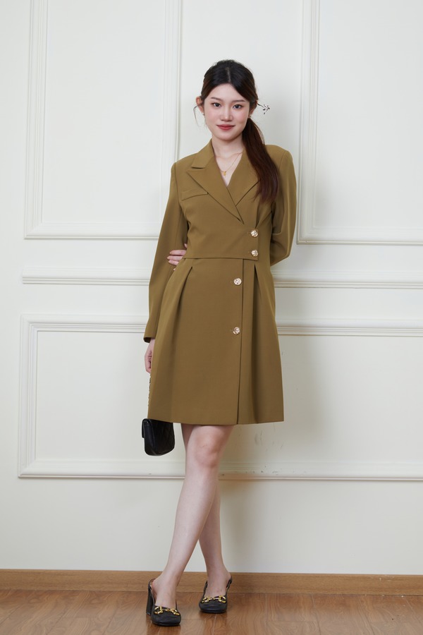 Le Malene 绿色西装领收腰连衣裙 19868