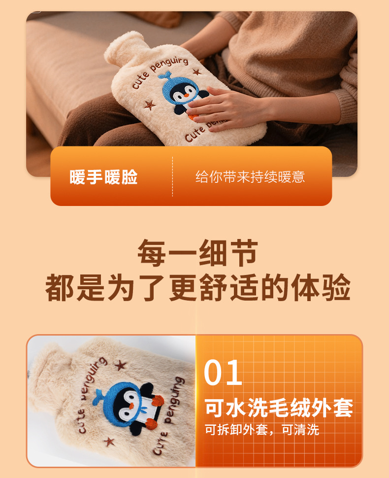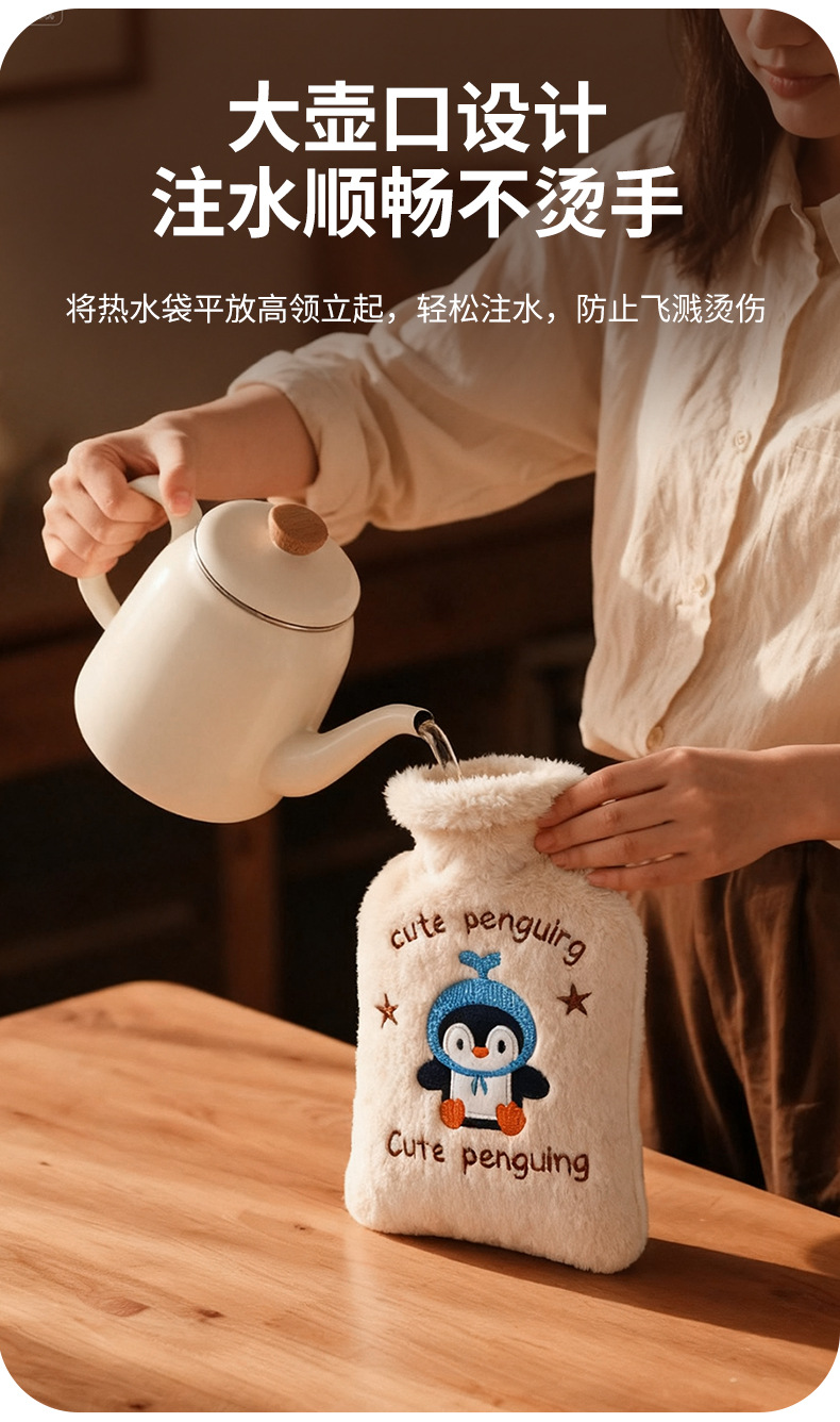 「3C认证!抖音同款」注水热水袋卡通可拆洗柔软保暖保温PVC灌水袋居家日用暖床暖水袋暖手宝宝