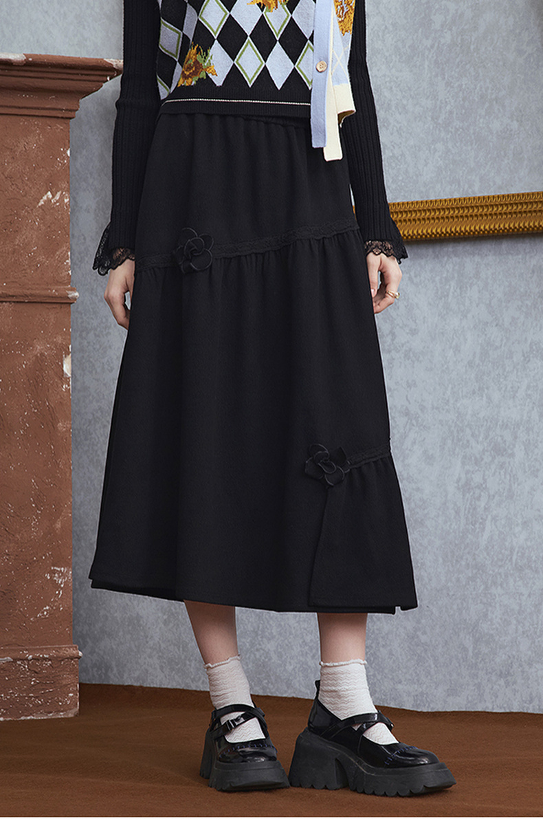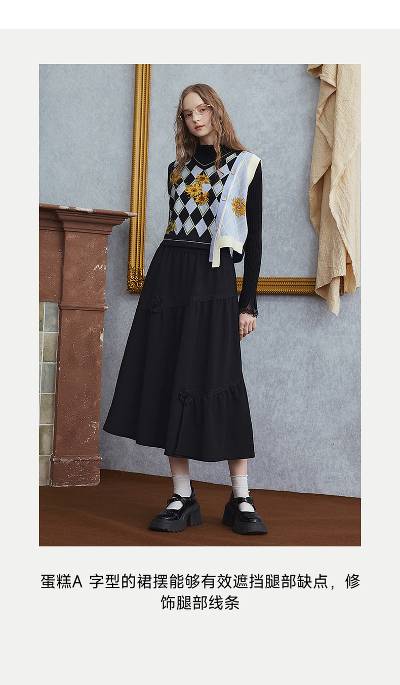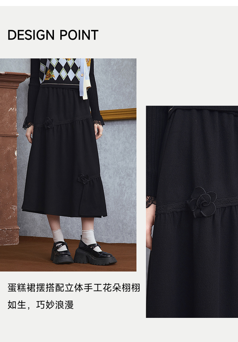 两三事 暗恋桃花 2025秋季新款甜美立体花朵蛋糕裙a字半身裙