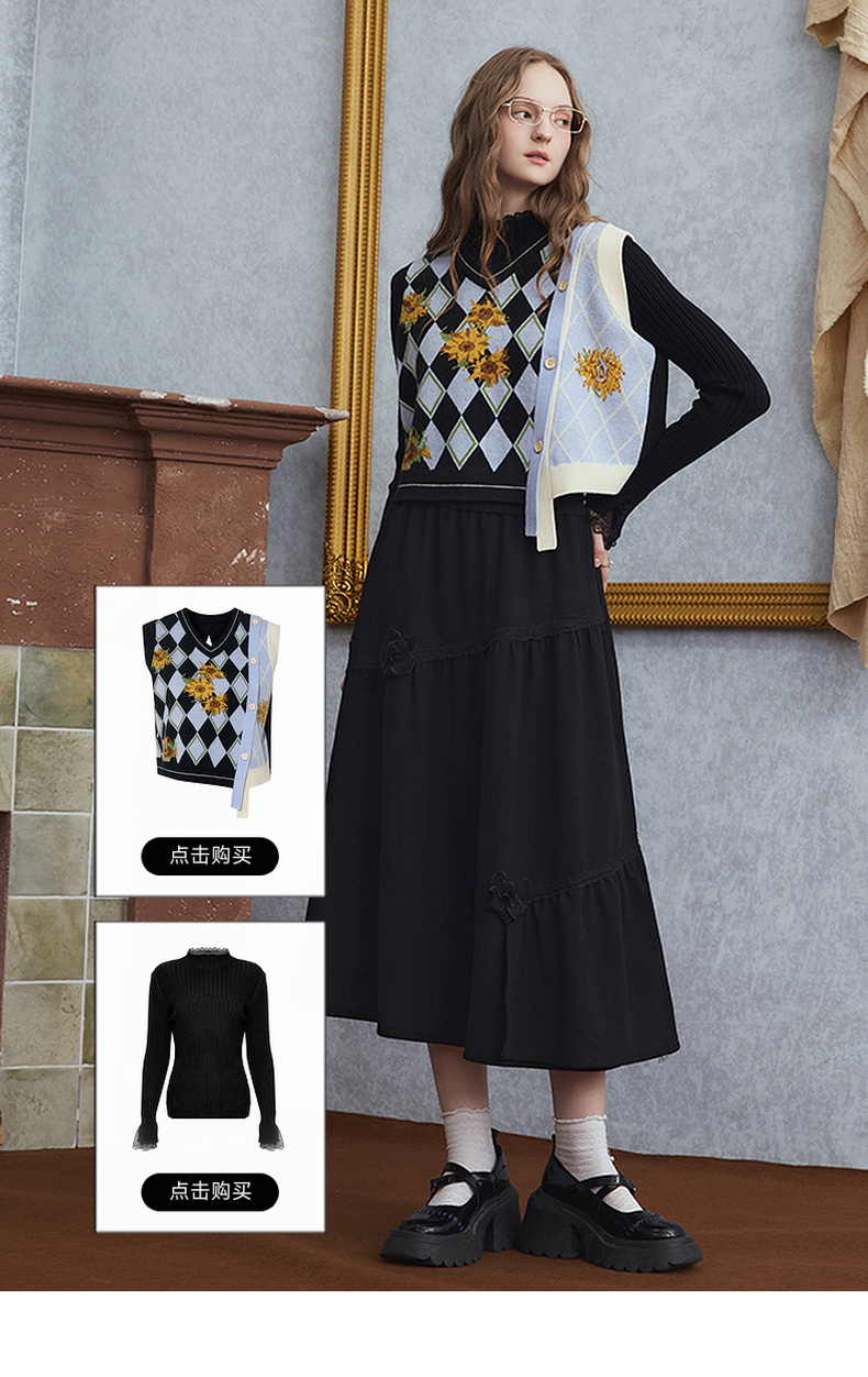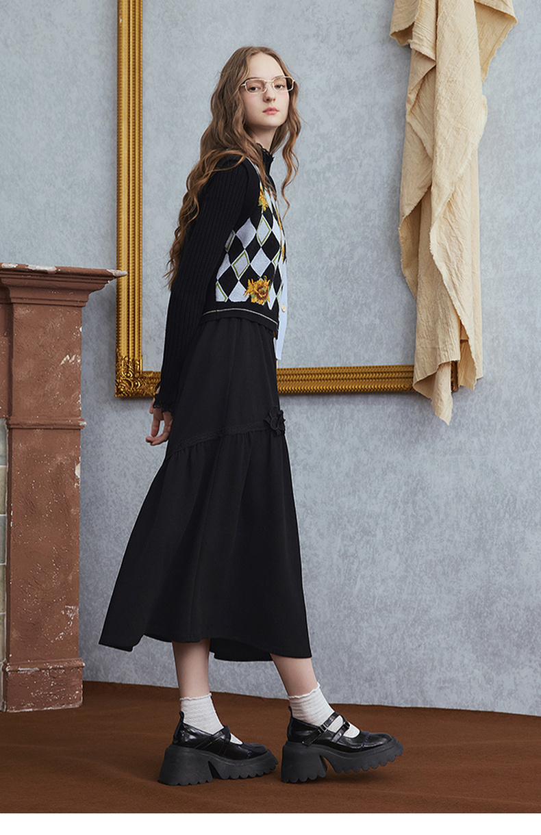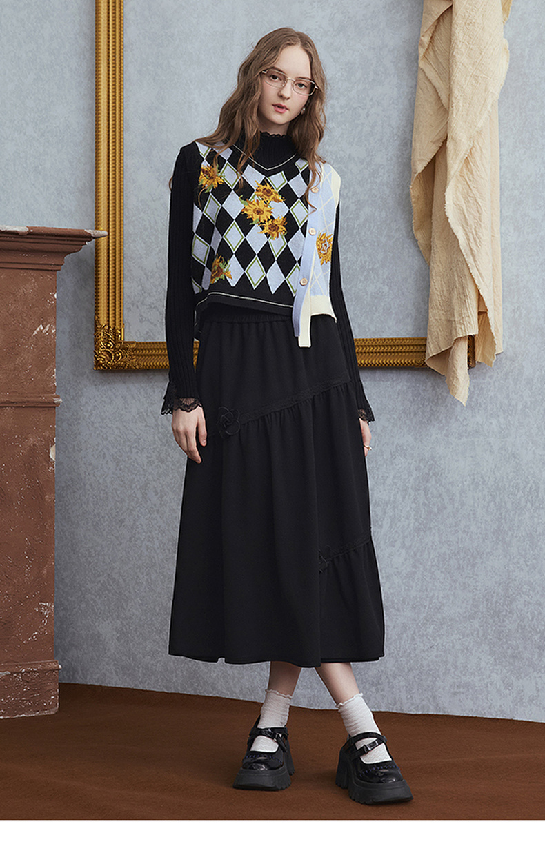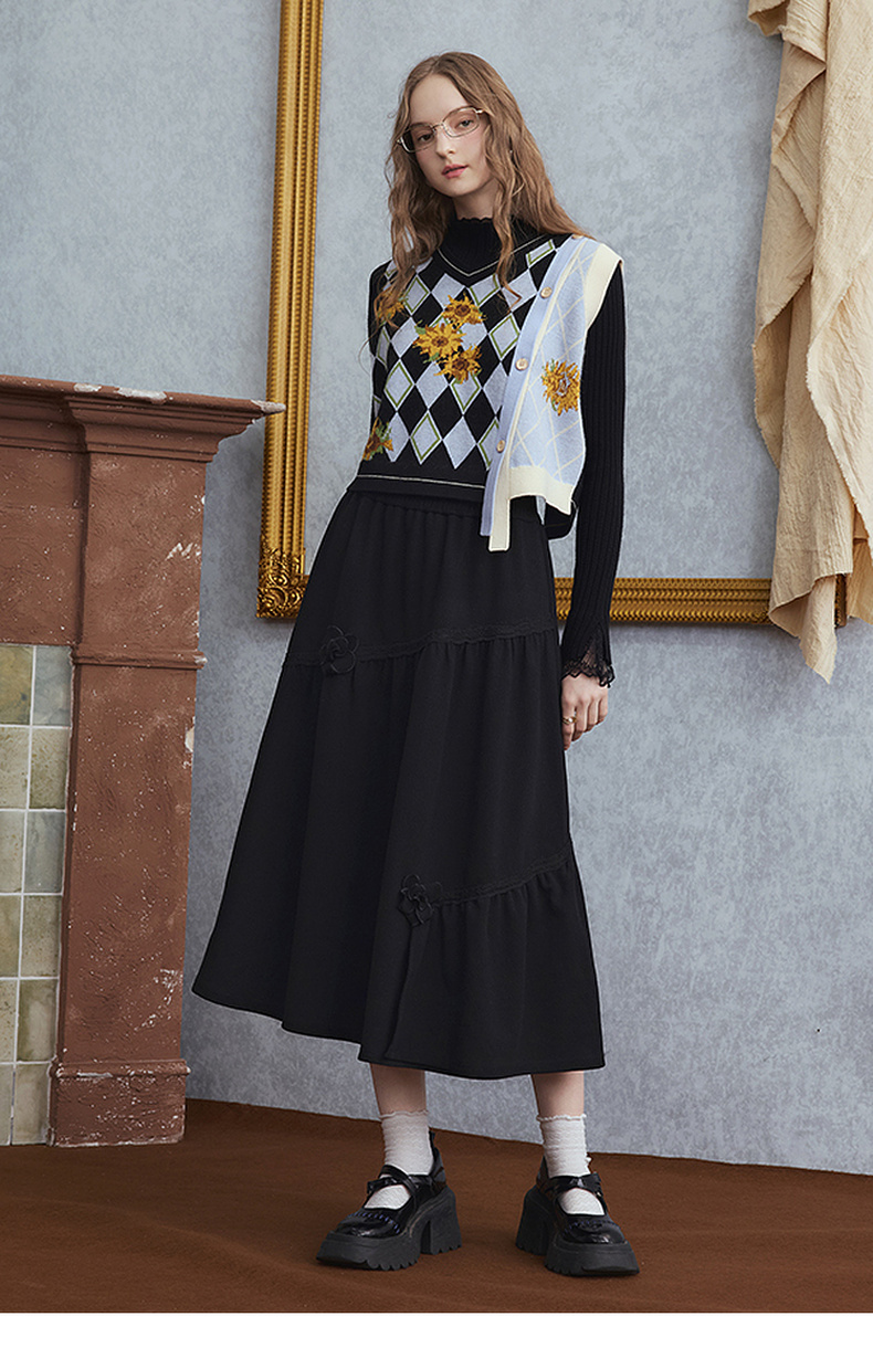 两三事 暗恋桃花 2025秋季新款甜美立体花朵蛋糕裙a字半身裙