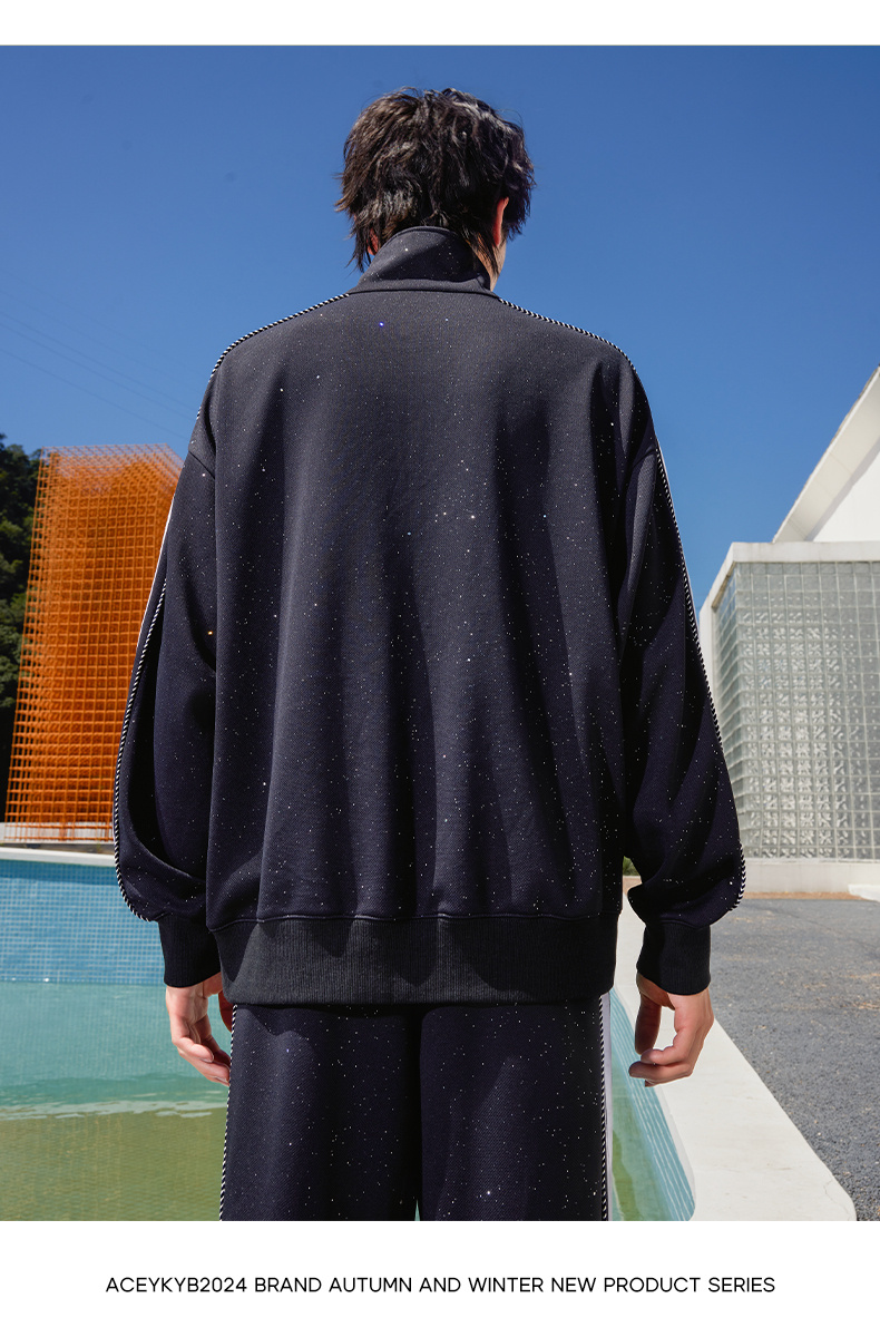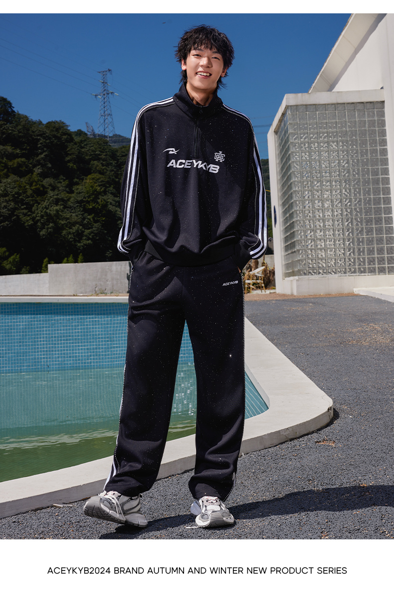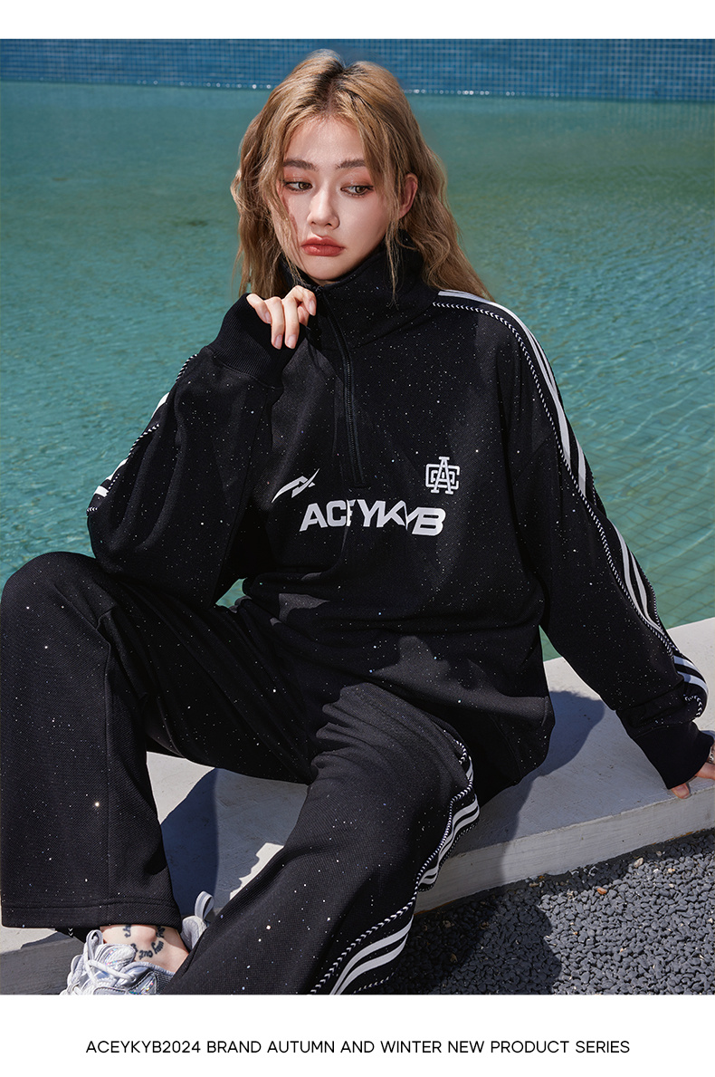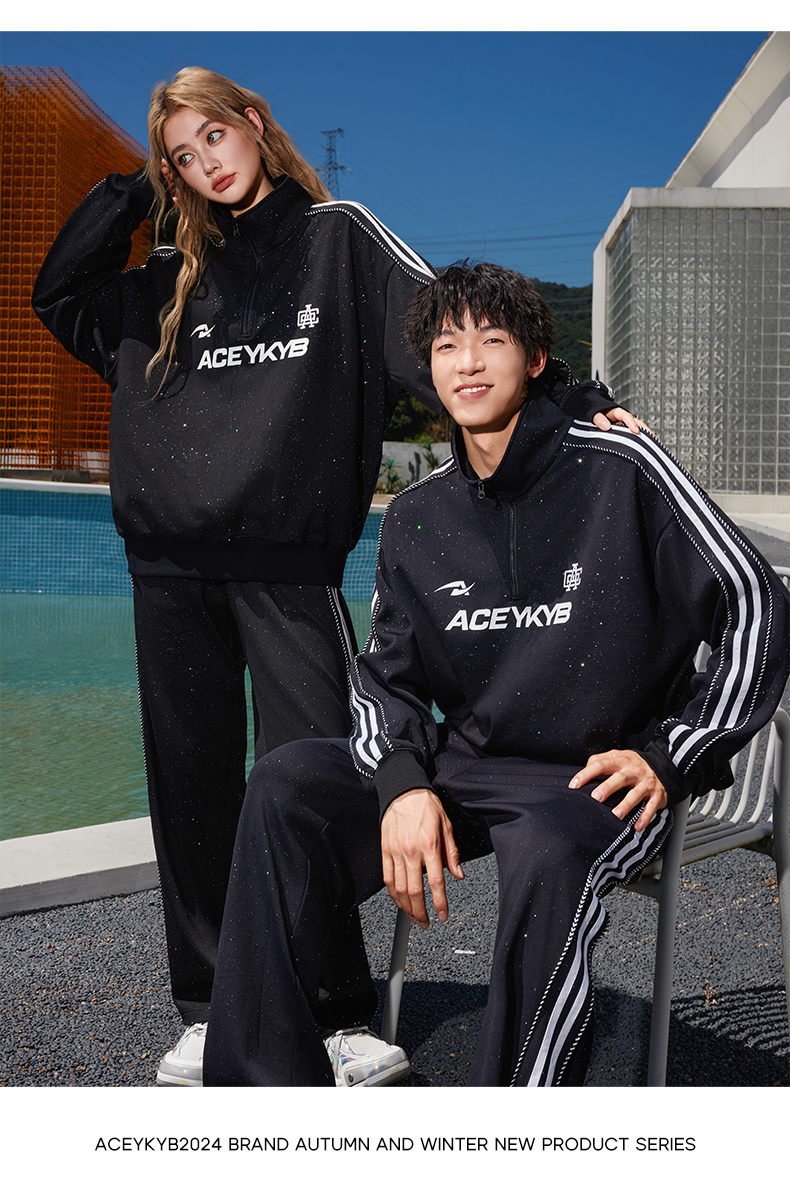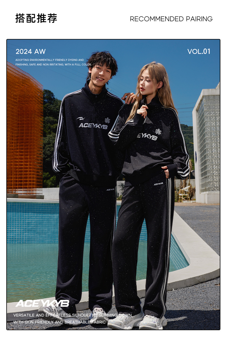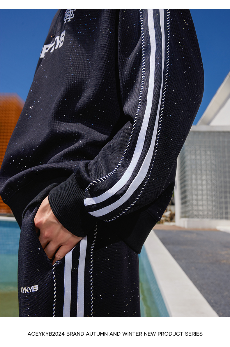 【黄誉博同款】[整套下单直减39]ACEYKYB新款细闪卫衣裤子外套华夫格国潮百搭宽松撒银款套装情侣装