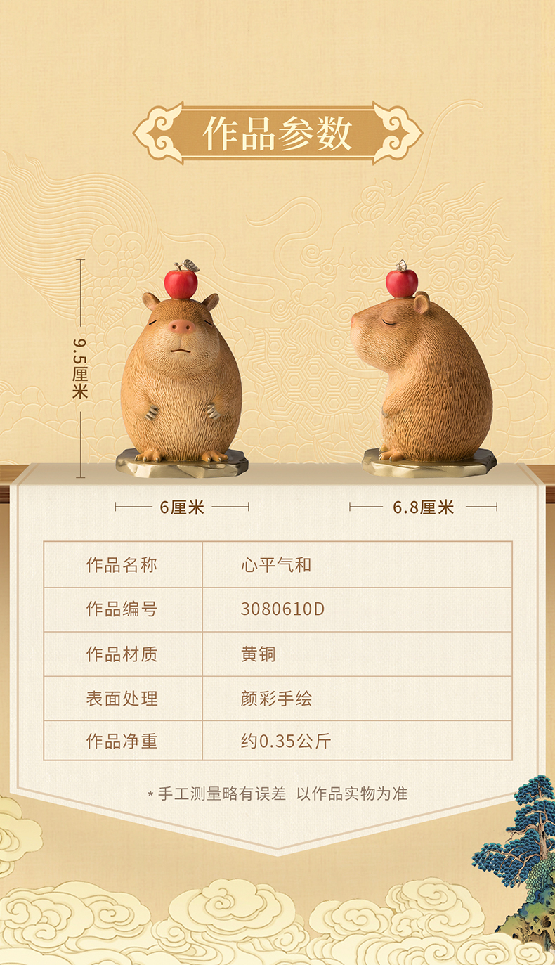 铜师傅《心平气和》卡皮巴拉客厅桌面铜摆件 家居治愈情绪摆件