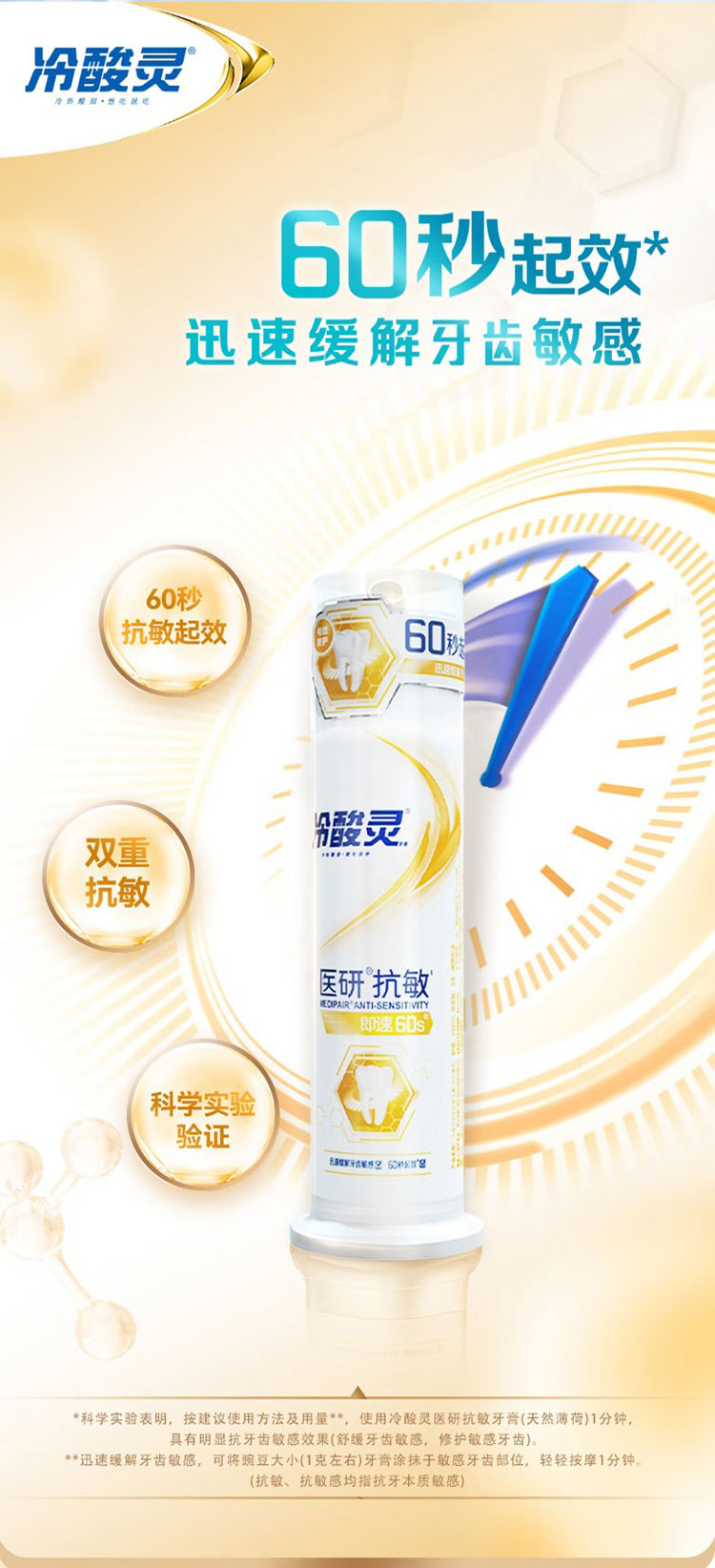 冷酸灵丨医研泵抗敏牙膏即速60S快速缓解牙齿敏感 多规格可选