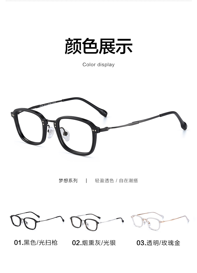 普莱斯眼镜-梦想系列 板材纯钛材质 男女同款 PM6039 三色可选