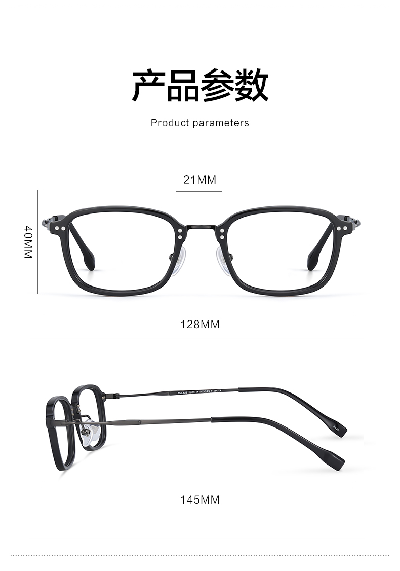普莱斯光学镜框A6138 经典全框 半钛材质 舒适鼻托 稳固桩头 商务休闲 三色可选