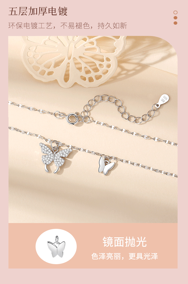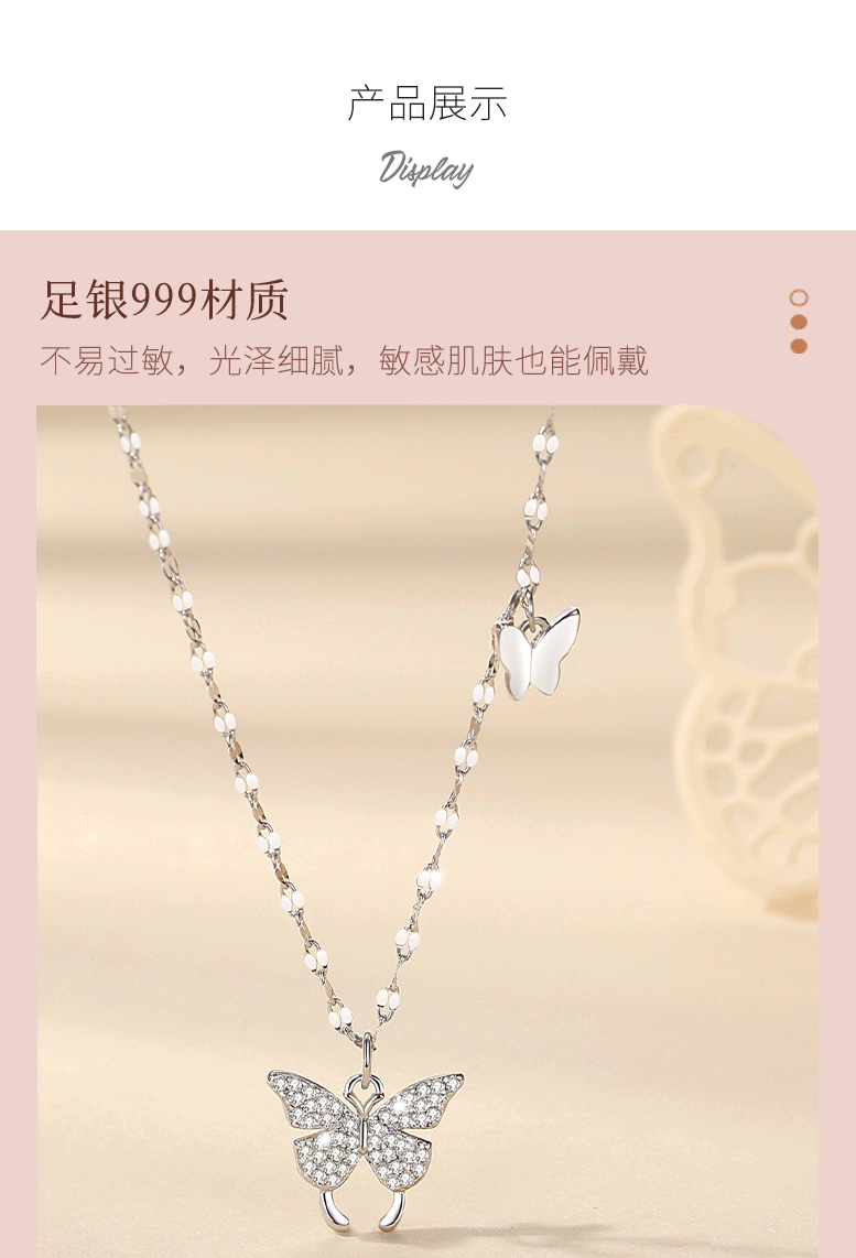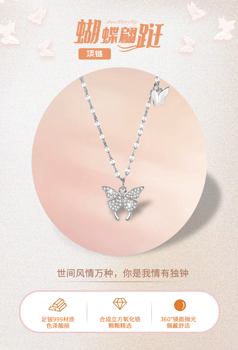 「精美礼盒装!蝴蝶足银项链」项链999纯银吊坠女时尚轻奢风银项链女饰品女高级感韩版时尚饰品
