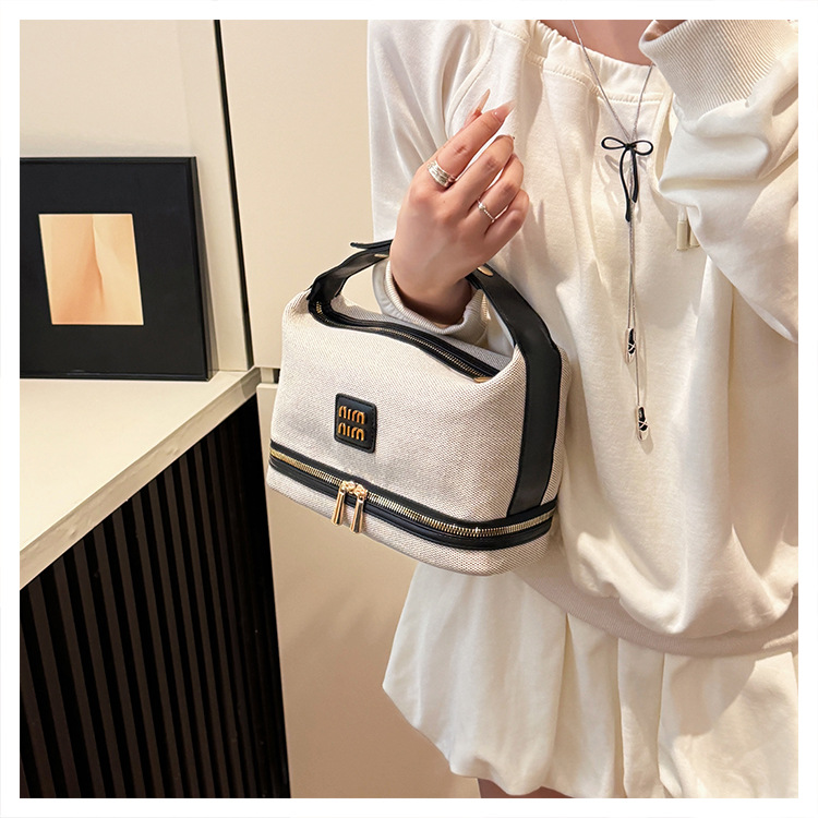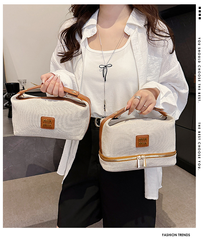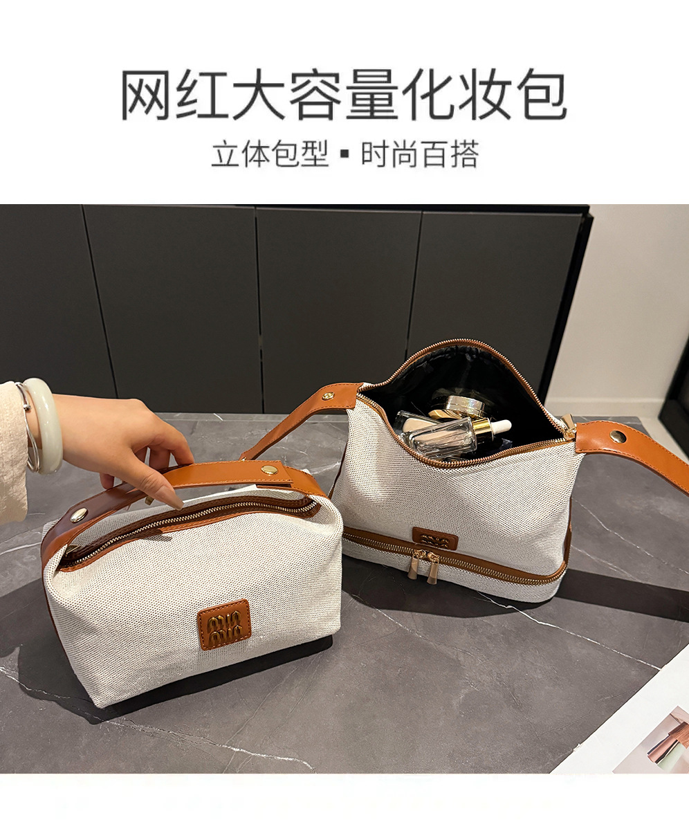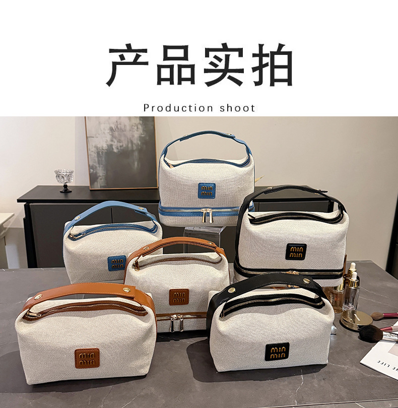 【上新!轻奢新宠】复古金属标✨帆布手提化妆包,收纳高级感一包搞定!💼2025新品金属标复古 轻奢帆布手提化妆包 高级感收纳包袋