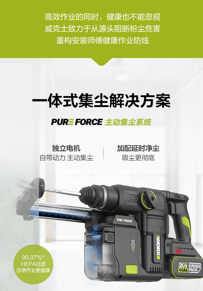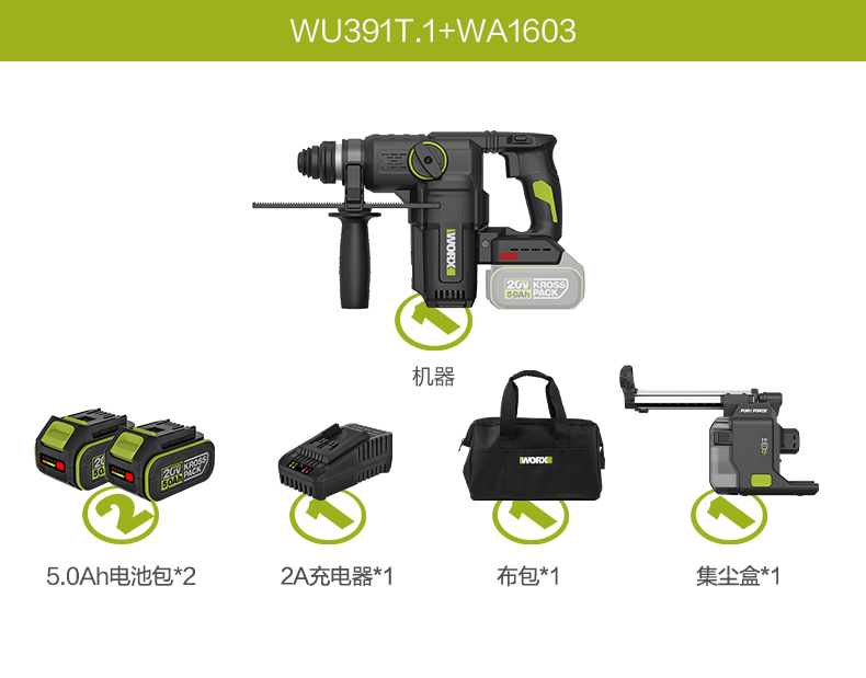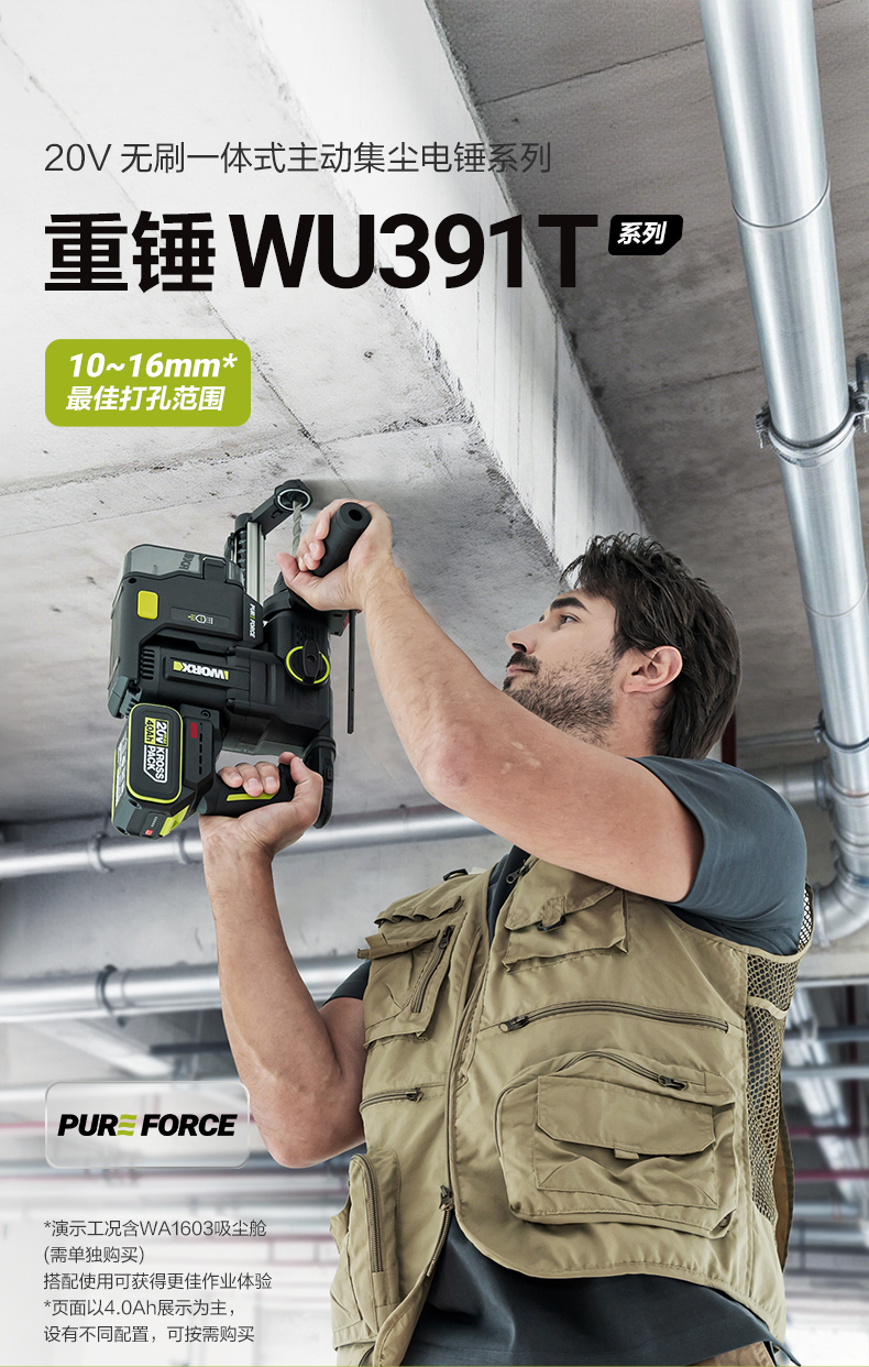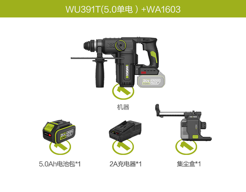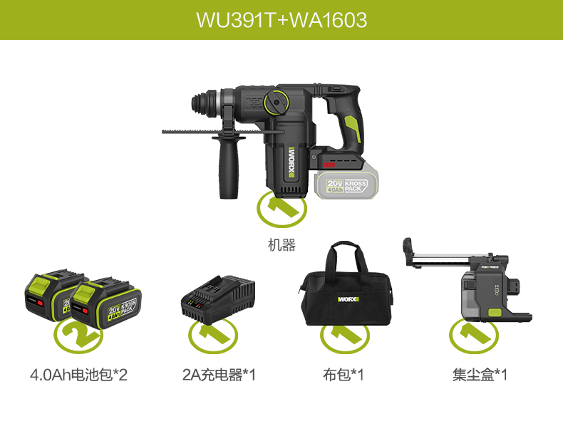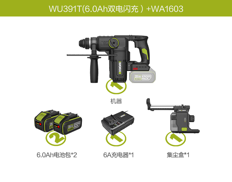威克士20V 26mm 无刷重载电锤WU391T