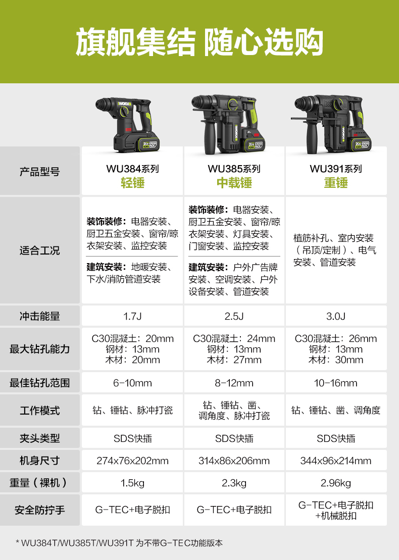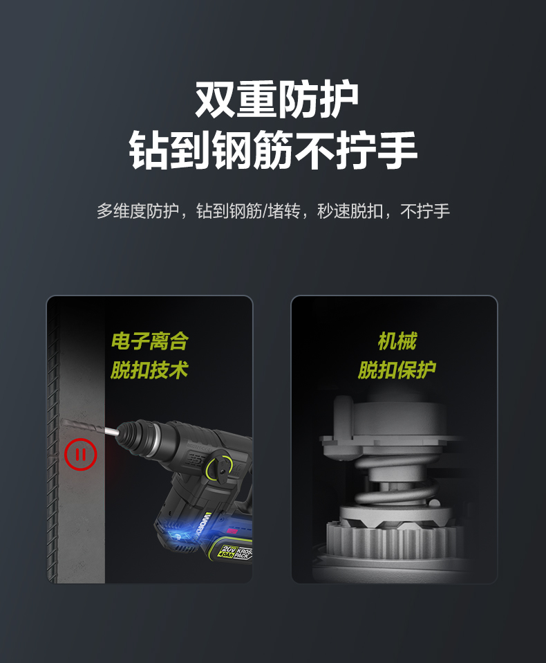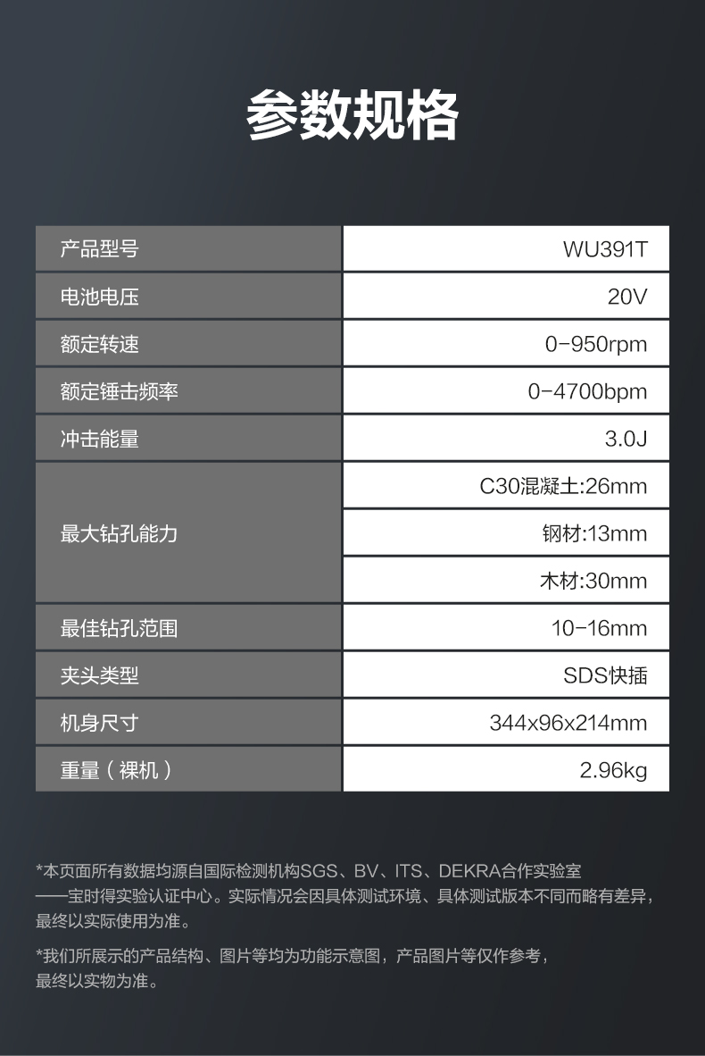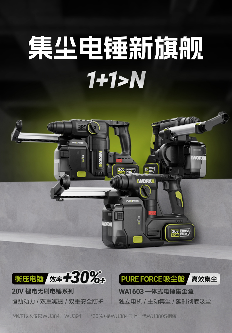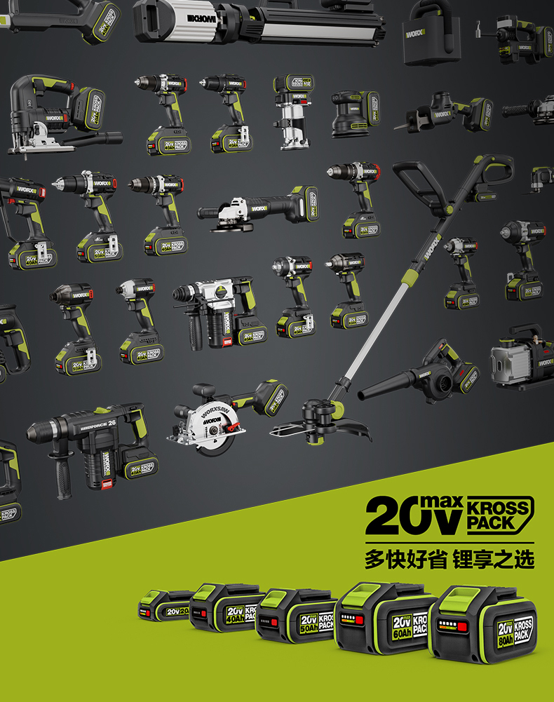 威克士20V 26mm 无刷重载电锤WU391T