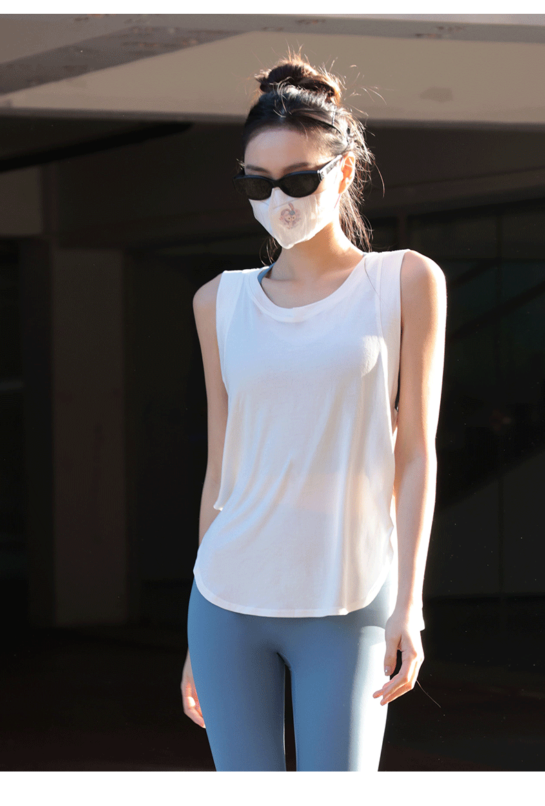 beemen健身服短款无袖T恤 跑步训练欧美瑜伽上衣宽松运动背心夏季罩衫
