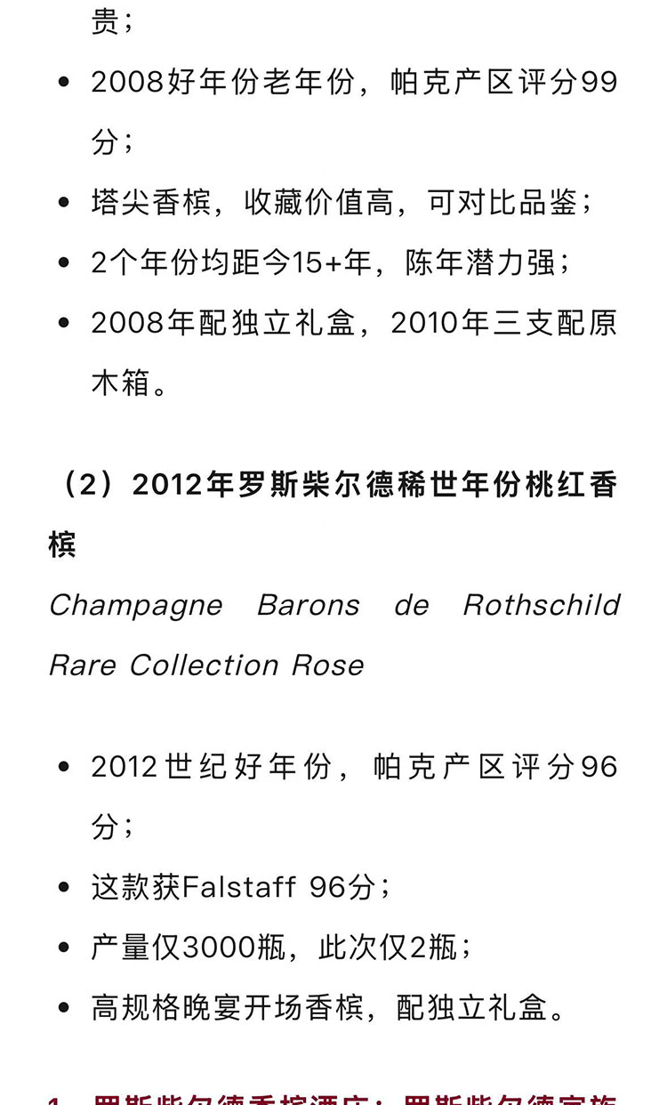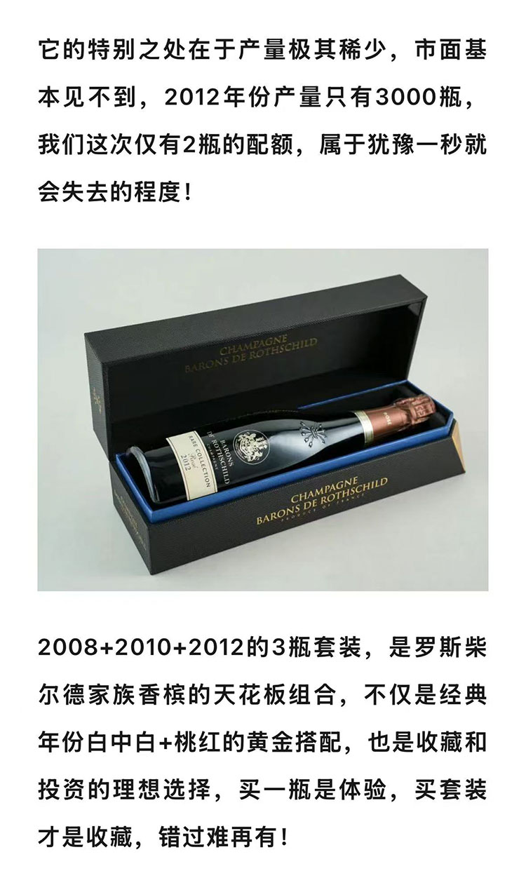【奢品】法国罗斯柴尔德香槟2010/2008/稀世年份白中白/2012年稀世年份桃红