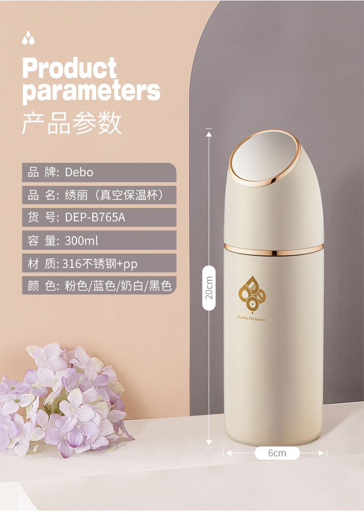 Debo德铂-绣丽真空保温杯300ml 316不锈钢健康耐用 强效保温 创新专利