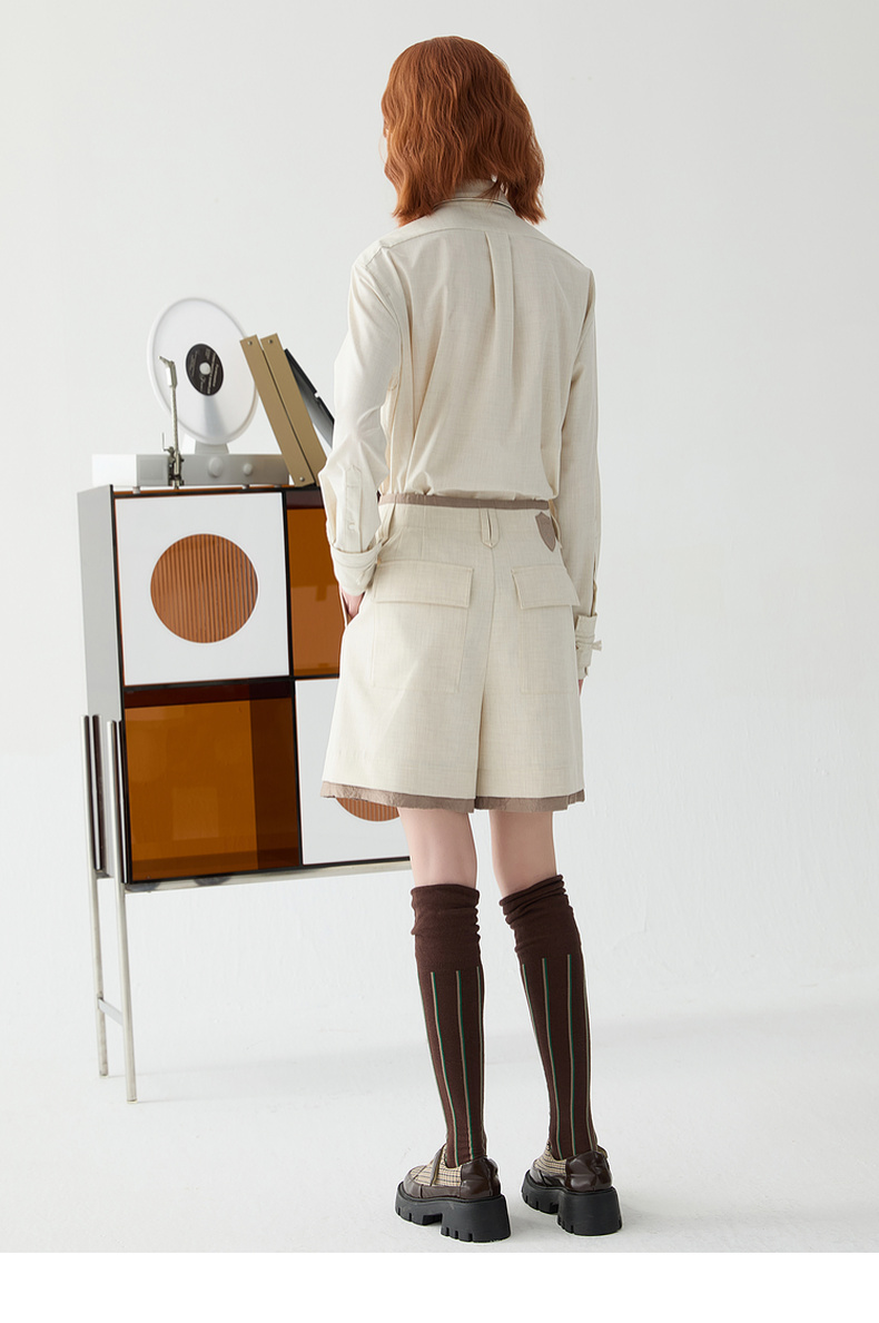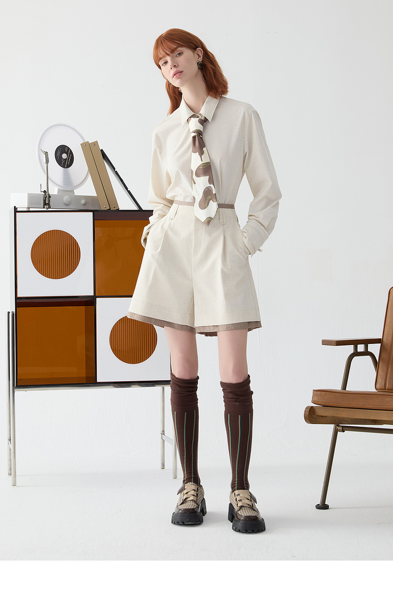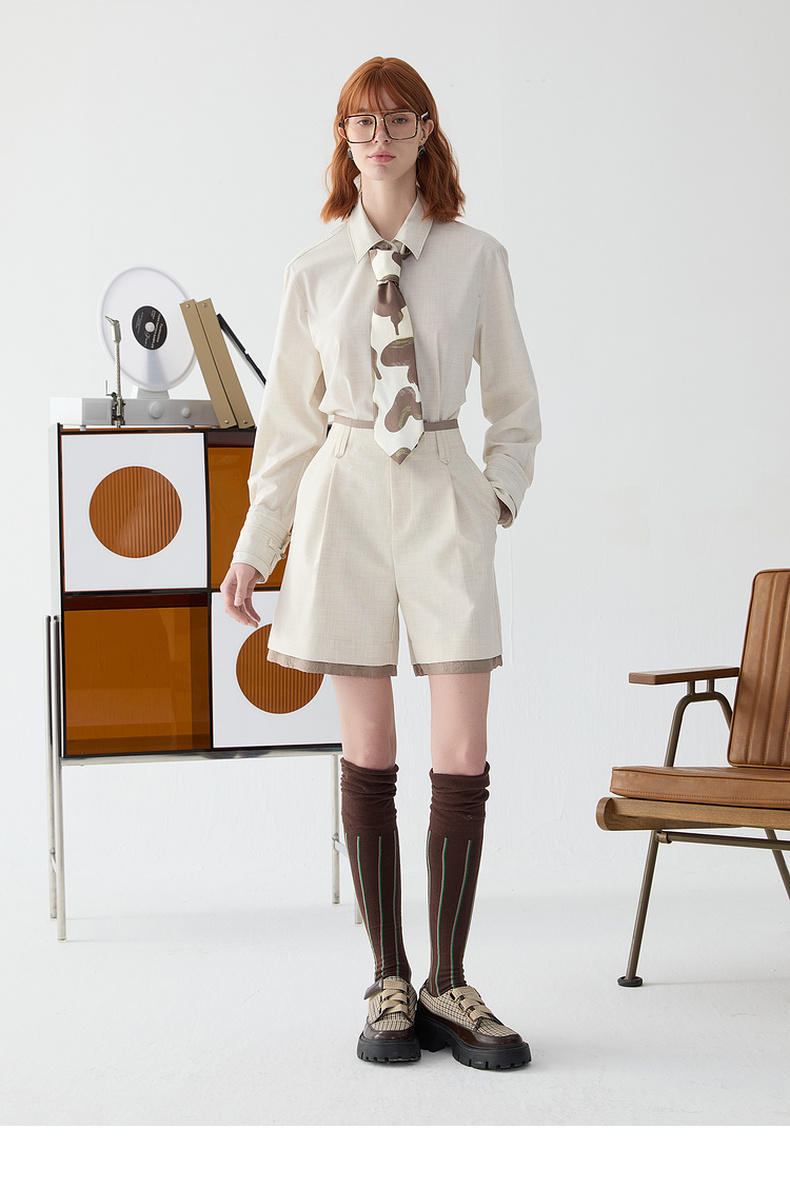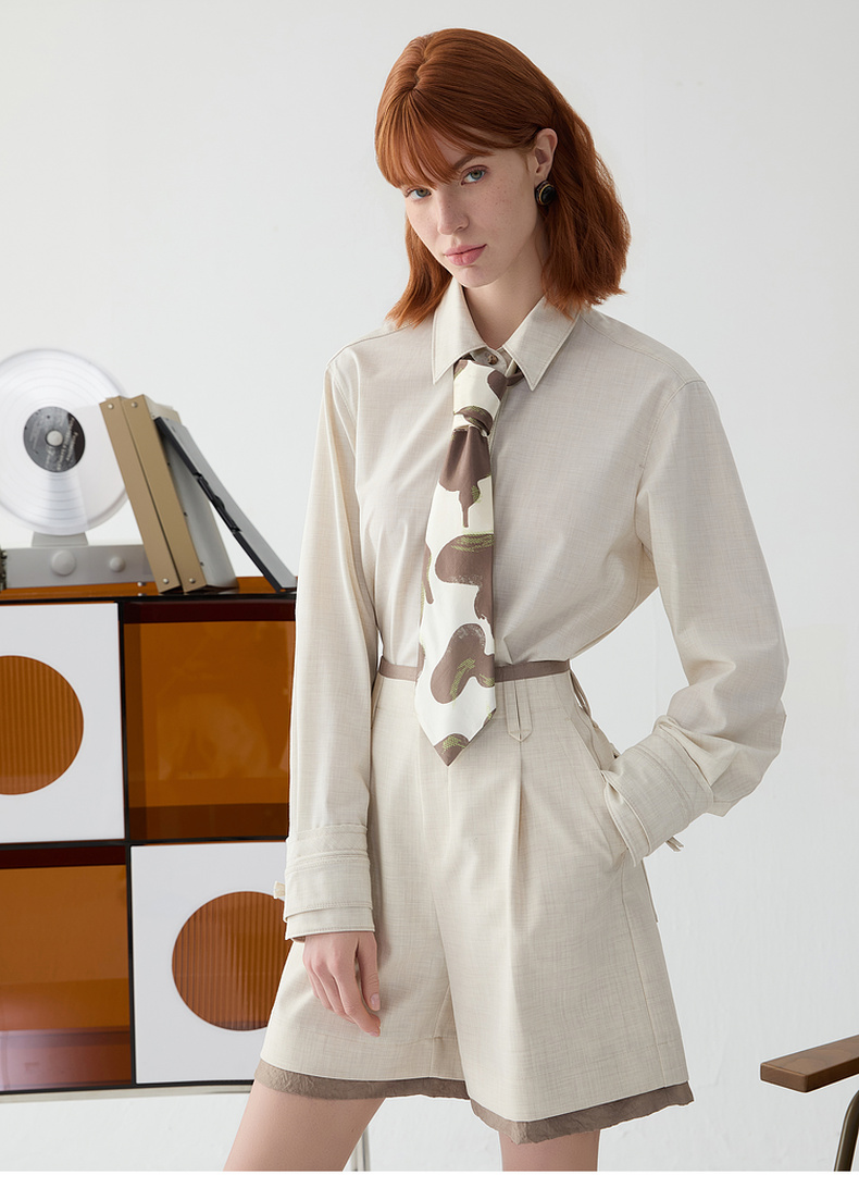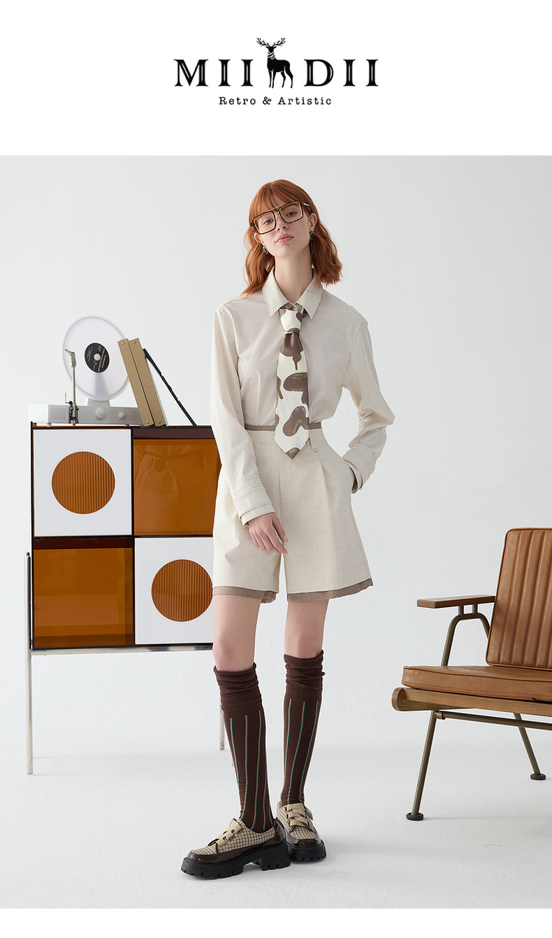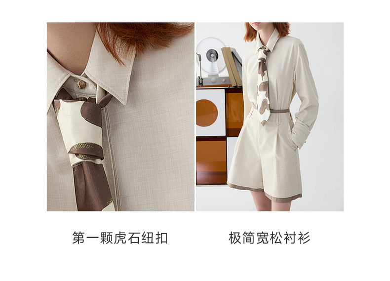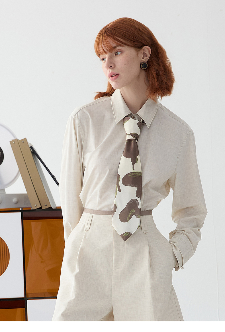 谜底简约衬衫长袖女2025春新品通勤风宽松设计感衬衣女251MC0025
