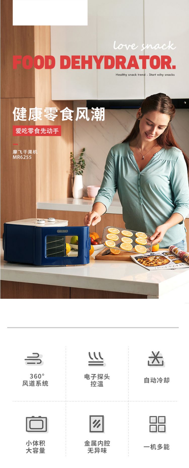 【小家电】摩飞新款机料理机风干果汁机家用水果蔬菜肉类脱水机干燥机MR6255HF