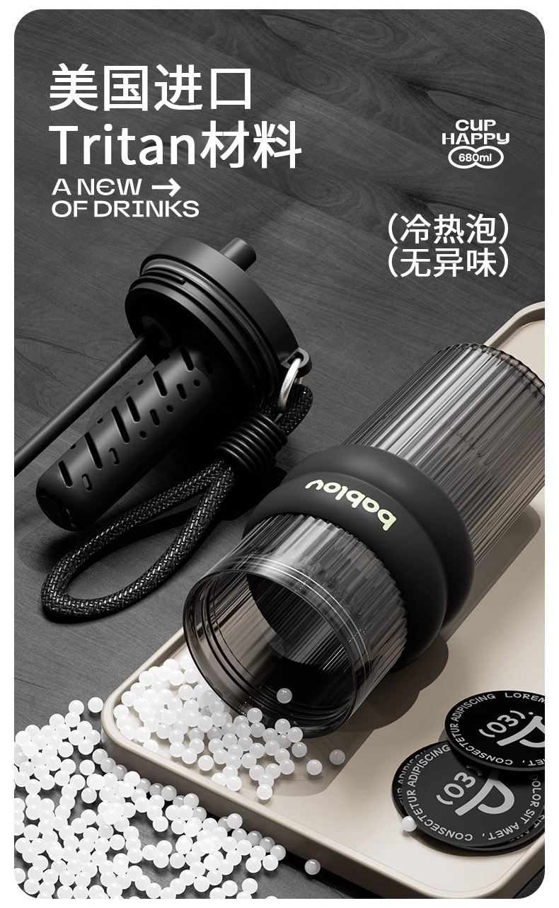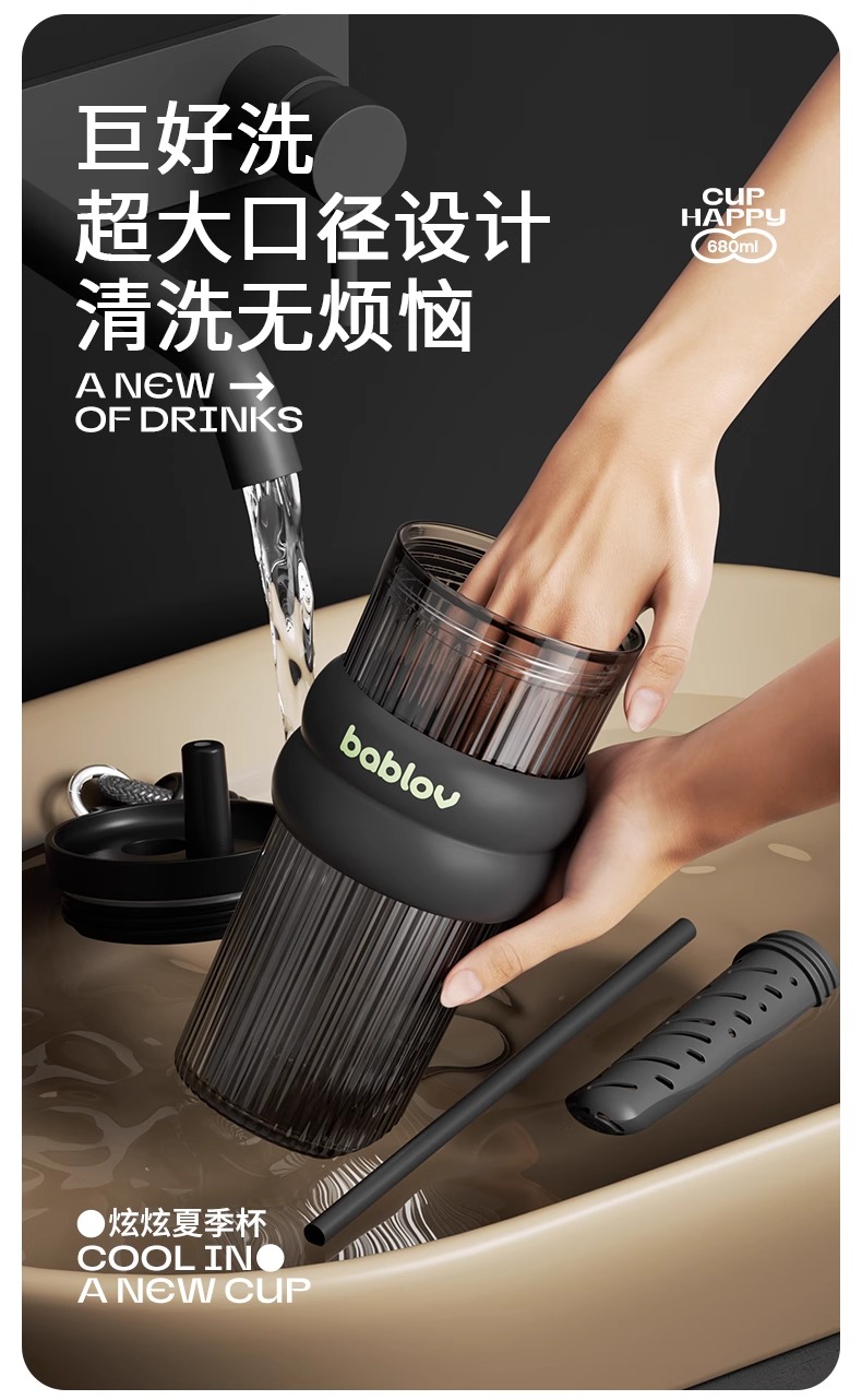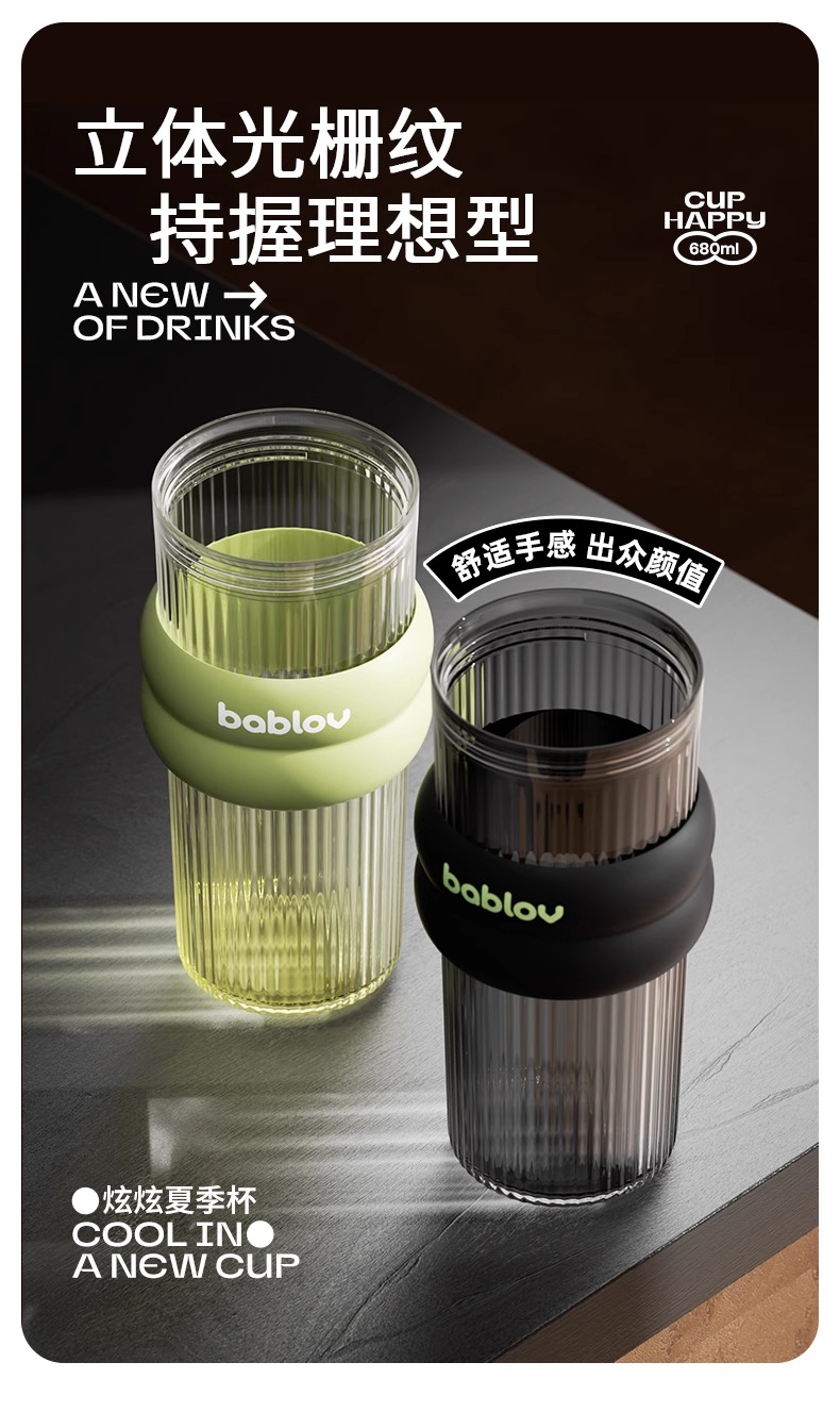 bablov水杯女生高颜值学生夏天便携塑料水壶车载大容量吸管杯子
