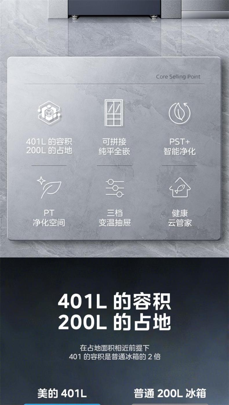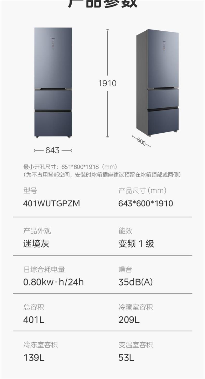 美的 冰箱 BCD-401WUTGPZM 迷境灰