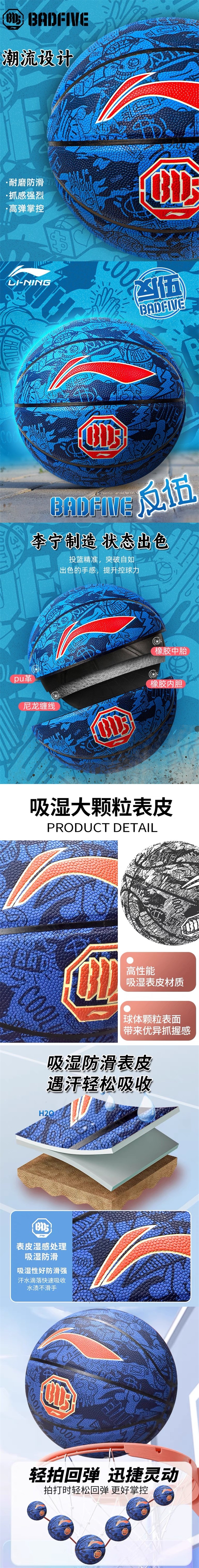 李宁篮球7号 1个 吸湿反伍成人7号青少年街头花球涂鸦室内外手感王蓝色蓝球440-2