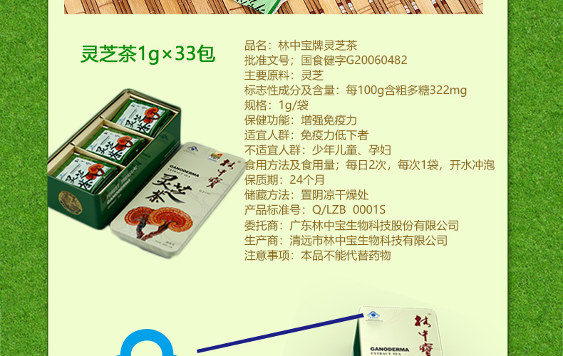 【清远帮扶】清远林中宝灵芝茶铁盒1克*33袋