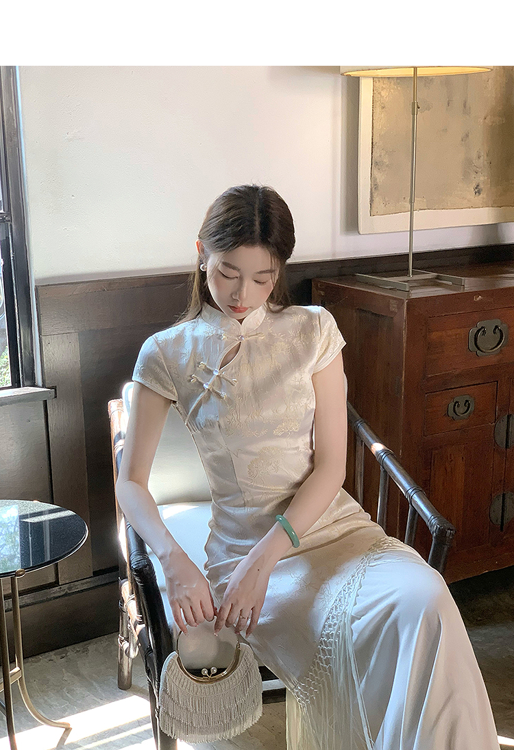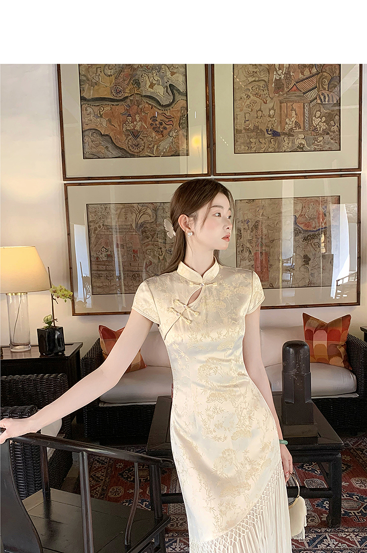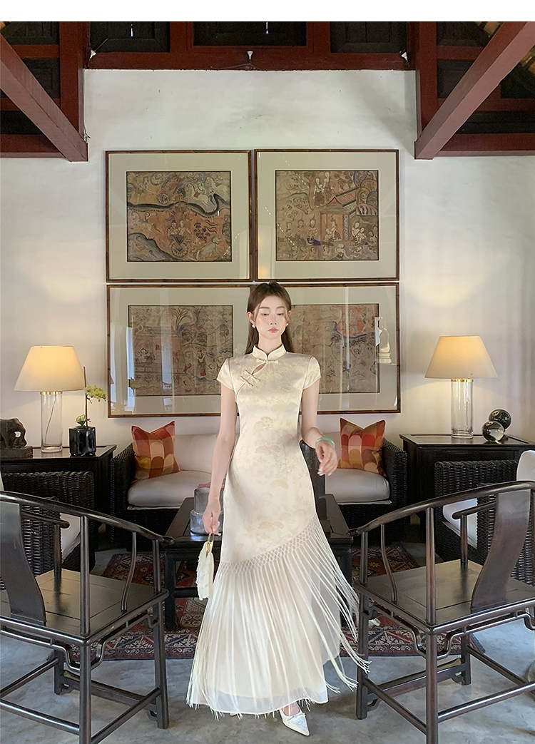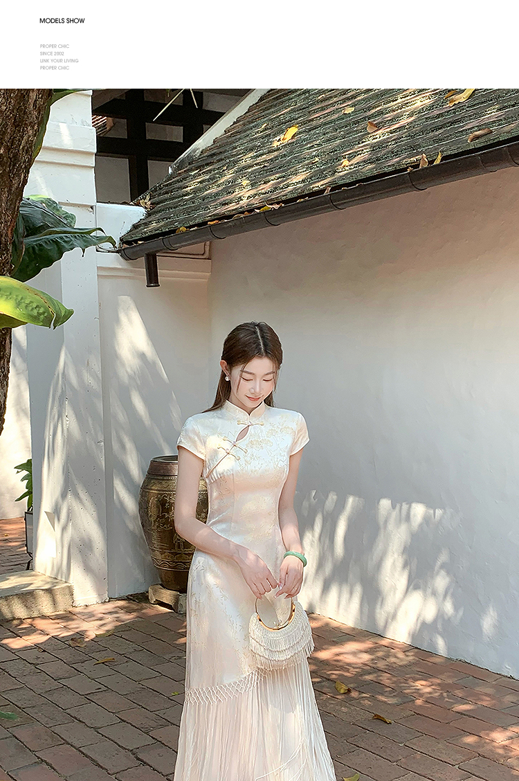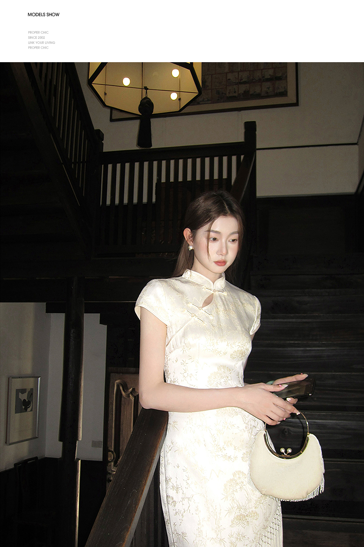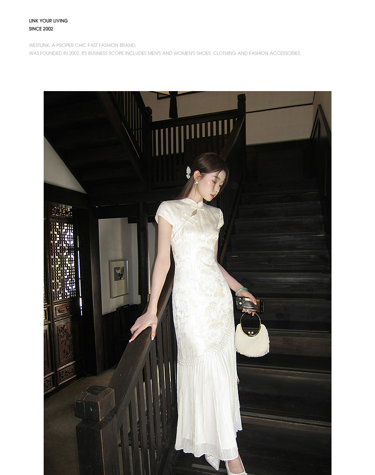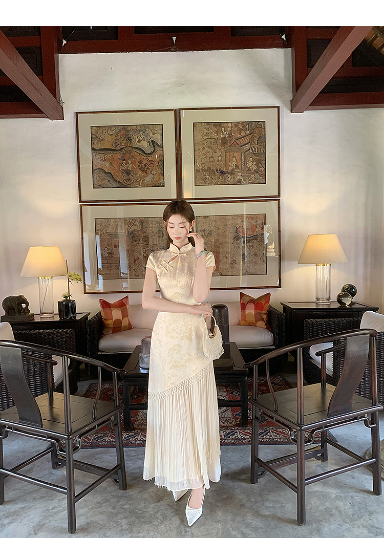 西遇新中式短袖连衣裙女夏季新款网纱拼接收腰盘扣改良旗袍SS050915