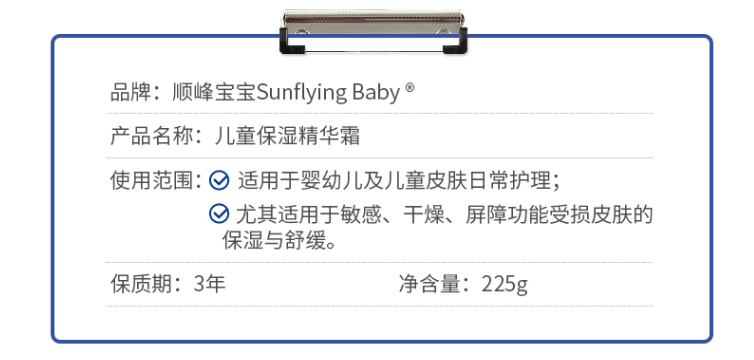 顺峰宝宝 儿童保湿精华乳 滋润型245g 儿童保湿精华霜225g