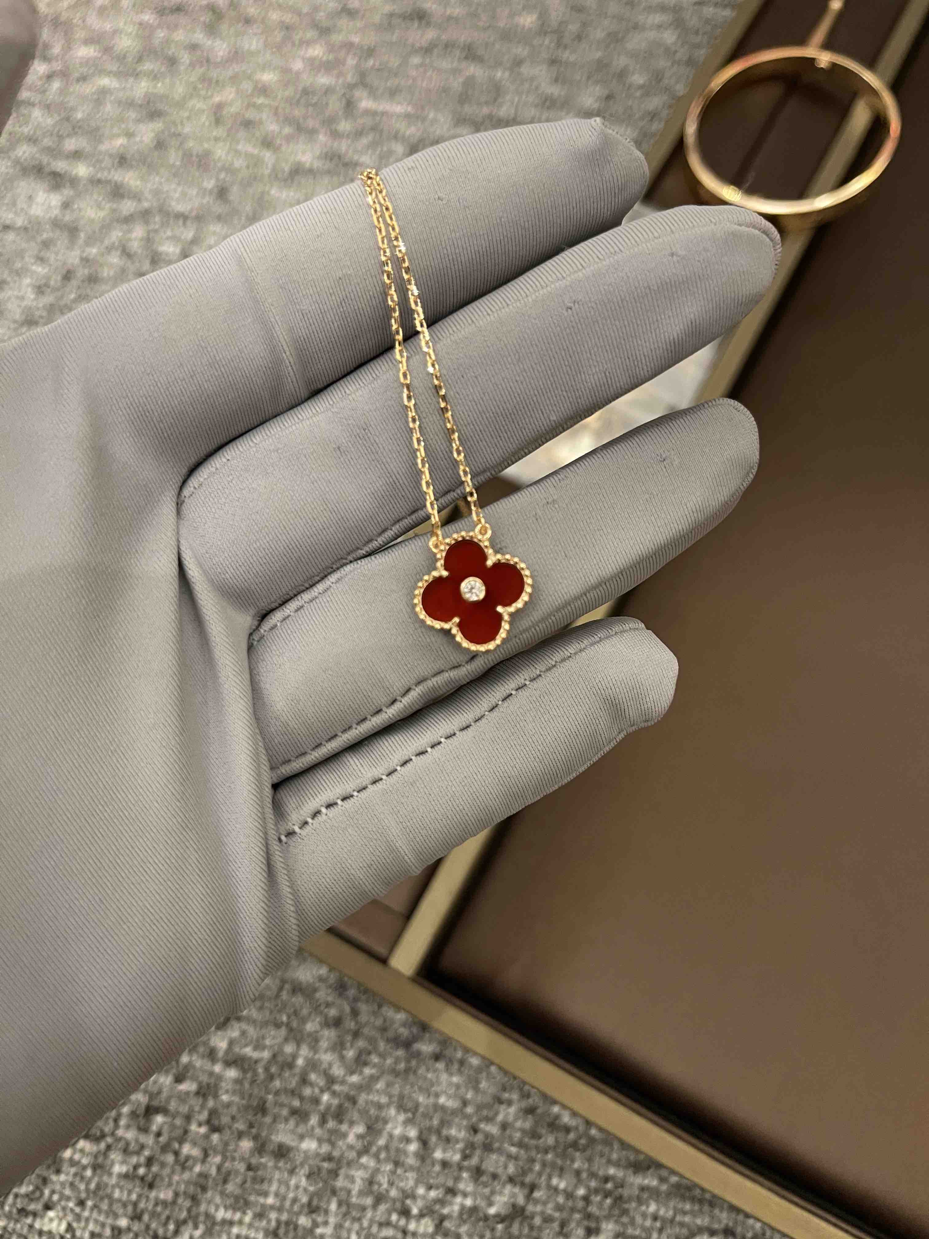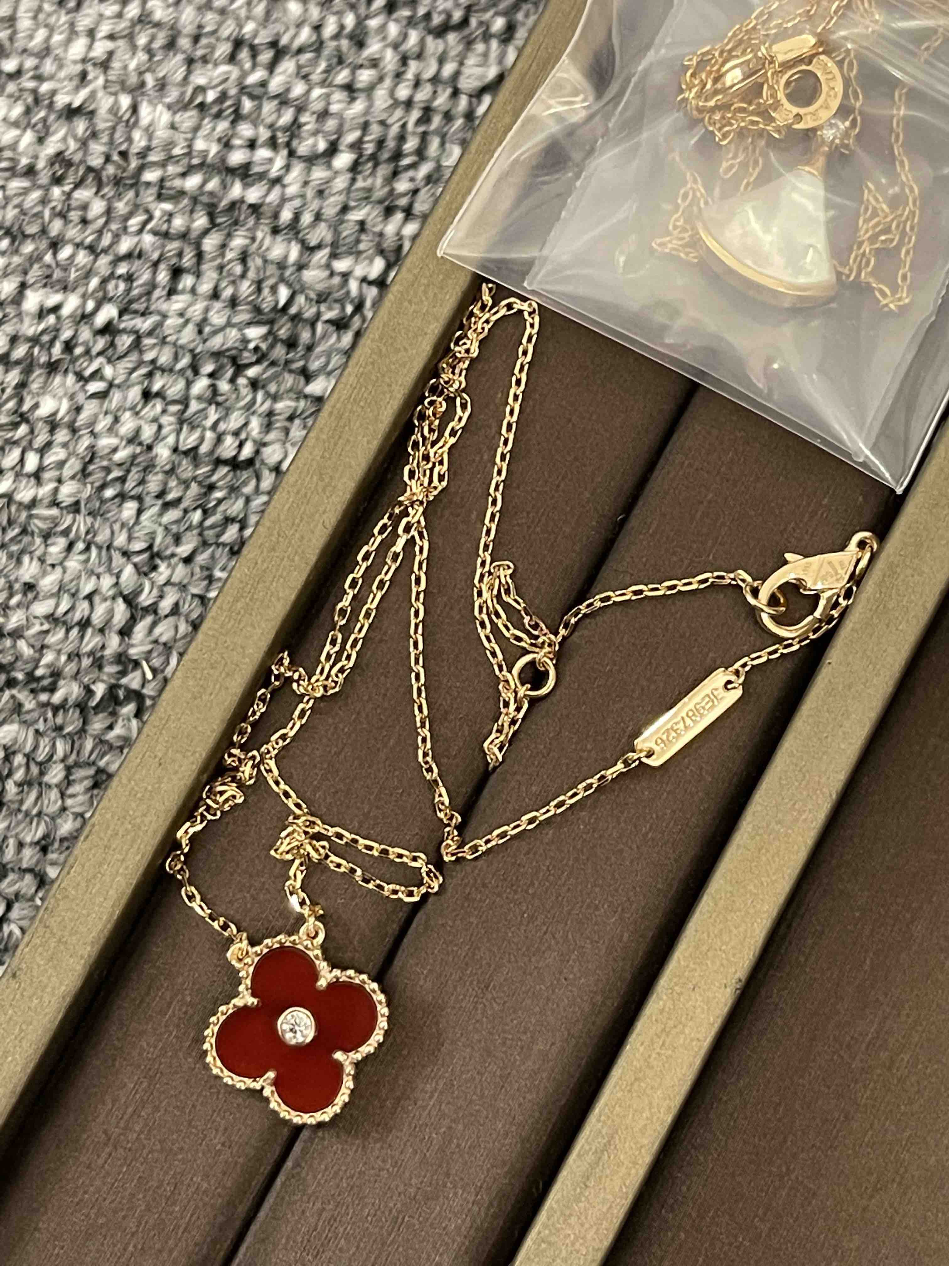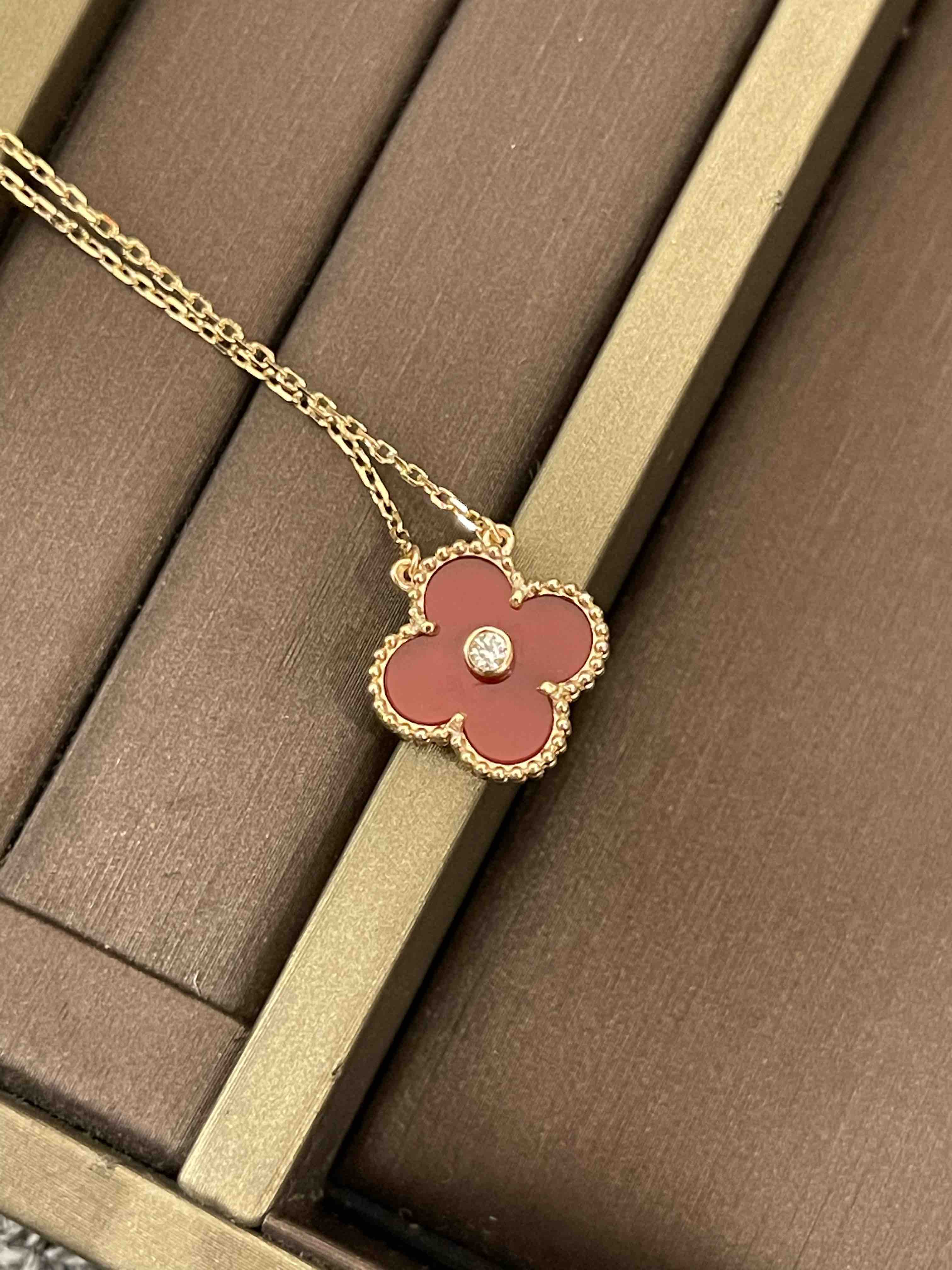 Vca单钻红四叶草项链,乱真精工,高品质,实拍,配全套专柜包装