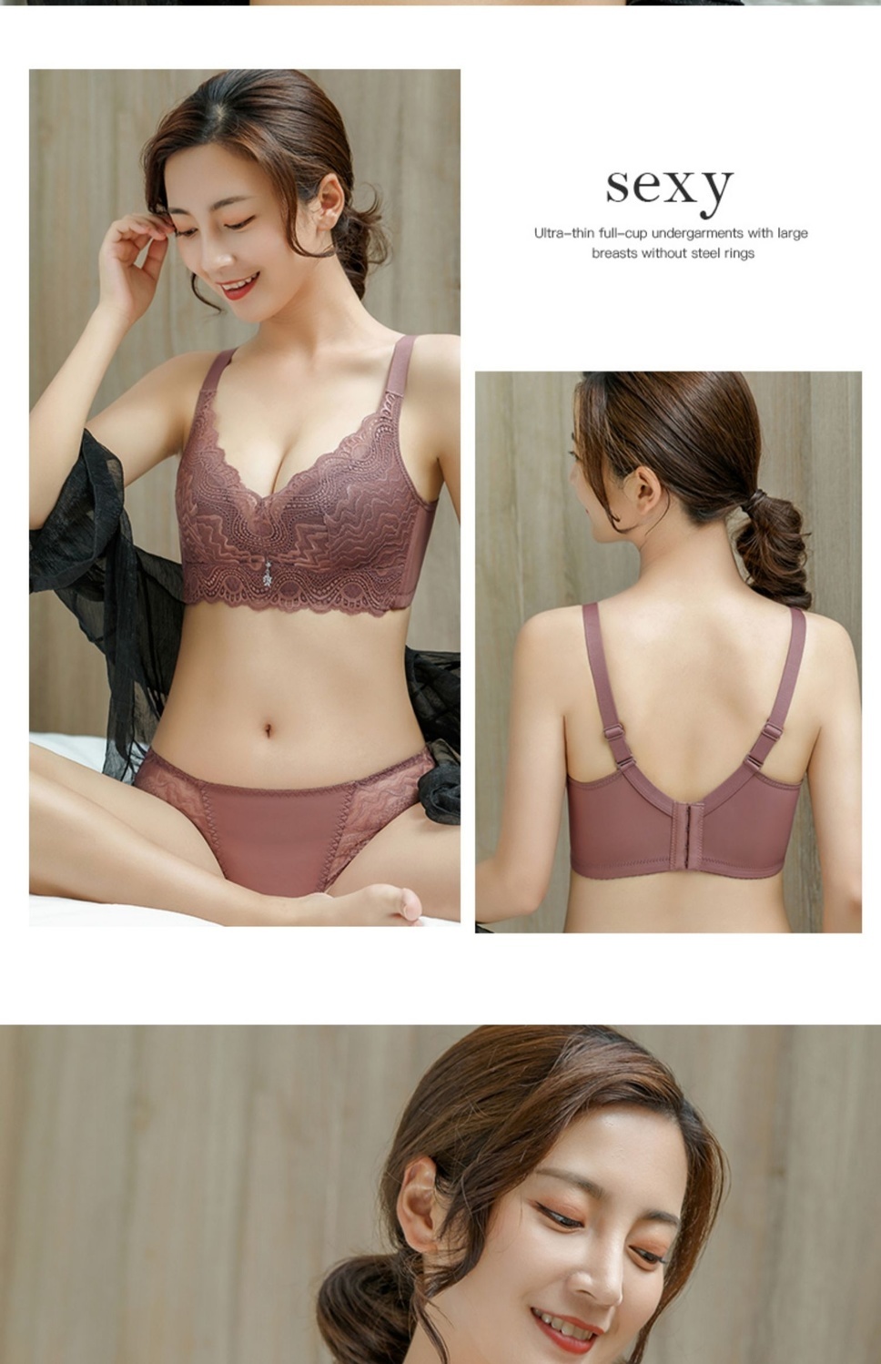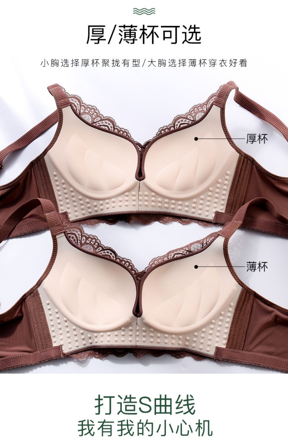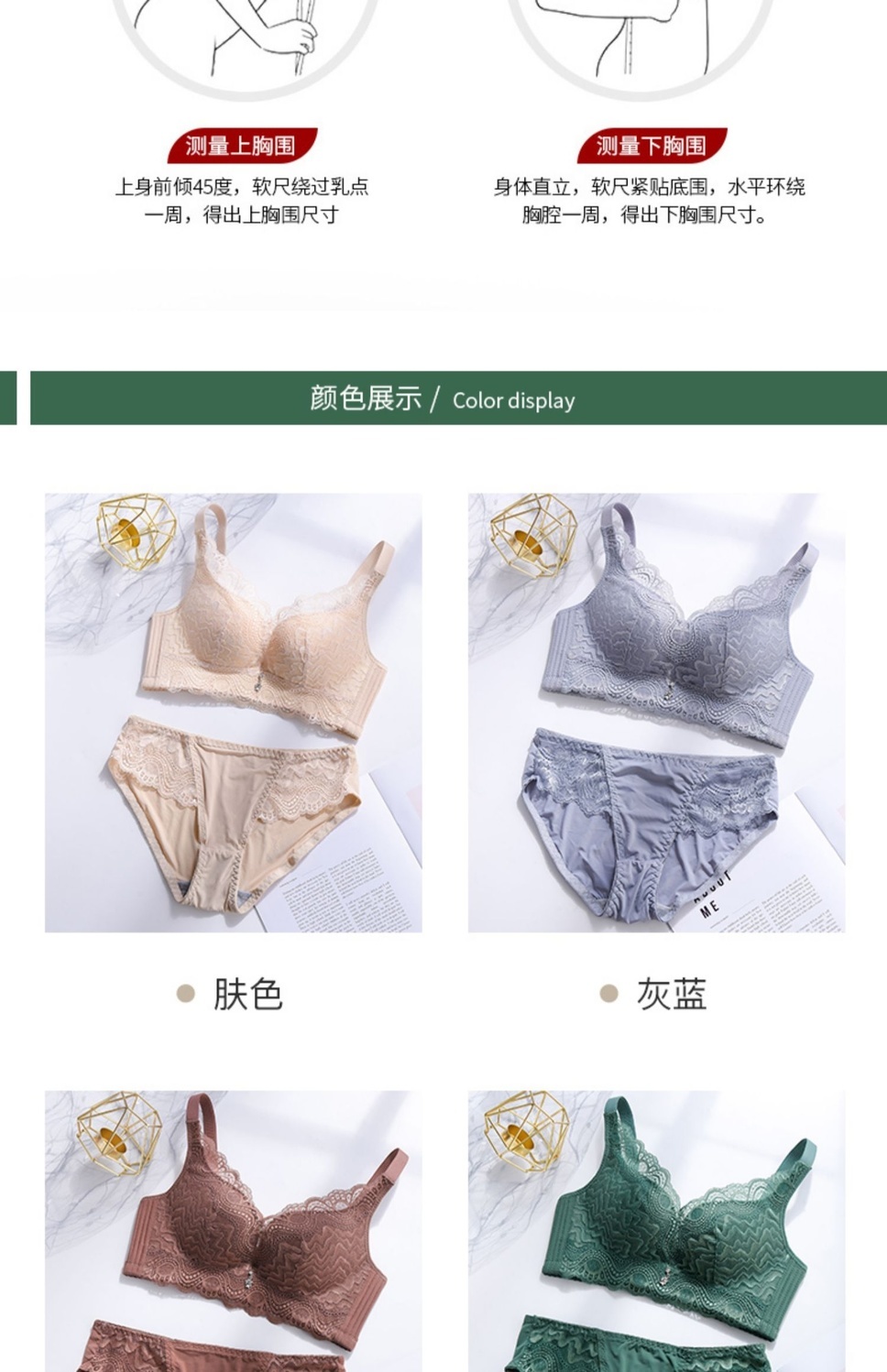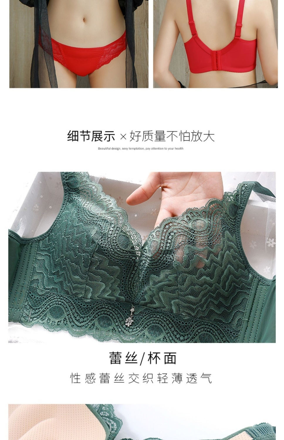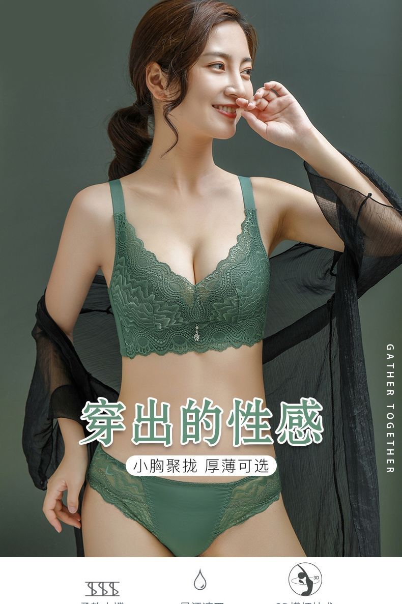 无钢圈内衣女聚拢小胸蕾丝文胸套装加厚上托收副乳调整型薄款胸罩