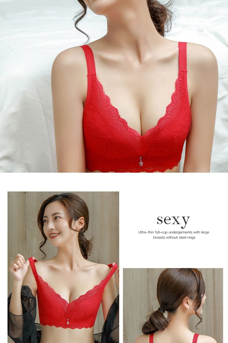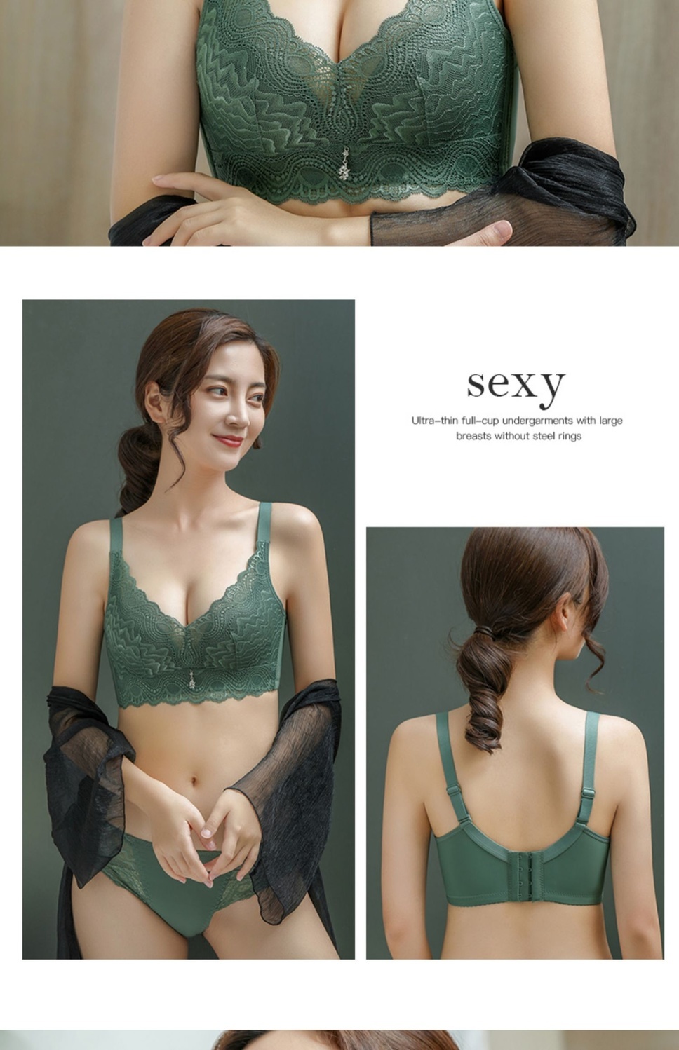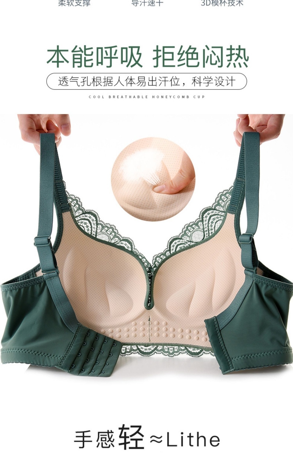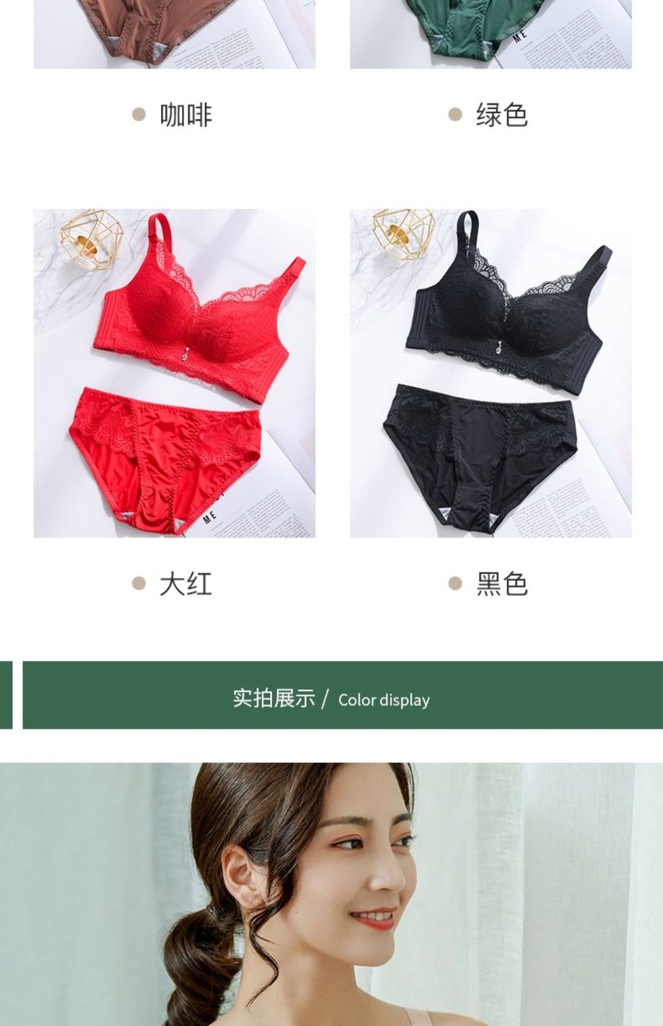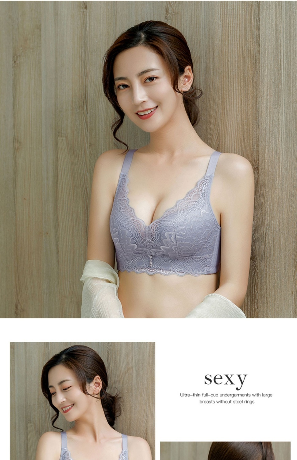 无钢圈内衣女聚拢小胸蕾丝文胸套装加厚上托收副乳调整型薄款胸罩