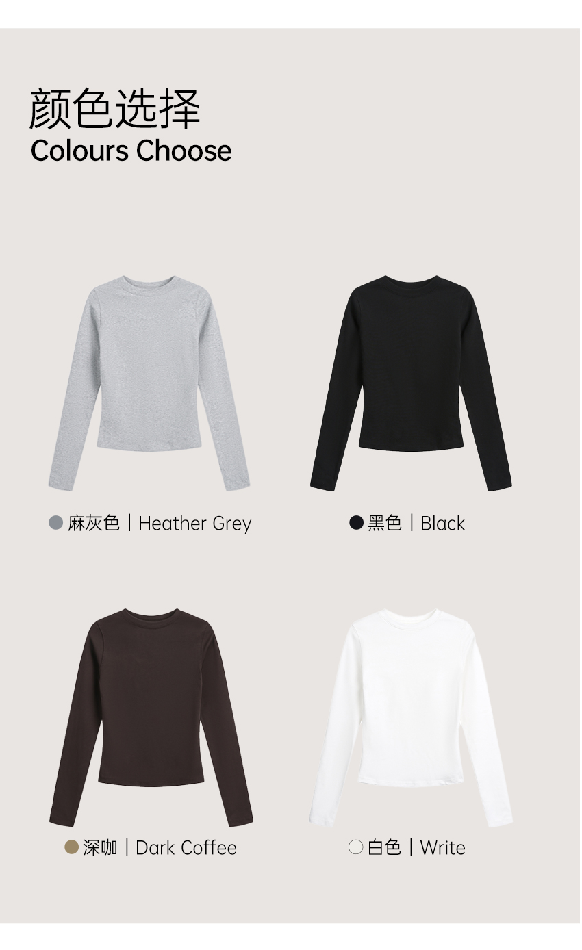线描长袖T纯棉修身T恤女秋季内搭打底衫显瘦百搭紧身上衣