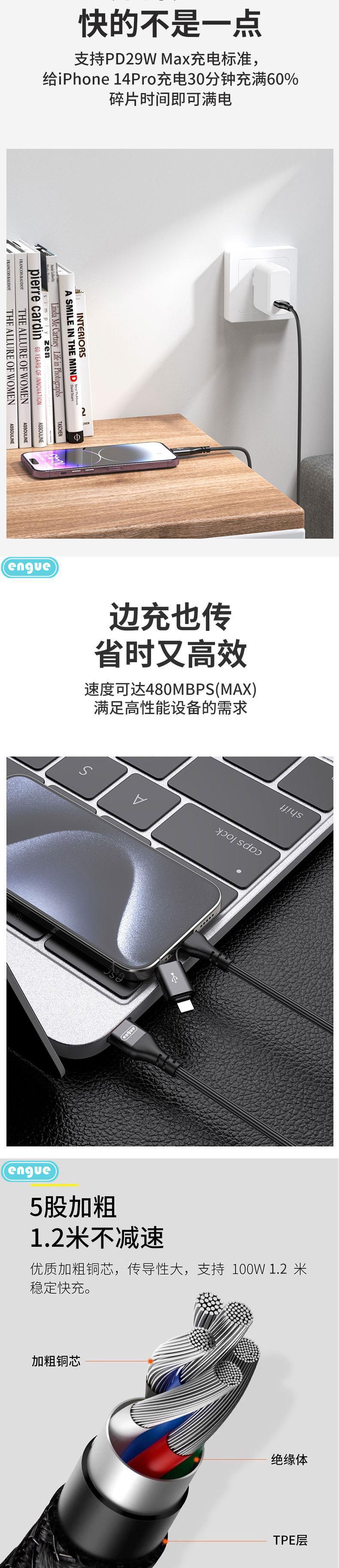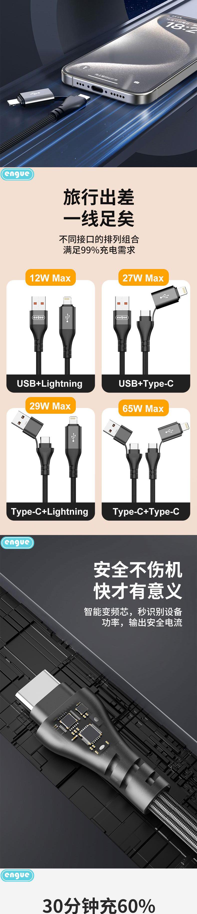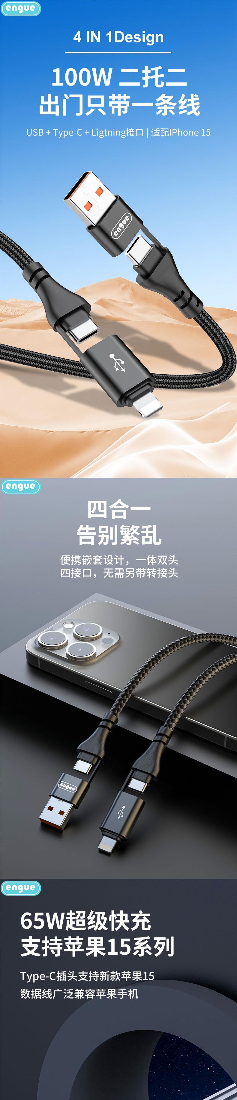 【自营】engue恩谷4合1 快充100W数据线EG-916尼龙编织多设备通用笔记本手机
