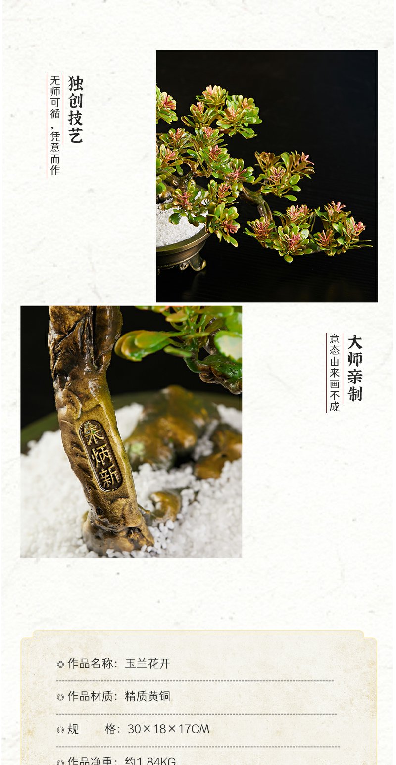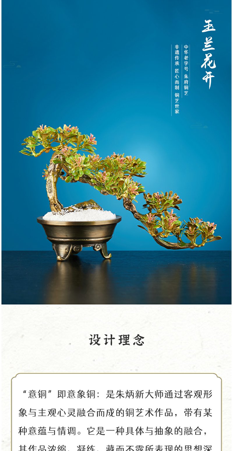 朱府铜艺《玉兰花开》大师亲制意铜家居高端纯铜摆件工艺品盆景